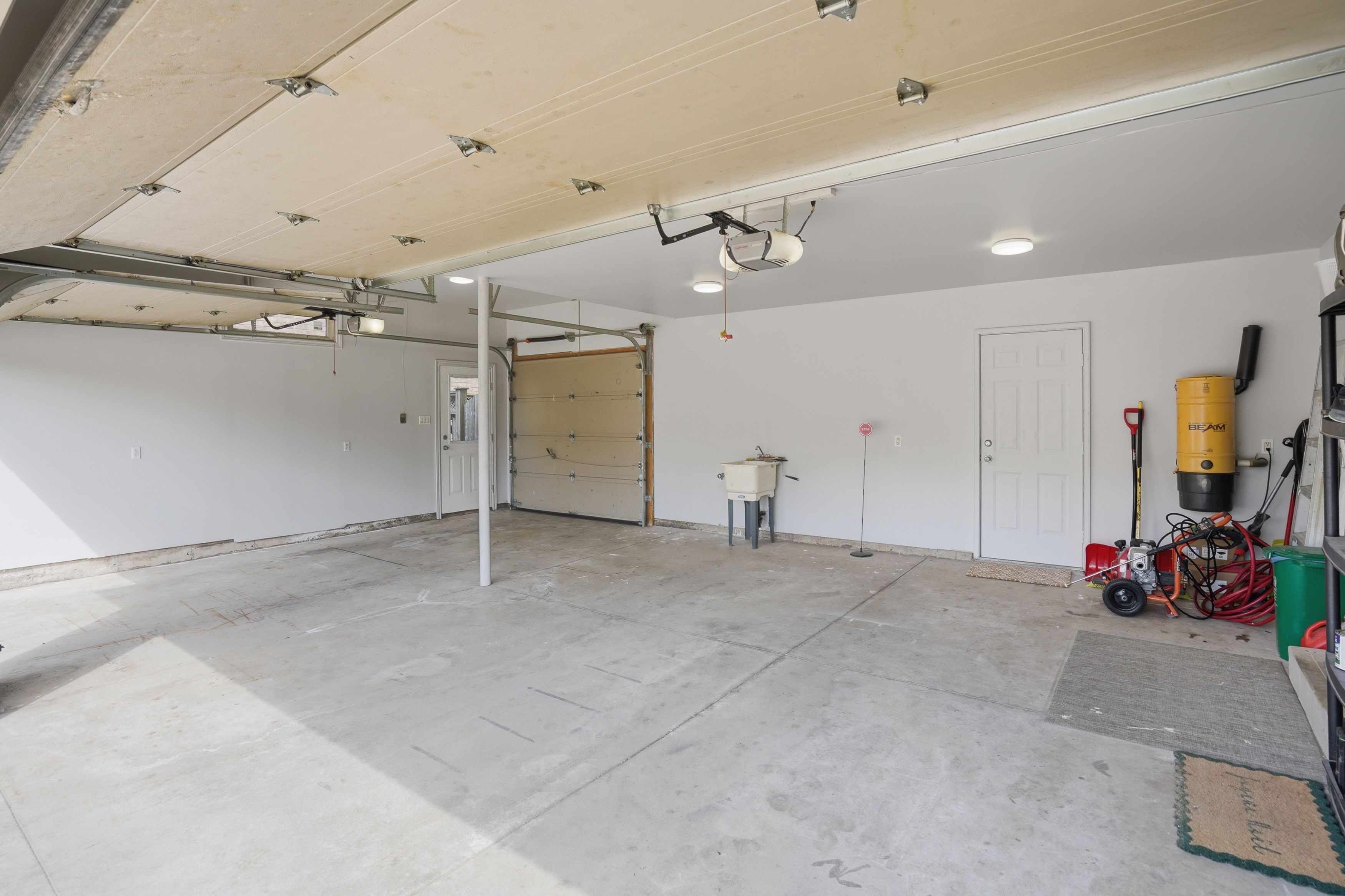 • Triple car garage with drive-thru access, perfect for hobbies and storage.