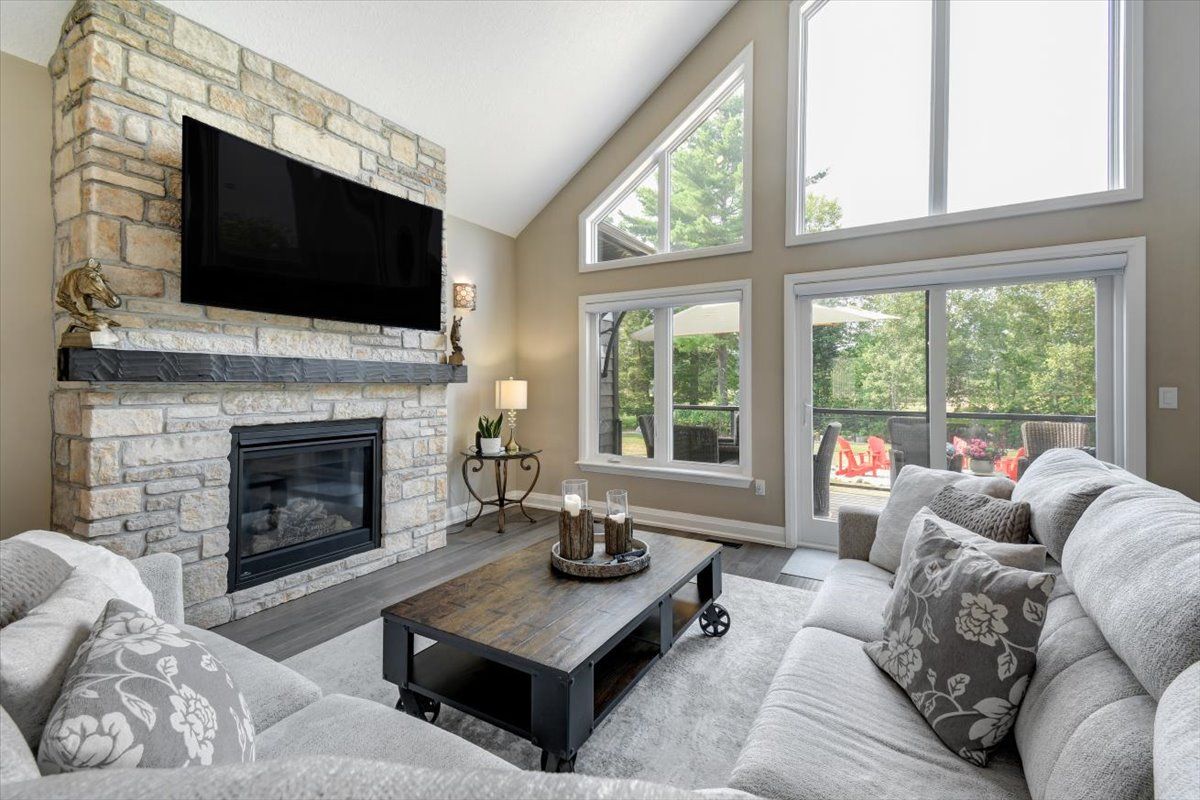 Custom bungalow in golf course community | 2 primary suites | under 5 years old modern living meets peaceful golf course lifestyle. Less than five years old, this stunning 2,000 sq. Ft. Custom-built bungalow offers the perfect balance of style, comfort, and thoughtful design, set in a quiet and well-maintained golf course community. Step inside to a bright open-concept layout connecting the kitchen, dining, and living spaces-perfect for entertaining or everyday living. The soaring cathedral ceiling creates an impressive sense of space while the dry stacked stone fireplace adds warmth and character to the heart of the home. This beautifully designed home features two spacious primary suites, each with its own ensuite and walk-in closet, plus a third bedroom offering flexibility for guests or family. With three full bathrooms, the layout is ideal for families, visitors, or multigenerational living. Enjoy peaceful outdoor living in the beautifully landscaped yard, and take advantage of the spacious two-car garage offering convenience and storage. A rare opportunity to own a modern home in a quiet golf course community-where comfort, privacy, and lifestyle come together.