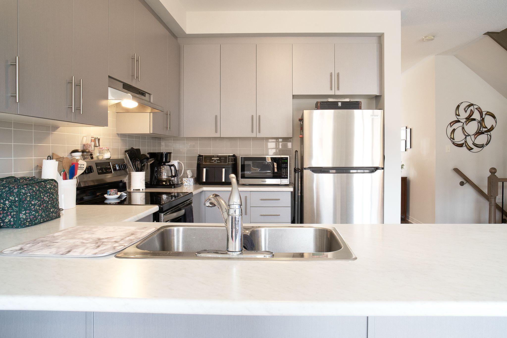 • Great kitchen with stainless steel appliances and ample cabinetry for meal prep.