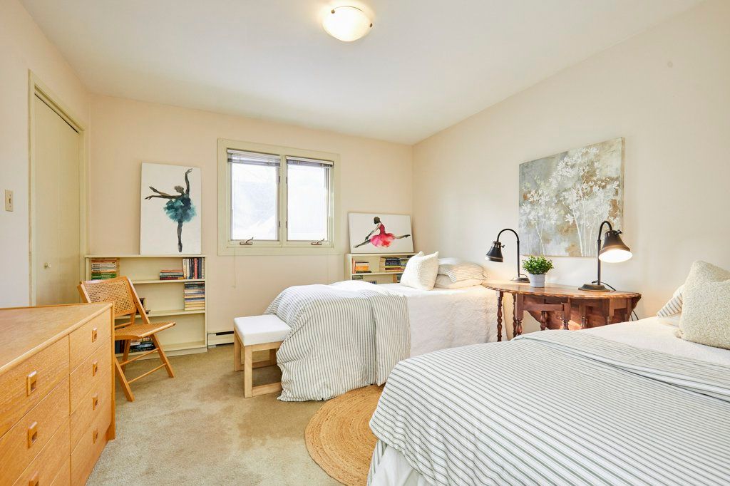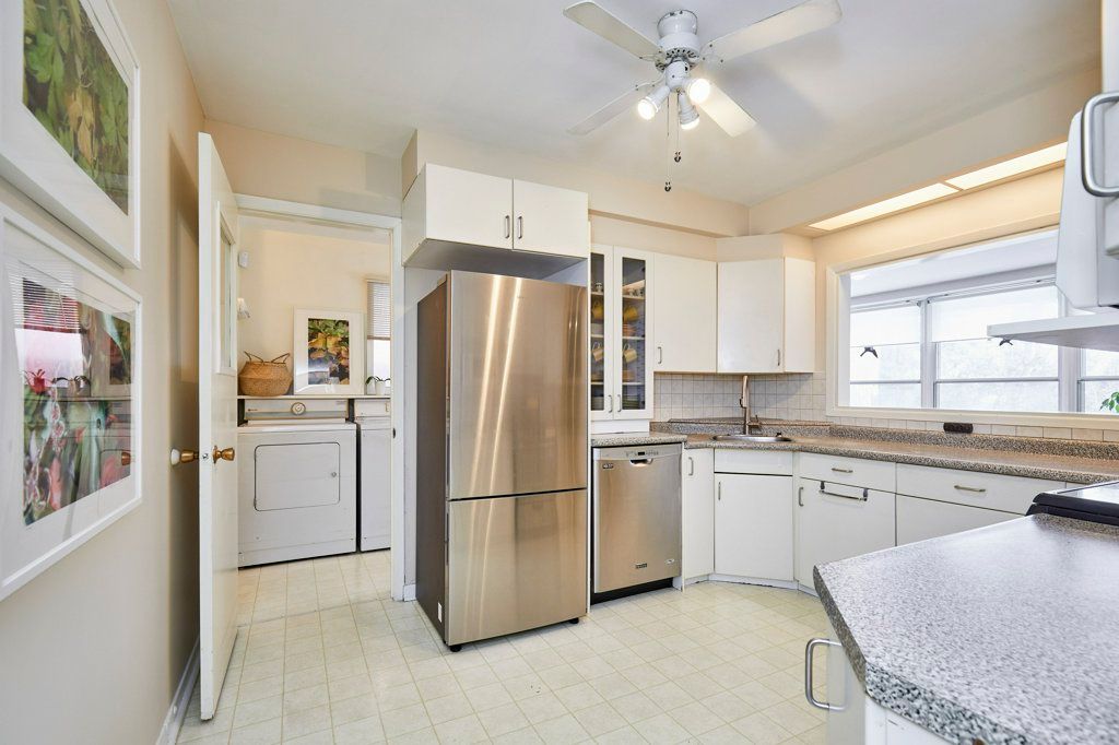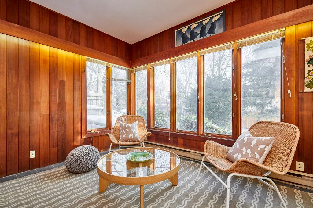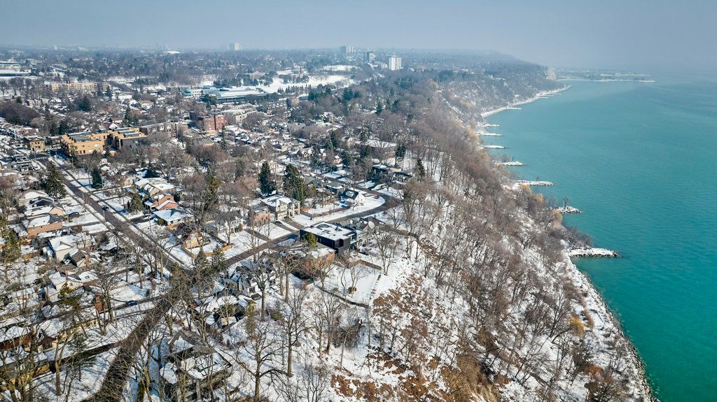 An authentic mid-century modern bungalow, boasting a remarkable 60 foot frontage. Expansive and unique living space spanning over 4,000 square feet. A slate-tiled foyer welcomes you into a spacious living room with a central fireplace, framed by built-ins and illuminated by a large window overlooking the front yard. Beneath the broadloom, original hardwood floors reveal the home's enduring charm. The living room opens into the dining area and onward to a sun-filled, sunken family room/sun room, complete with sliding doors leading to the flagstone garden. The family kitchen overlooks a breakfast nook with wall-to-wall windows, and a private, fenced backyard. Adjacent to the kitchen is a convenient laundry/mudroom plus powder room, and direct access to the garage. The main floor also hosts the generous primary bedroom with backyard views and his-and-hers closets, a second bedroom with large closet, and a den with built-ins, ideal as a third bedroom, office or library. The high, finished basement adds a large recreation room, a games room, two additional bedrooms, and a bathroom. The double private drive and built-in garage offer convenient parking for multiple vehicles. A scenic residential pocket offering a quiet, green environment with quick access to the waterfront, and the owner's favourite - rosetta mcclain park. A hidden gem, and a rare and unique opportunity. Steps to ttc, and the shops and restaurants along kingston road. Birch cliff public school and birchmount ci school district.