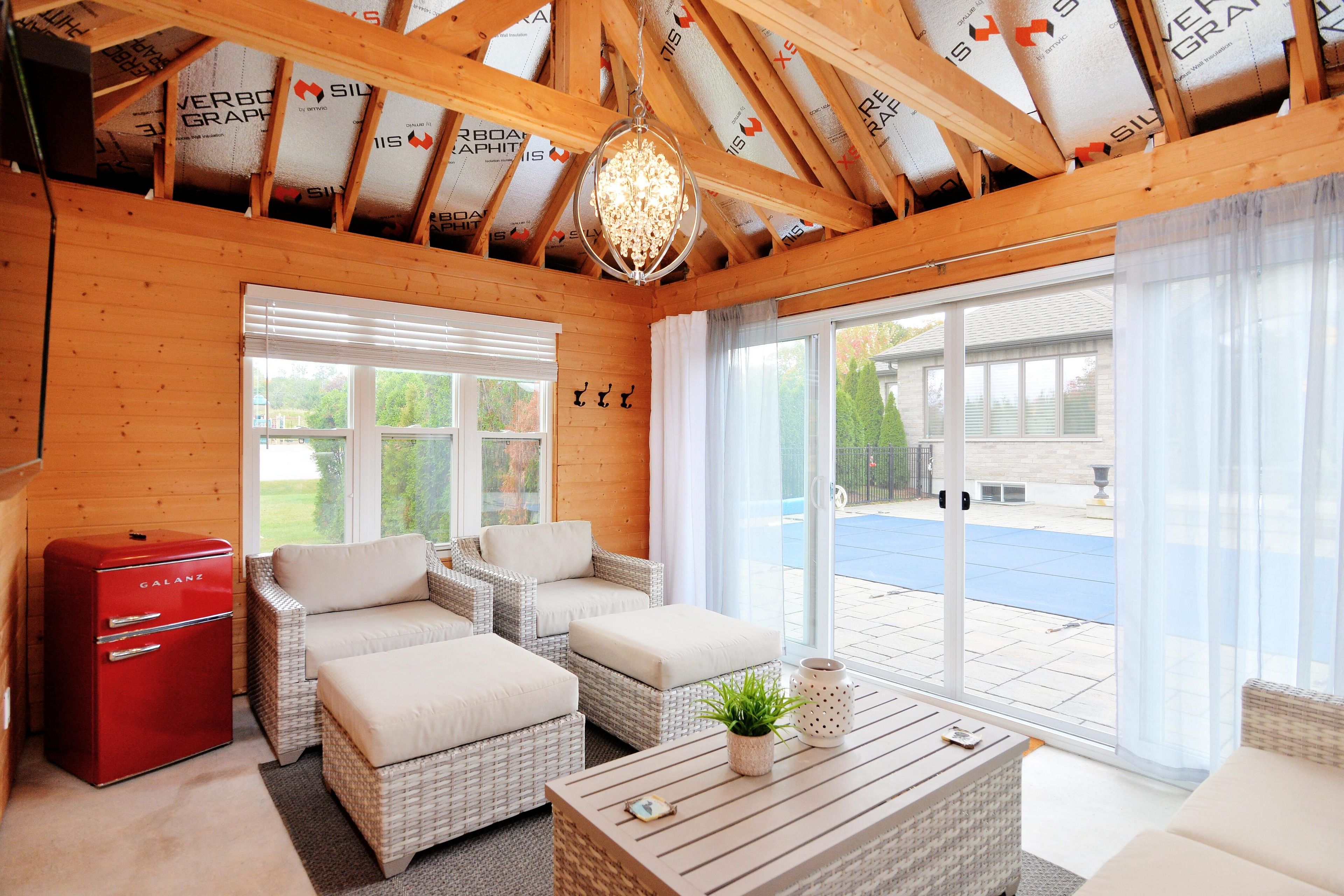 Set on an expansive corner lot of over half an acre, this gorgeous custom-built sun filled in prestigious black creek estates exemplifies luxury and thoughtful design in one of the area's most sought-after communities. With 4400 sq ft of living space & extremely rare 4 car garage, this home offers ample room for a comfortable and spacious lifestyle. 5 mins to snow valley ski resort & vespra hills golf course. This is a corner property with 3 + 2 br & 3. 5 wr, and this exclusive estate home comes with 2 elegant offices, one office is conveniently located on the main floor and the other office, boasts of custom executive office cabinetry, is in the basement. The kitchen has high end appliances has shaker style cabinets, glass inserts &undermount lighting. Open concept layout has family room w/ cathedral ceiling & 9' sliding glass door opening to a stunning backyard. The professionally landscaped backyard is a private oasis, complete with a newer inground pool, an automated sprinkler system, and a fully serviced cabana with hydro-ideal for hosting and relaxing in style. Hand scraped h/w flooring in the home, spacious master bedroom has walk-in-closet & luxury5-piece ensuite. Mud room has custom shelving & quartz counters. 4-car garage w/ high ceilings& 2 built in car lifts. Custom closets throughout the home including the basement. Lower level has entrance from garage, and has 2 br, 1 wr, a large family room, wet bar & custom-made office. The basement has legal approval for legal second dwelling with plans in place for a large 3 br basement with a huge living area and a chef's kitchen. Home offers a great lifestyle with hiking, water sports, skiing, golf, and quick access to all amenities of barrie. This exceptional residence combines refined craftsmanship with modern comforts, offering an elevated lifestyle in an exclusive estate setting.