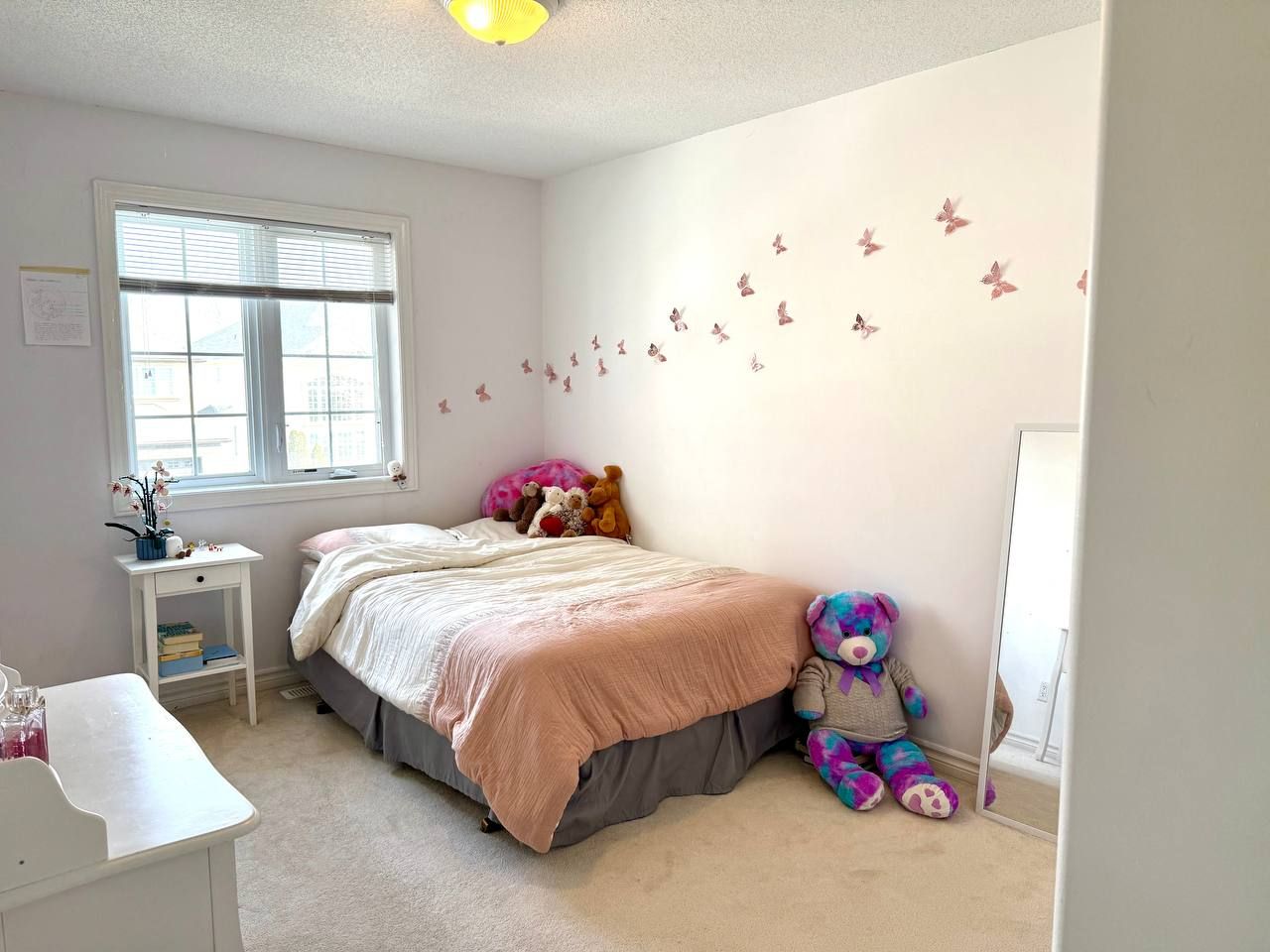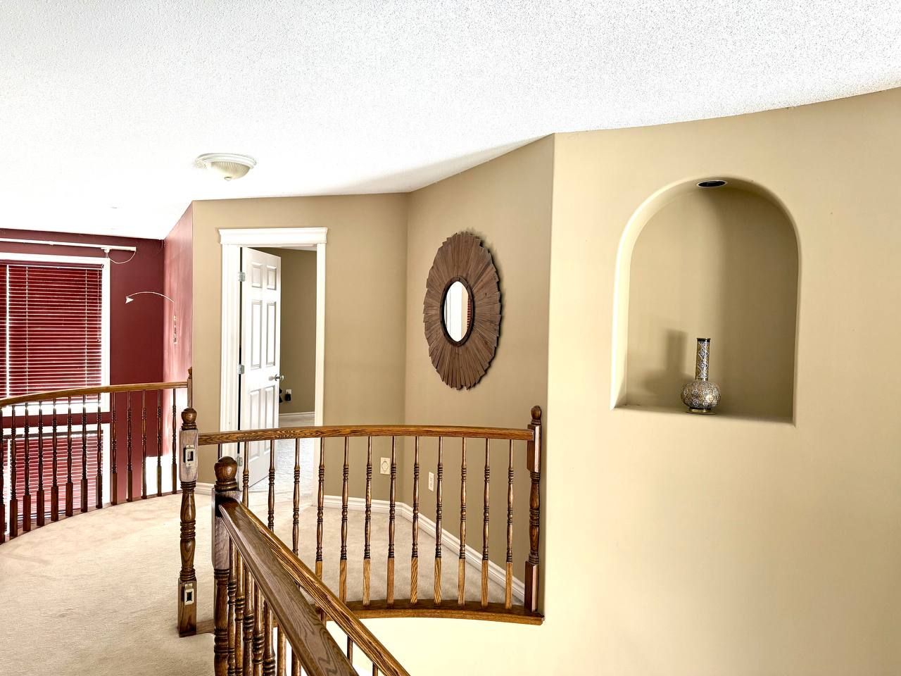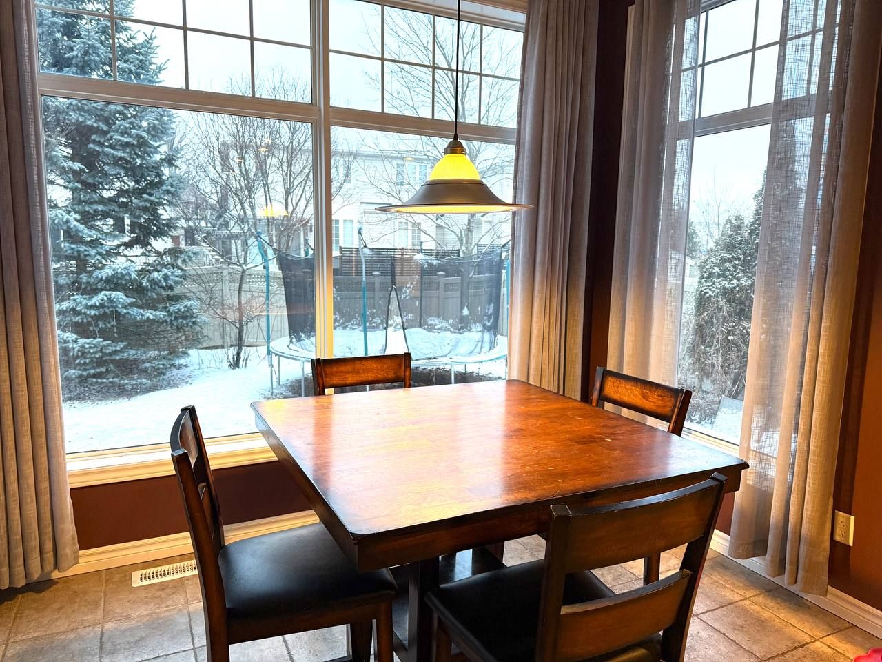 Beautiful cardel home situated on a large lot with a 60-ft rear yard, located on a quiet and desirable street at 9 blackshire circle. This spacious 4-bedroom, 3-bathroom open-concept home features hardwood and ceramic flooring throughout the main living areas, with wall-to-wall carpeting in select spaces for added comfort. The generous kitchen offers a large island and opens into a sunken family room with a cozy gas fireplace-ideal for everyday living and entertaining. Formal living and dining rooms, along with a private den, provide plenty of functional space for both relaxation and work. The primary suite serves as a comfortable retreat, complete with a 5-piece ensuite and a walk-in closet. Step outside to a fully fenced backyard with mature trees and an interlock patio, offering great potential for outdoor enjoyment and future personalization. Located in a family-friendly neighborhood, this home presents a fantastic opportunity to add your own updates and make it truly your own in a highly desirable area. Measurements as per builder.