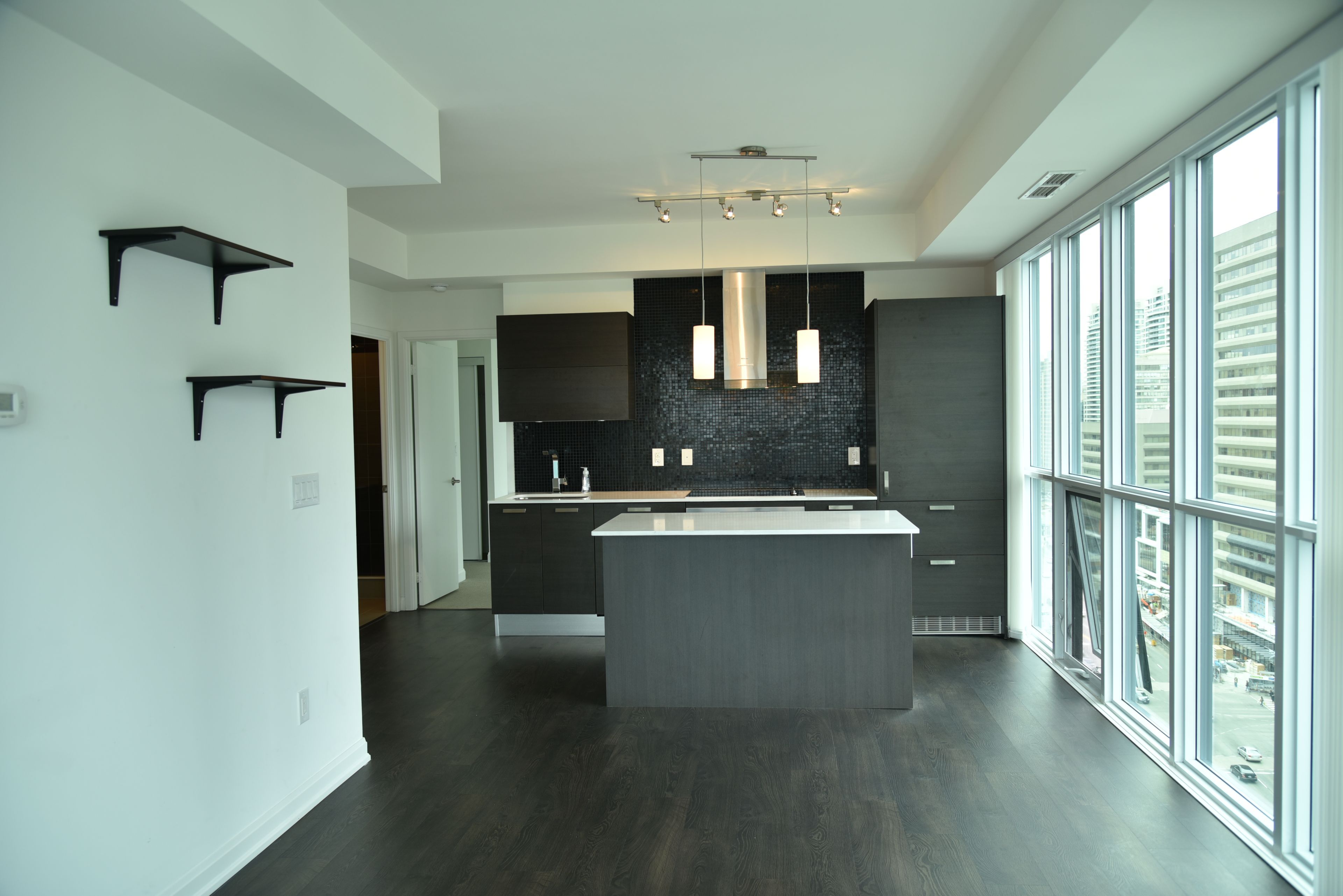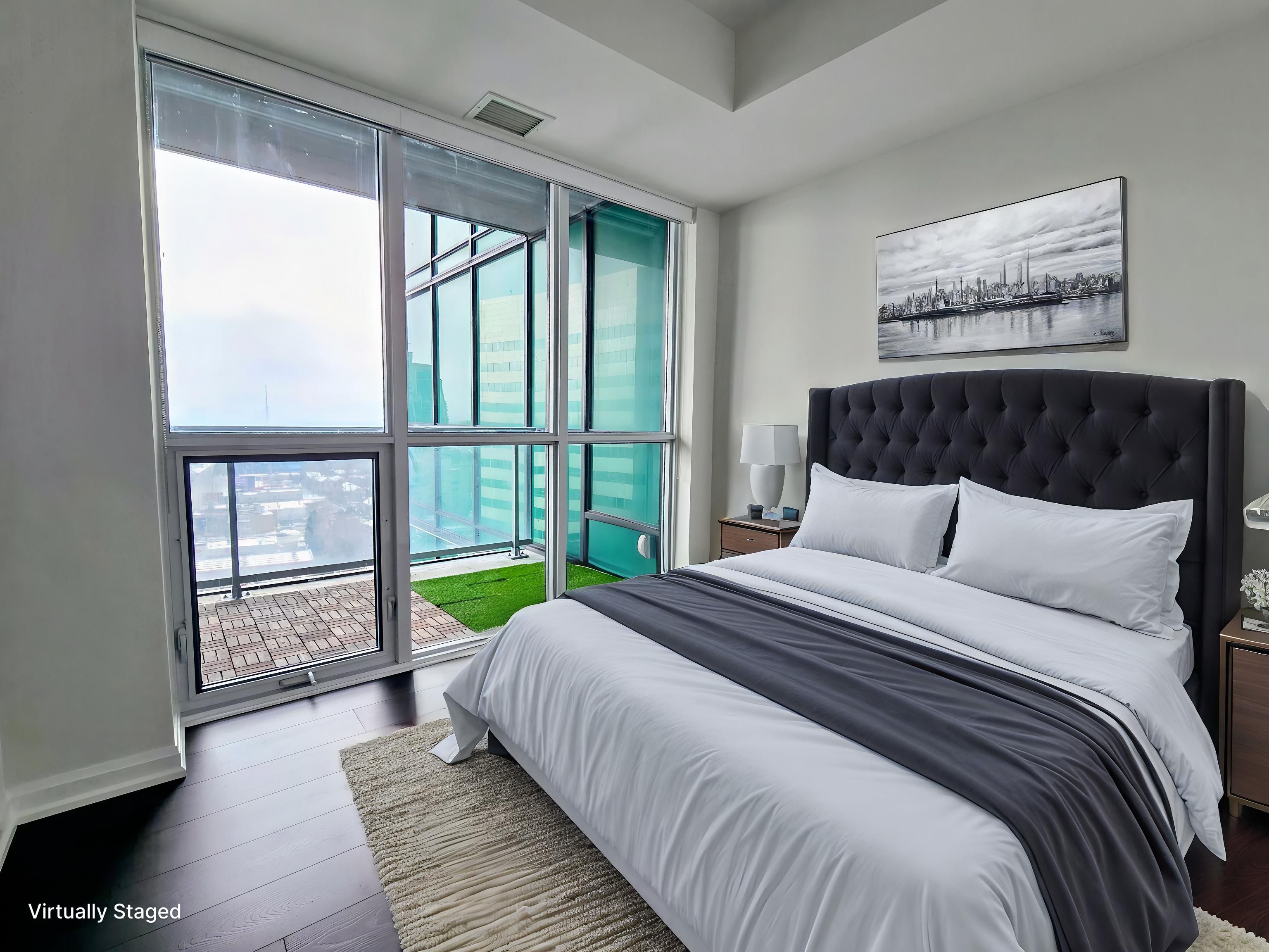 • Freshly painted corner suite with abundant natural light from floor-to-ceiling windows.