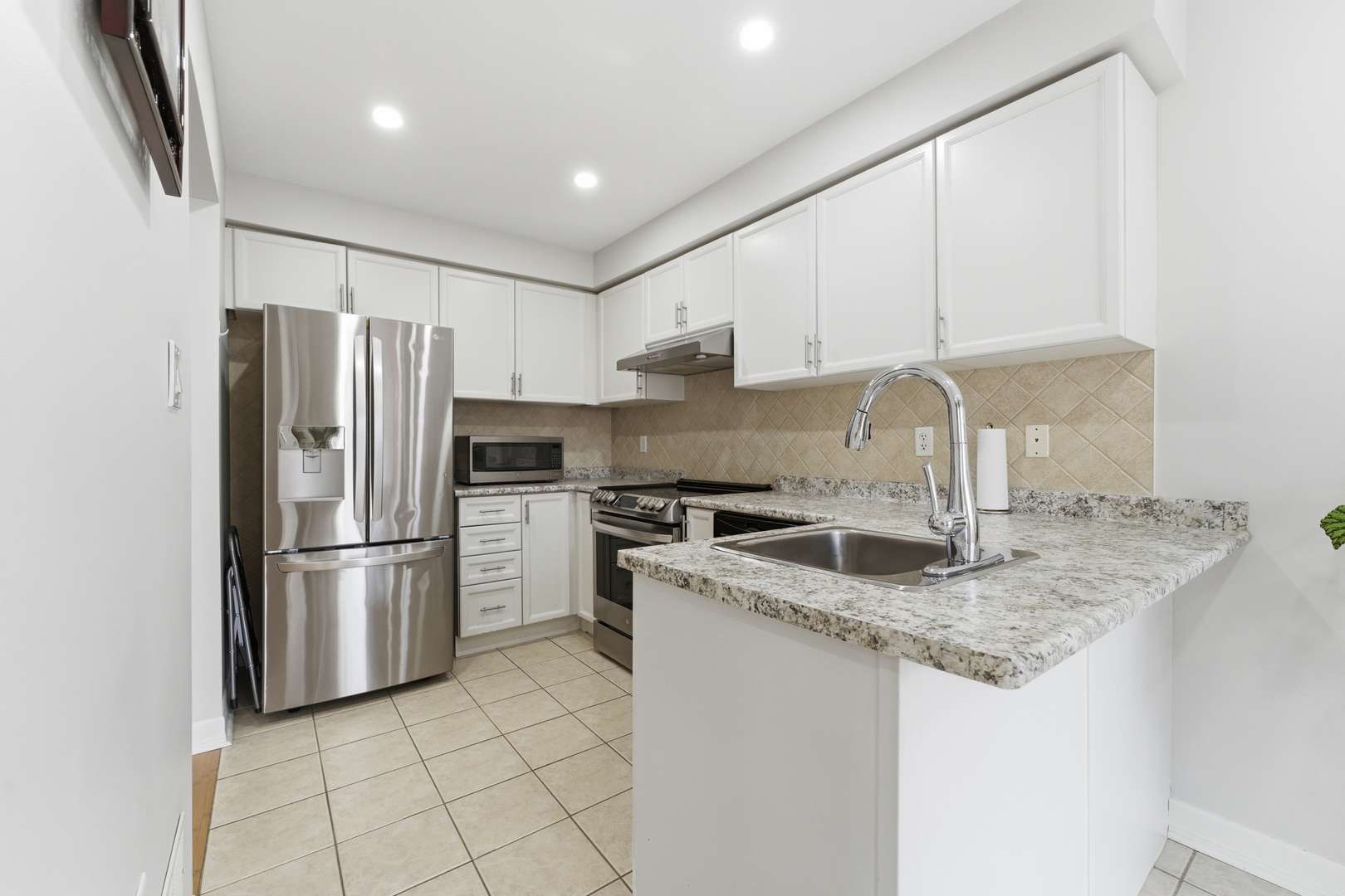 • Modern kitchen featuring a breakfast bar and updated appliances.