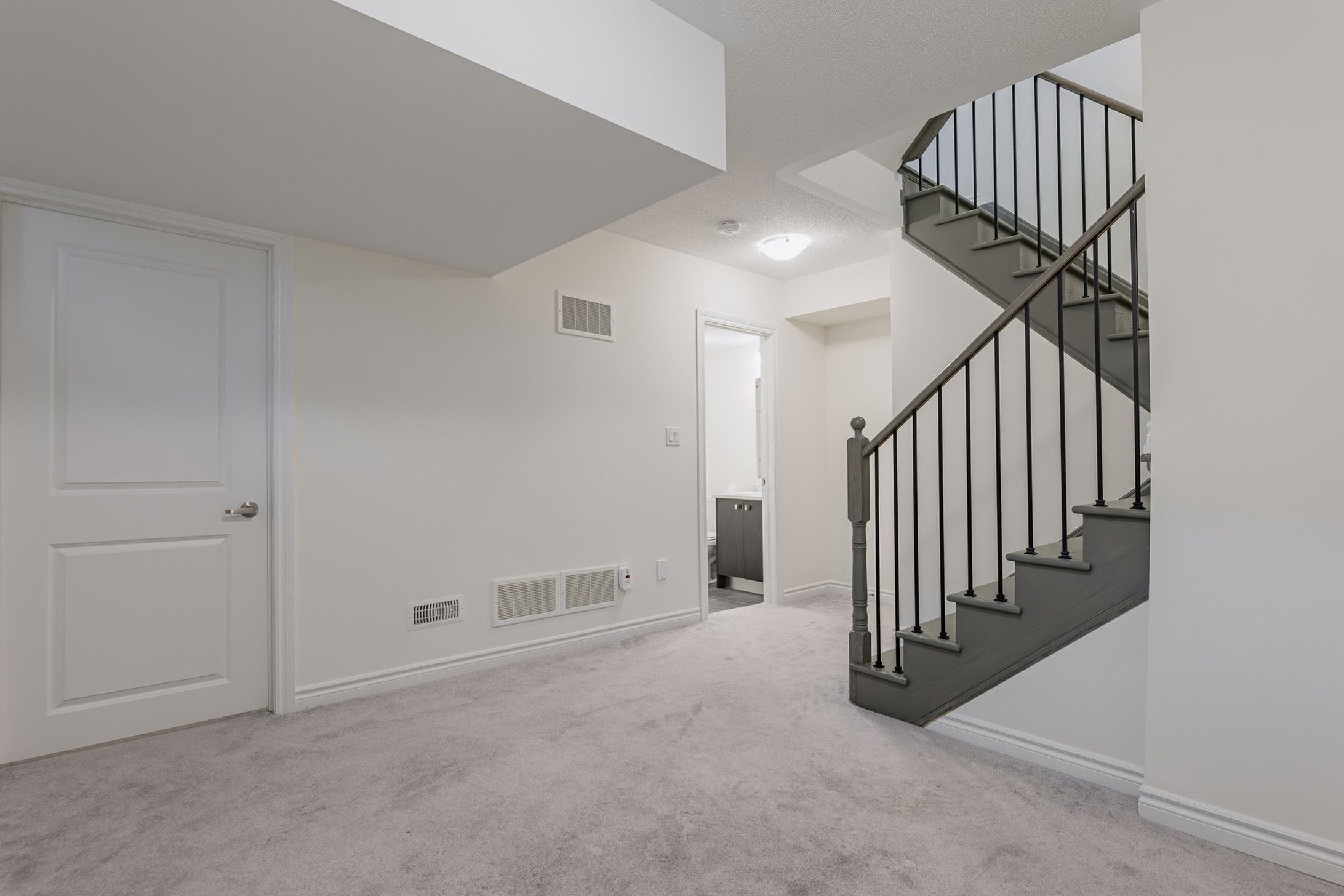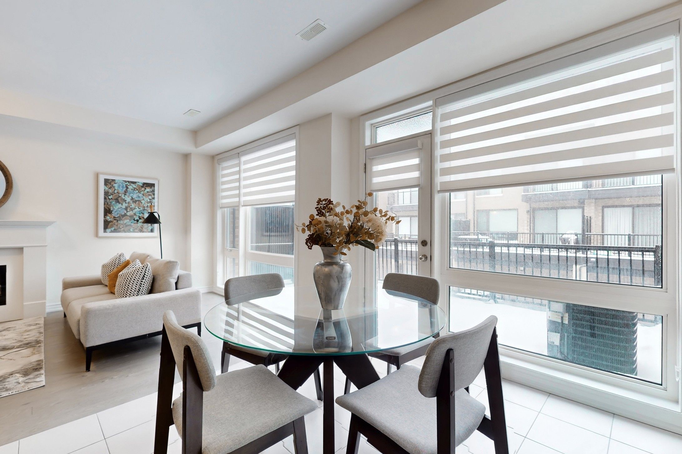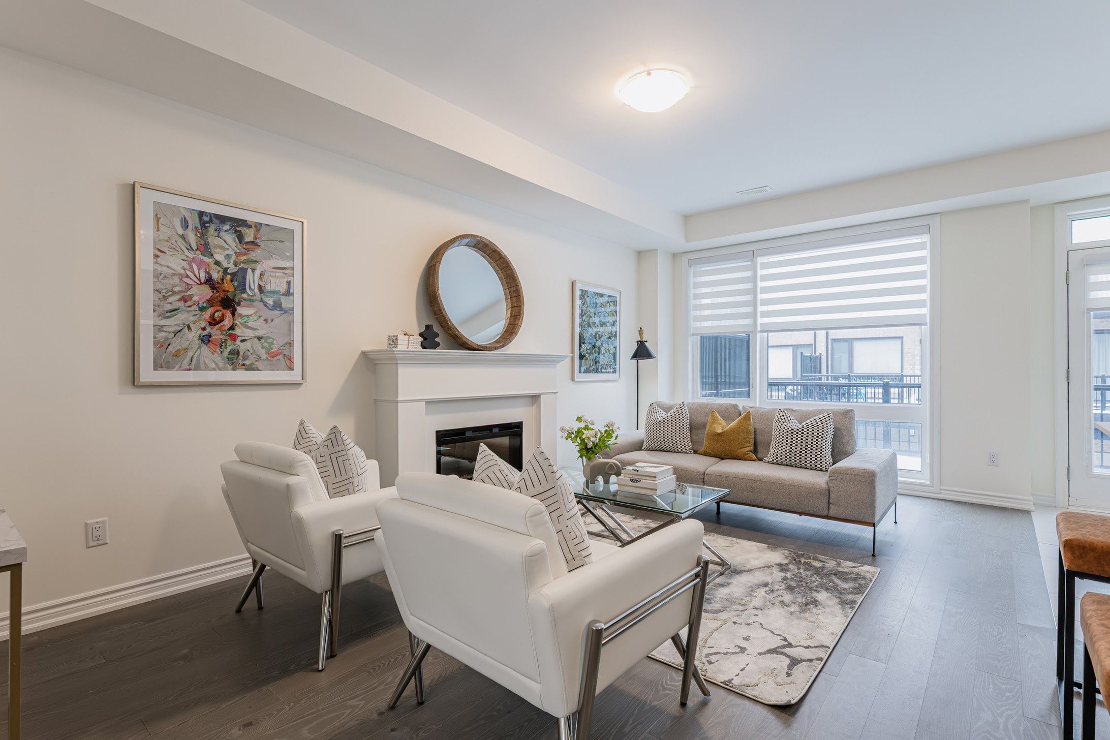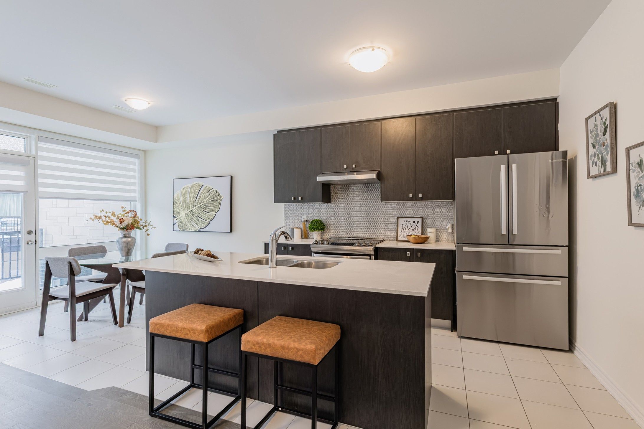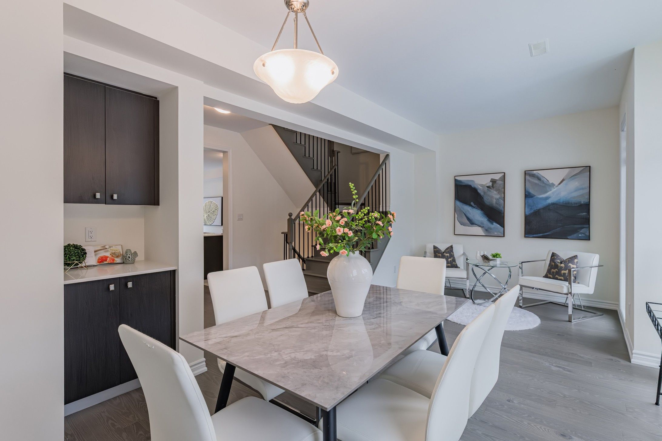 Modern luxury freehold townhome in the highly sought-after abbylane community in victoria square. 100% freehold - no potl fee! Offering approx. 2,302 sq. Ft. Of total living space as per floor plan. Featuring 9 ft ceilings throughout, this bright and spacious home offers a functional open concept layout. The spacious kitchen features a breakfast area, centre island, upgraded granite countertops and stylish backsplash, and seamlessly connects to the open concept family room with fireplace and walk-out to a private deck, perfect for everyday living and entertaining. The living room is filled with natural light through floor-to-ceiling picture windows, creating a bright and inviting atmosphere. The upper level offers 3 generously sized bedrooms with large closets, including a primary bedroom with a 5-pc ensuite, upgraded frameless glass shower and large window bringing in plenty of natural light. The 3rd bedroom features a walk-out to a private balcony. The ground level provides a versatile open space with powder room, ideal for a home office or additional living area. The finished basement with a full 4-pc bathroom can easily function as a 4th bedroom or guest suite. Convenient location minutes to hwy 404, top-ranked schools, parks, shopping, t&t, costco and more.