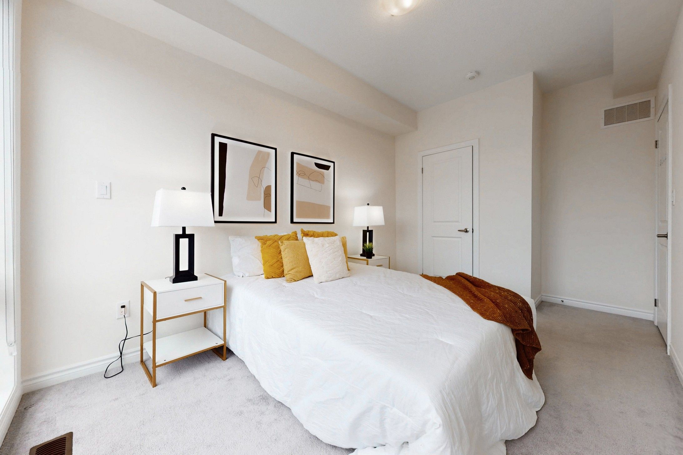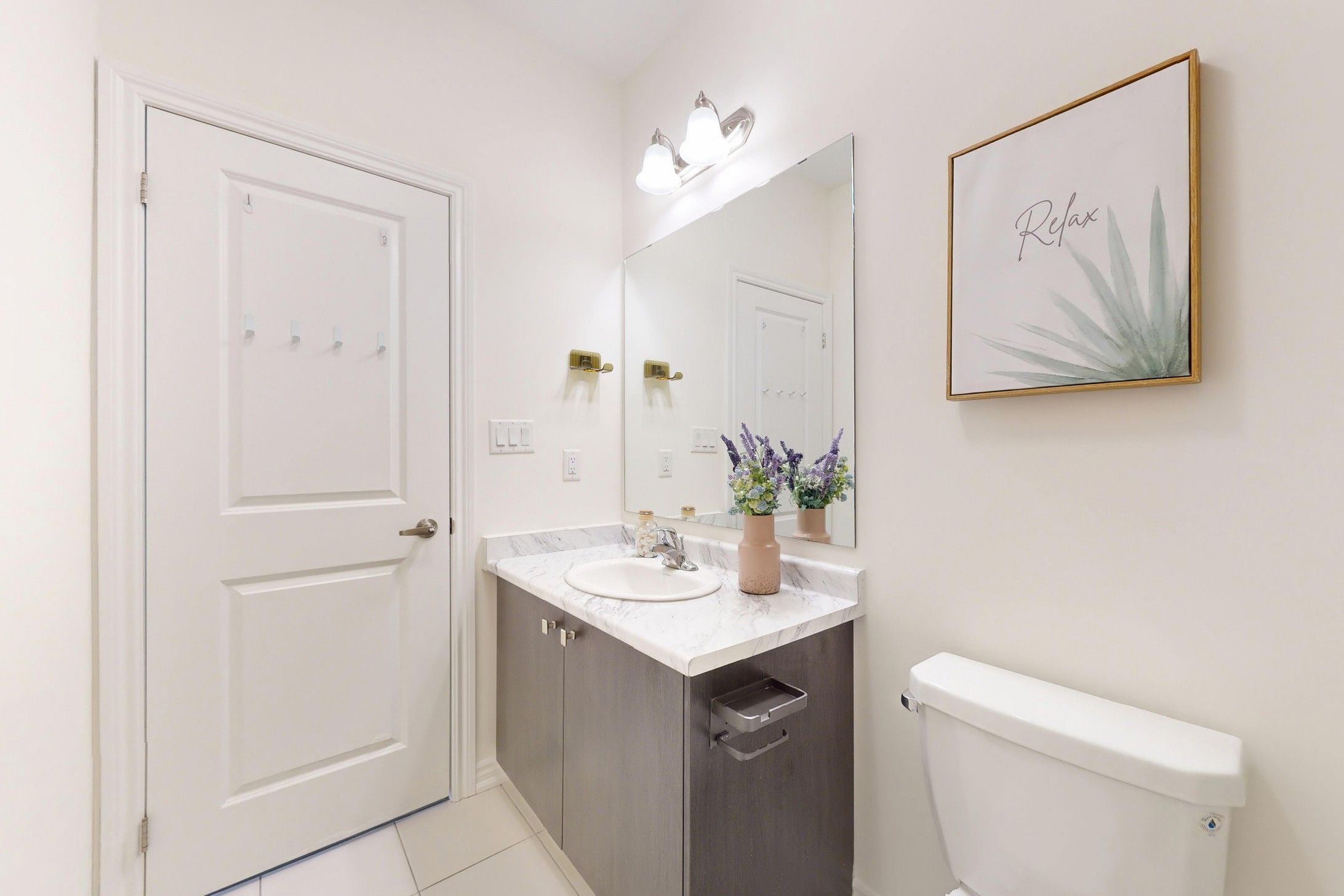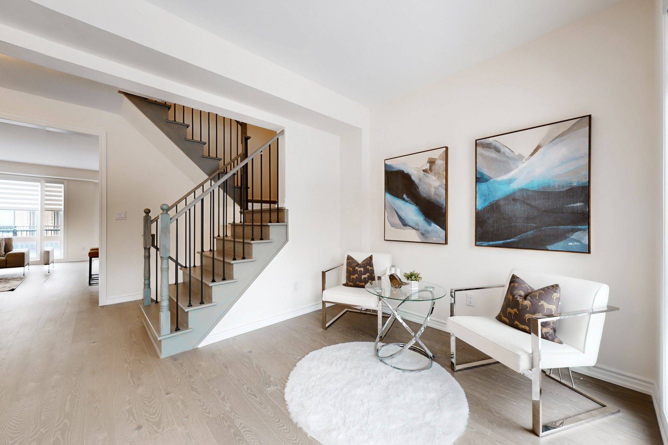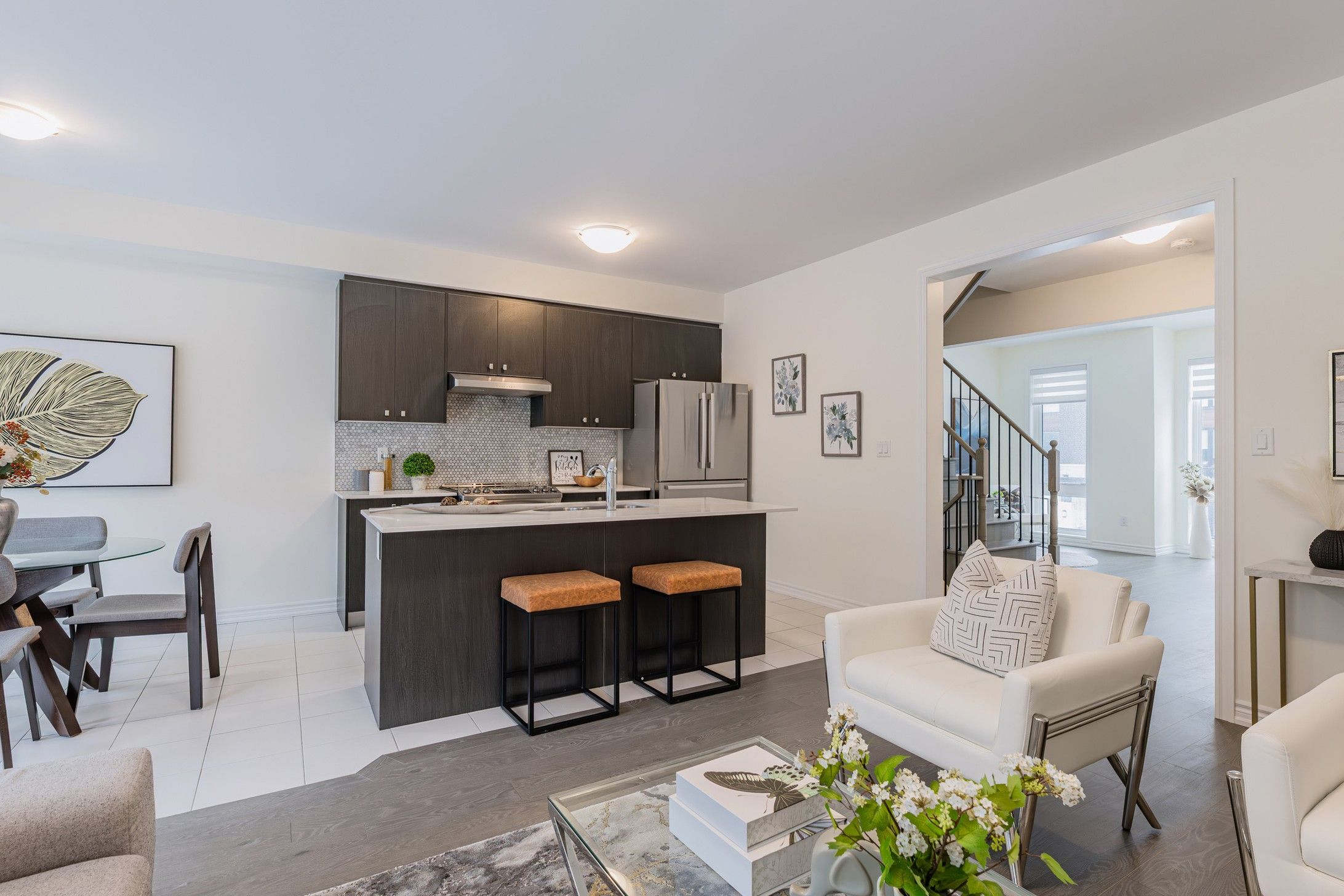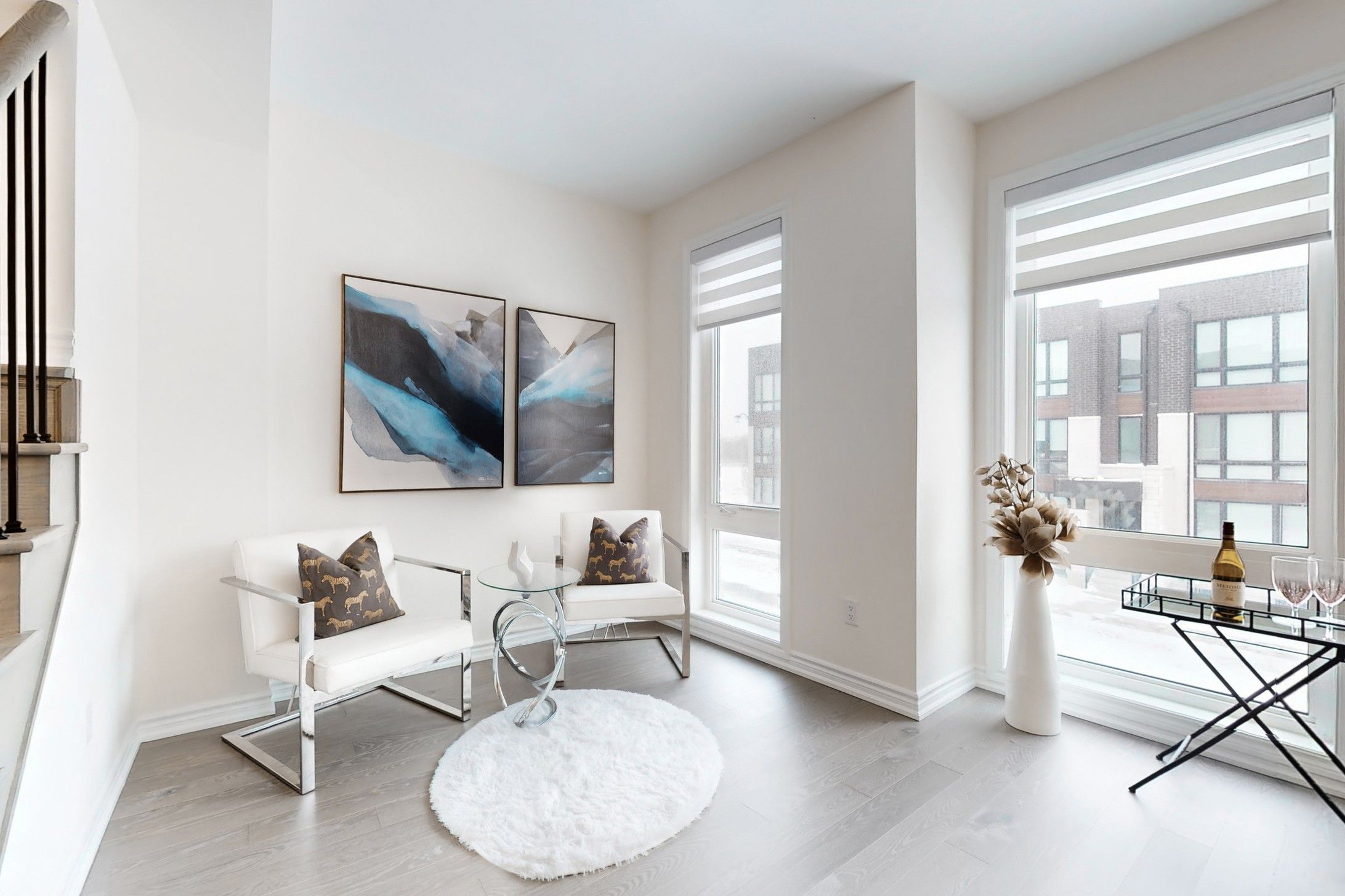 Modern luxury freehold townhome in the highly sought-after abbylane community in victoria square. 100% freehold - no potl fee! Offering approx. 2,302 sq. Ft. Of total living space as per floor plan. Featuring 9 ft ceilings throughout, this bright and spacious home offers a functional open concept layout. The spacious kitchen features a breakfast area, centre island, upgraded granite countertops and stylish backsplash, and seamlessly connects to the open concept family room with fireplace and walk-out to a private deck, perfect for everyday living and entertaining. The living room is filled with natural light through floor-to-ceiling picture windows, creating a bright and inviting atmosphere. The upper level offers 3 generously sized bedrooms with large closets, including a primary bedroom with a 5-pc ensuite, upgraded frameless glass shower and large window bringing in plenty of natural light. The 3rd bedroom features a walk-out to a private balcony. The ground level provides a versatile open space with powder room, ideal for a home office or additional living area. The finished basement with a full 4-pc bathroom can easily function as a 4th bedroom or guest suite. Convenient location minutes to hwy 404, top-ranked schools, parks, shopping, t&t, costco and more.