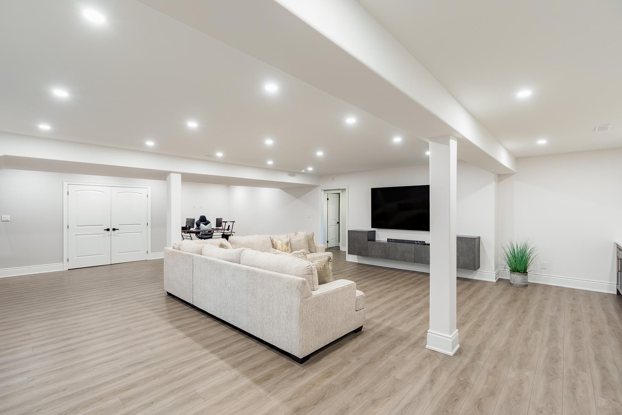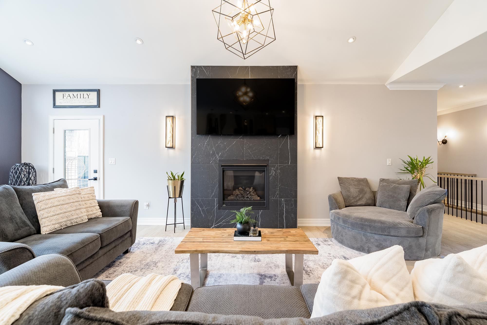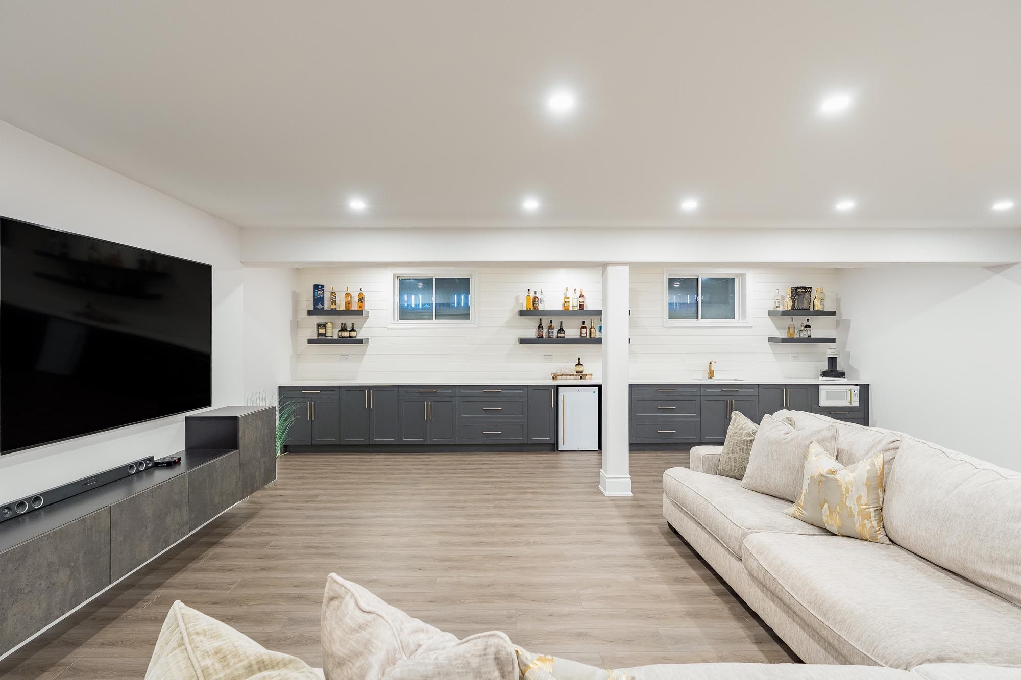• Fully finished basement with wet bar, gym, and extra bedrooms.