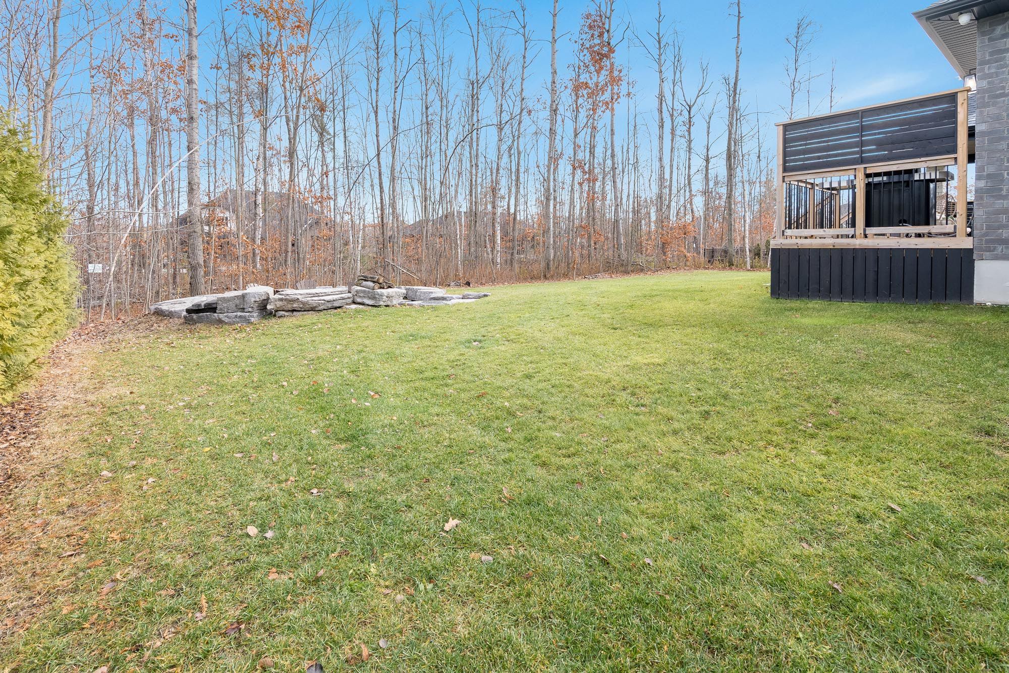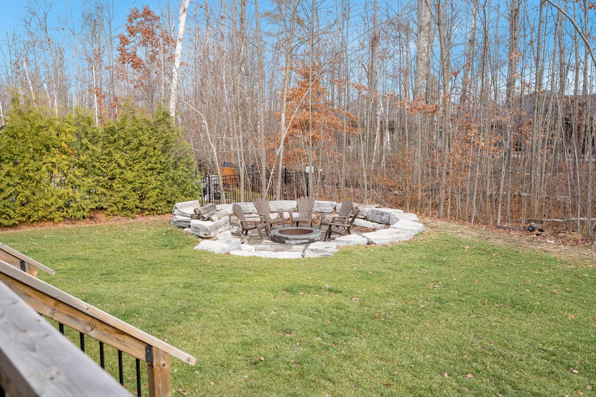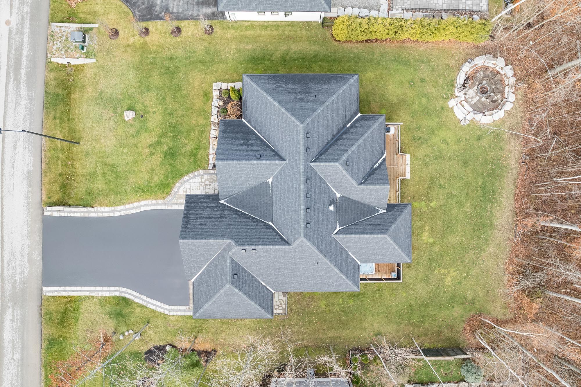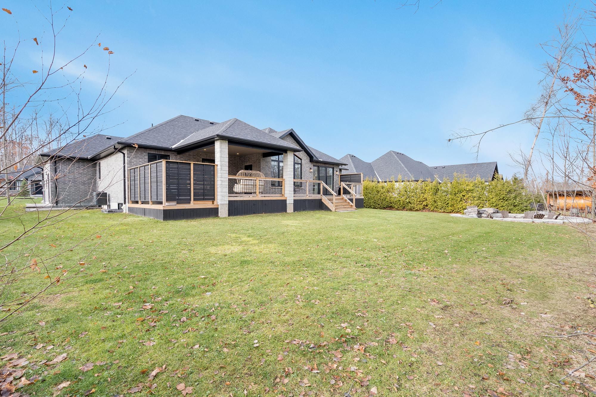 • Backyard features a firepit lounge, covered deck, and hot tub.