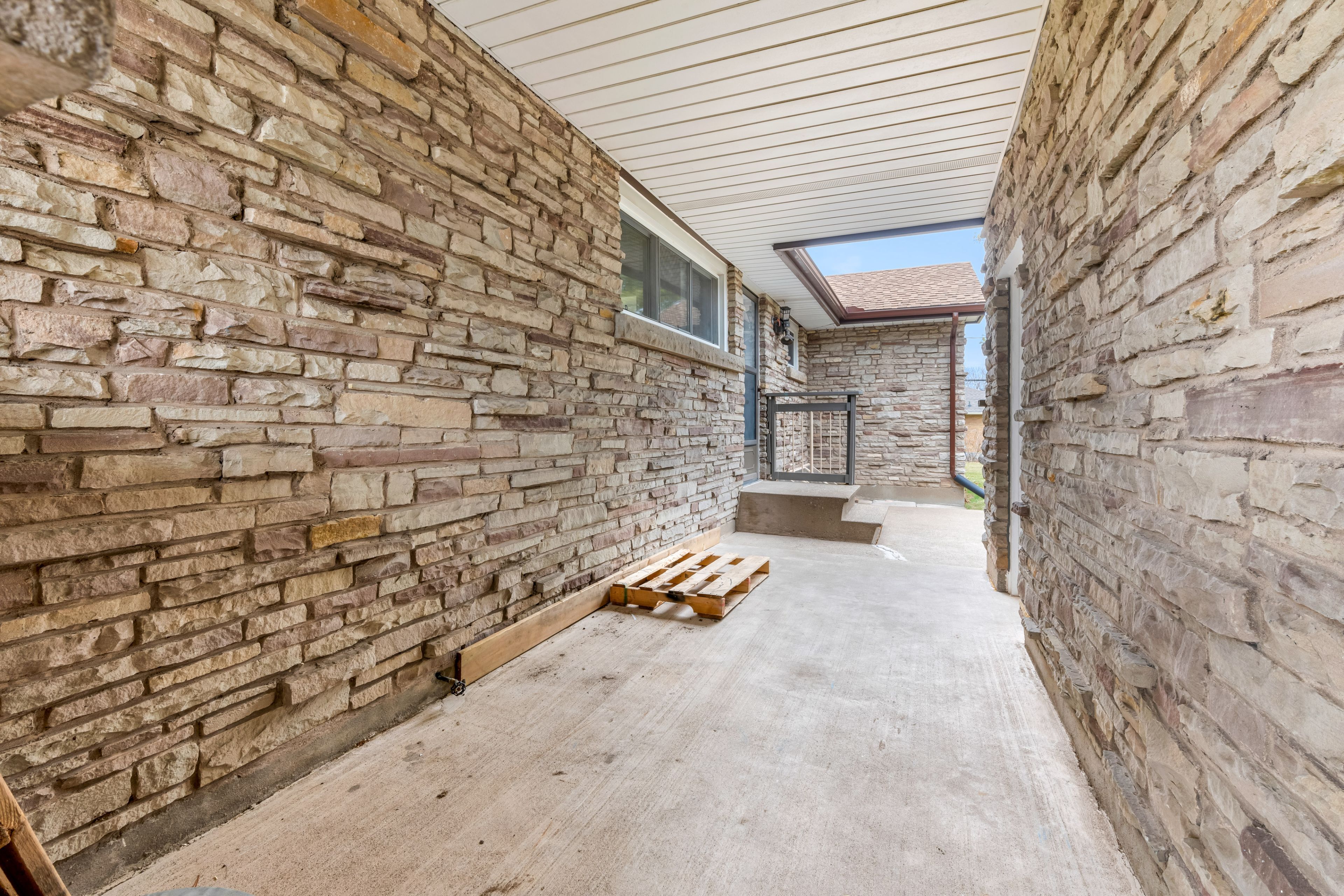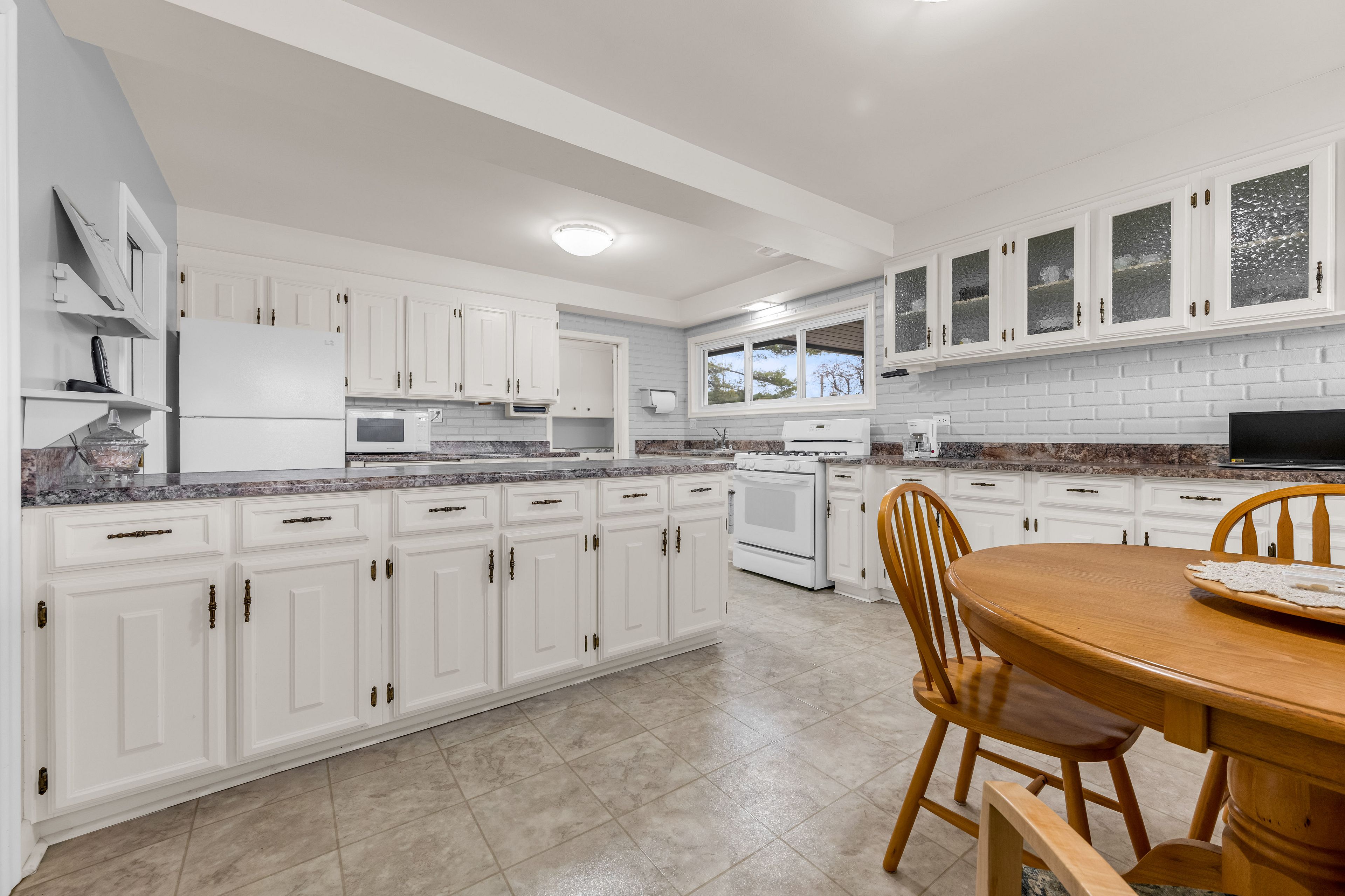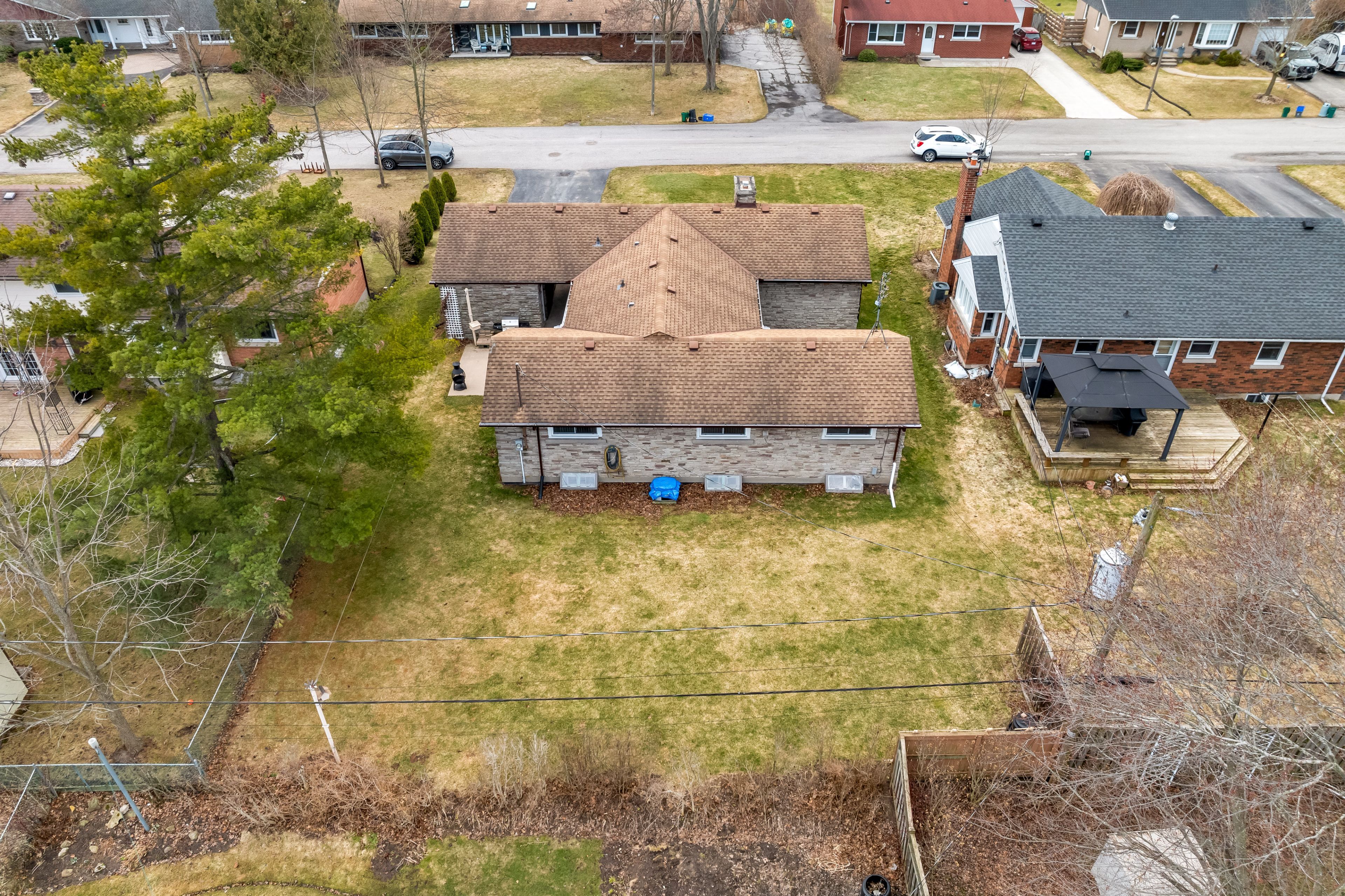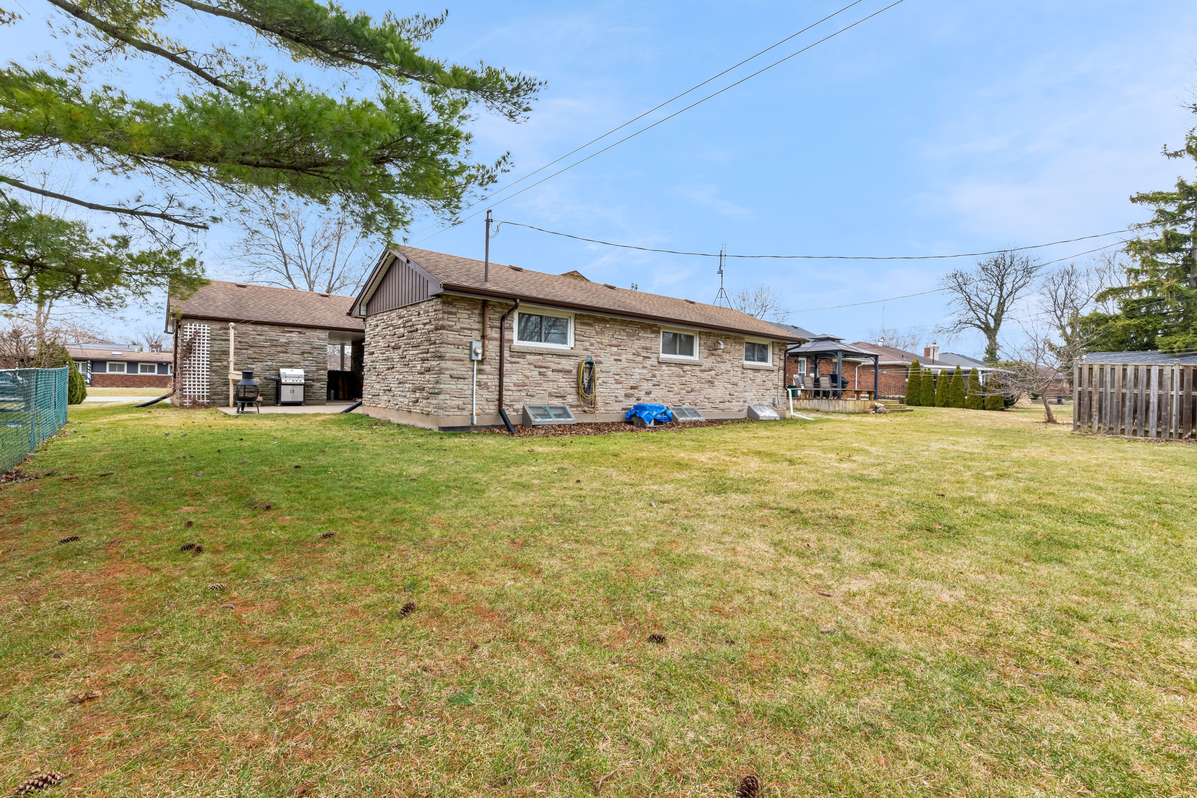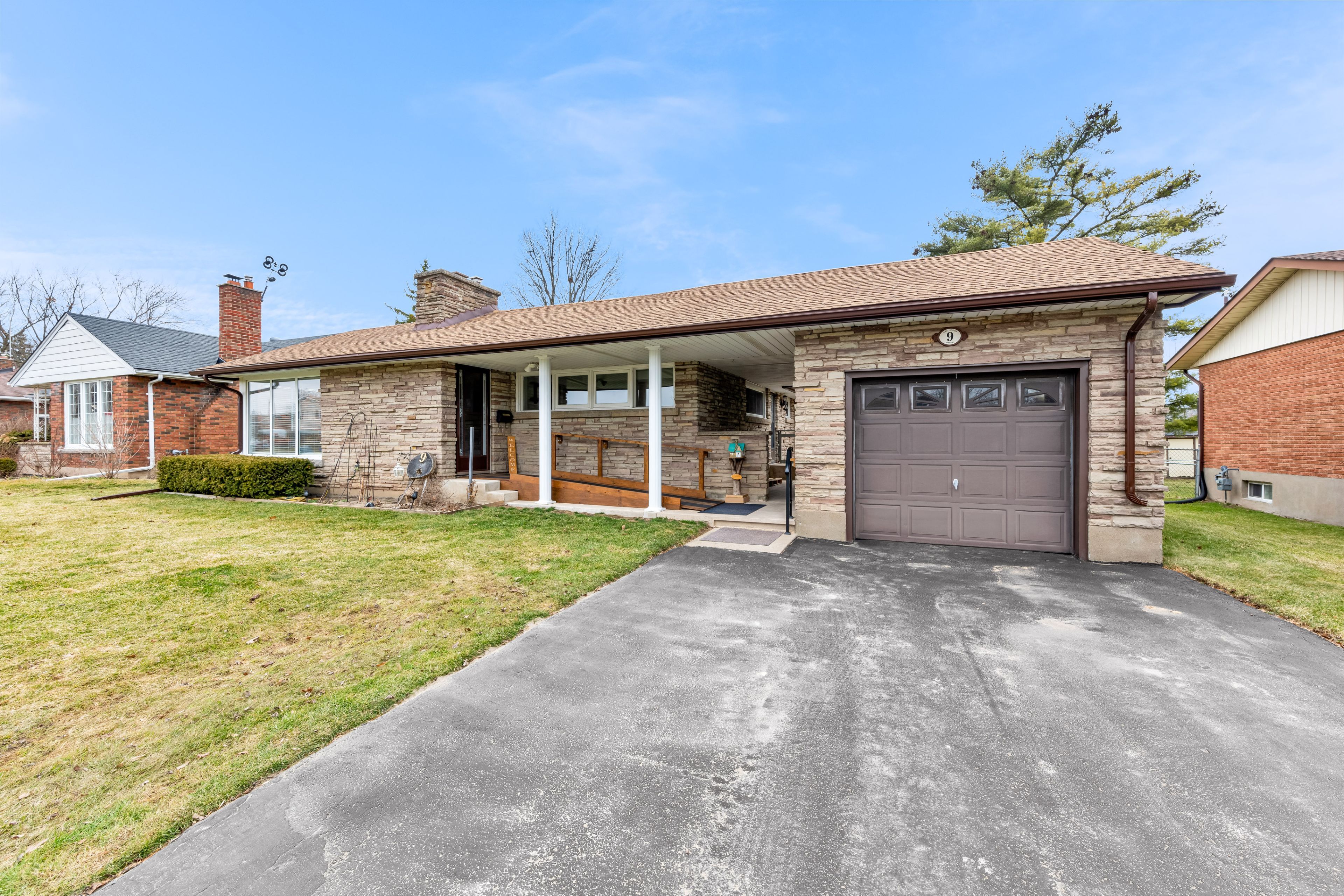 Spacious and full of character in a desirable, established welland neighborhood! This well-maintained, sprawling, 3-bedroom bungalow offers over 1,600 sq ft of main floor living space on a generous 66 x 120 ft lot, with a unique layout and beautiful angel stone exterior that gives the home timeless curb appeal. The main floor features large windows that fill the space with natural light, along with a spacious kitchen and dining area complete with abundant cabinetry. Convenient main floor laundry adds everyday practicality, while a side entrance leads to a charming courtyard ideal for a private garden retreat or quiet outdoor sitting area. A second side entrance is an ideal patio area, perfect for bbqs and outdoor entertaining. The detached 11ft x 20ft garage, equipped with 60 amp, 220v hydro features, 8ft ceilings and plaster walls is connected by a breezeway and provides excellent functionality for hobbyists, tradespeople, or anyone needing extra workspace. Three comfortable bedrooms share a well-appointed 4-piece bathroom. The lower level offers incredible versatility, featuring a huge workshop, truly a woodworker's dream, along with a kitchenette area, a second 4-piece bathroom, office space, and a large storage/utility room. The workshop space also offers excellent potential to convert into a future family room or additional living area if desired. Clean, well-cared for, and move-in ready, this home presents a fantastic opportunity to enjoy its charm as is, or add your own personal touches over time.