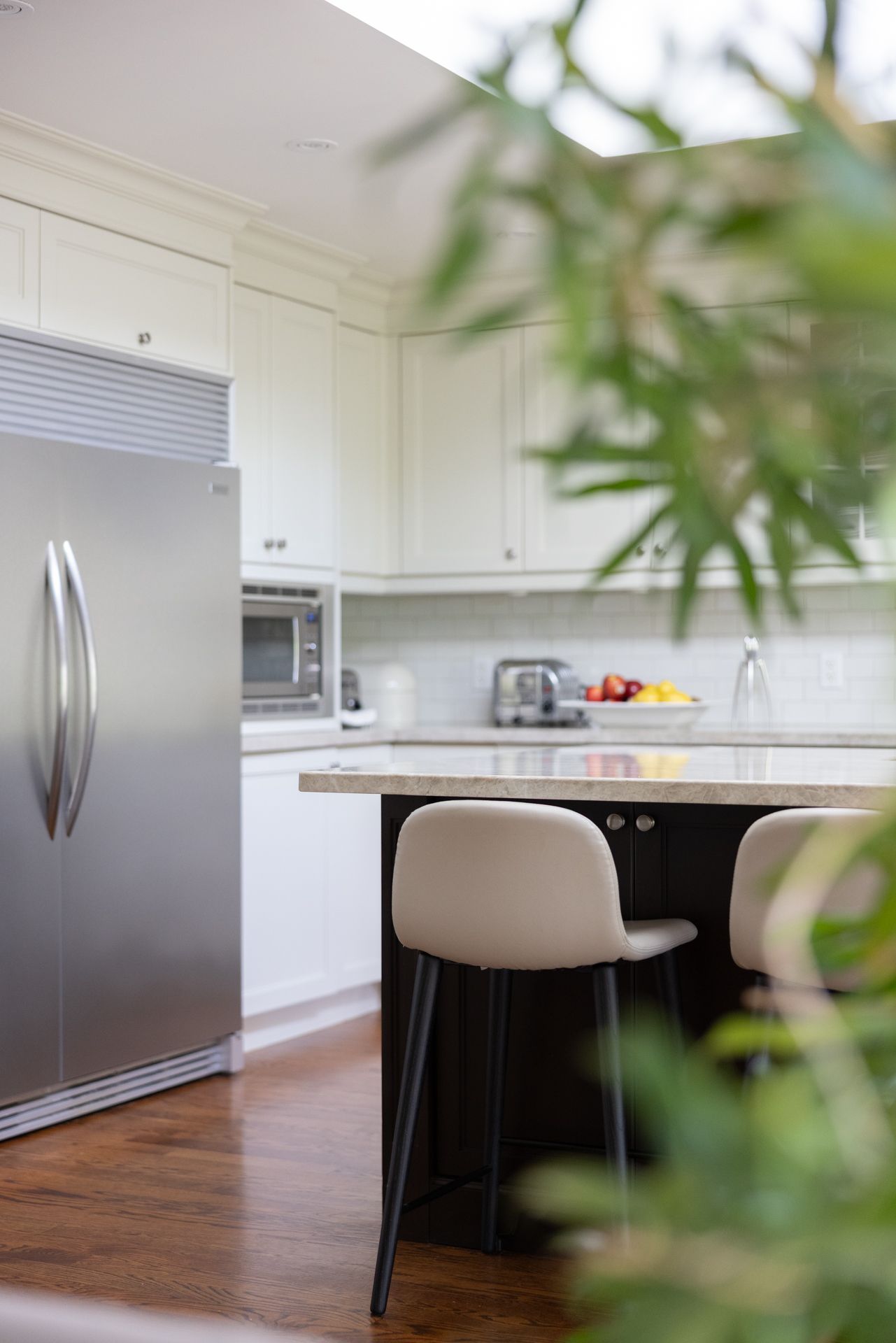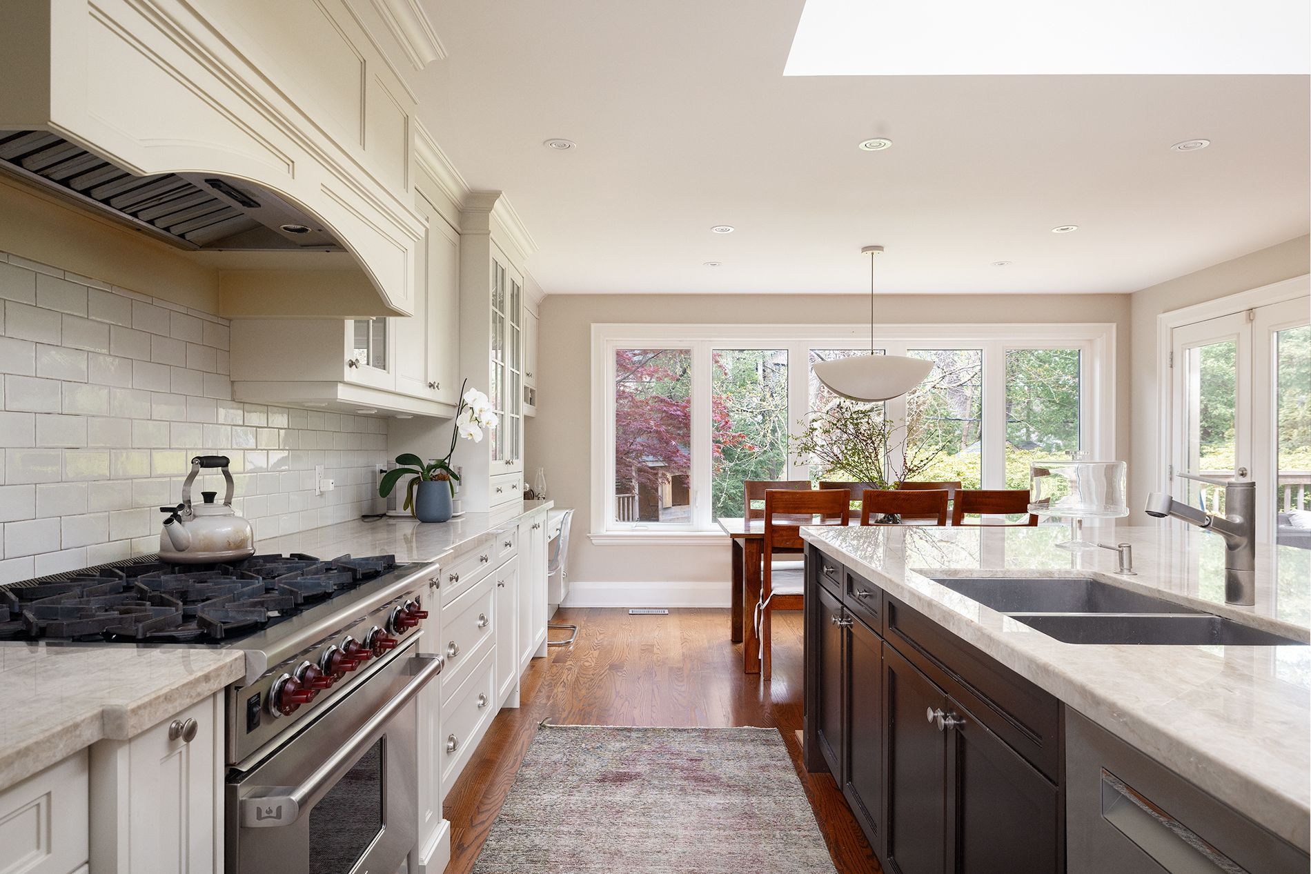 • Bright gourmet kitchen with high-end appliances and ample counter space.