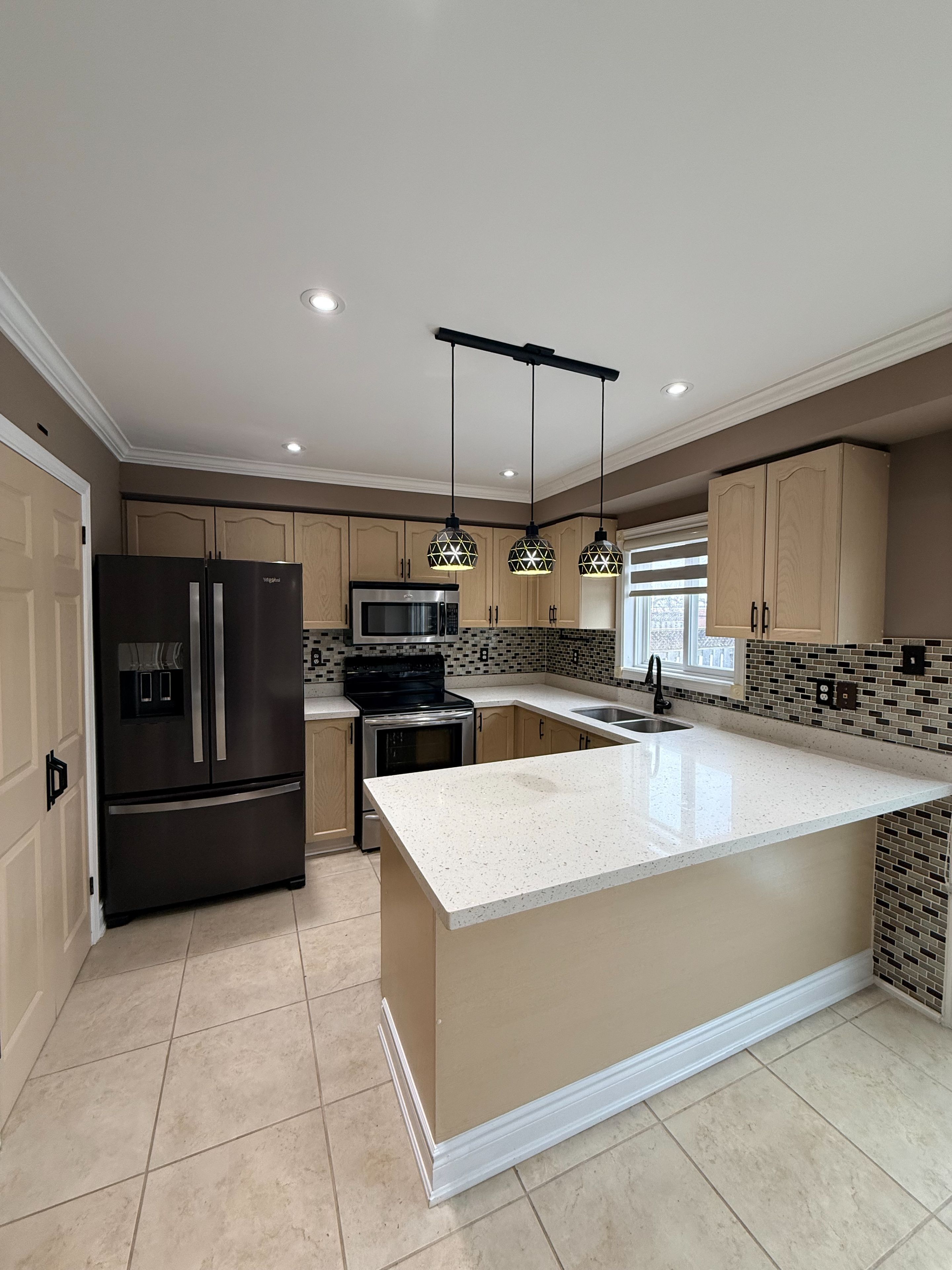 Beautifully maintained all-brick 3-bedroom residence in a sought-after neighbourhood with no homes behind, offering privacy and tranquility. The sun-filled eat-in kitchen showcases pearl oak cabinetry, pantry storage, and a sliding glass walk-out to the backyard-ideal for effortless indoor-outdoor living. The spacious primary retreat features a walk-in closet and private ensuite bath. Well-proportioned rooms throughout provide exceptional comfort and functionality. A finished basement with side entrance and kitchen adds versatility and potential. Ideally located close to top schools, sheridan college, and transit.