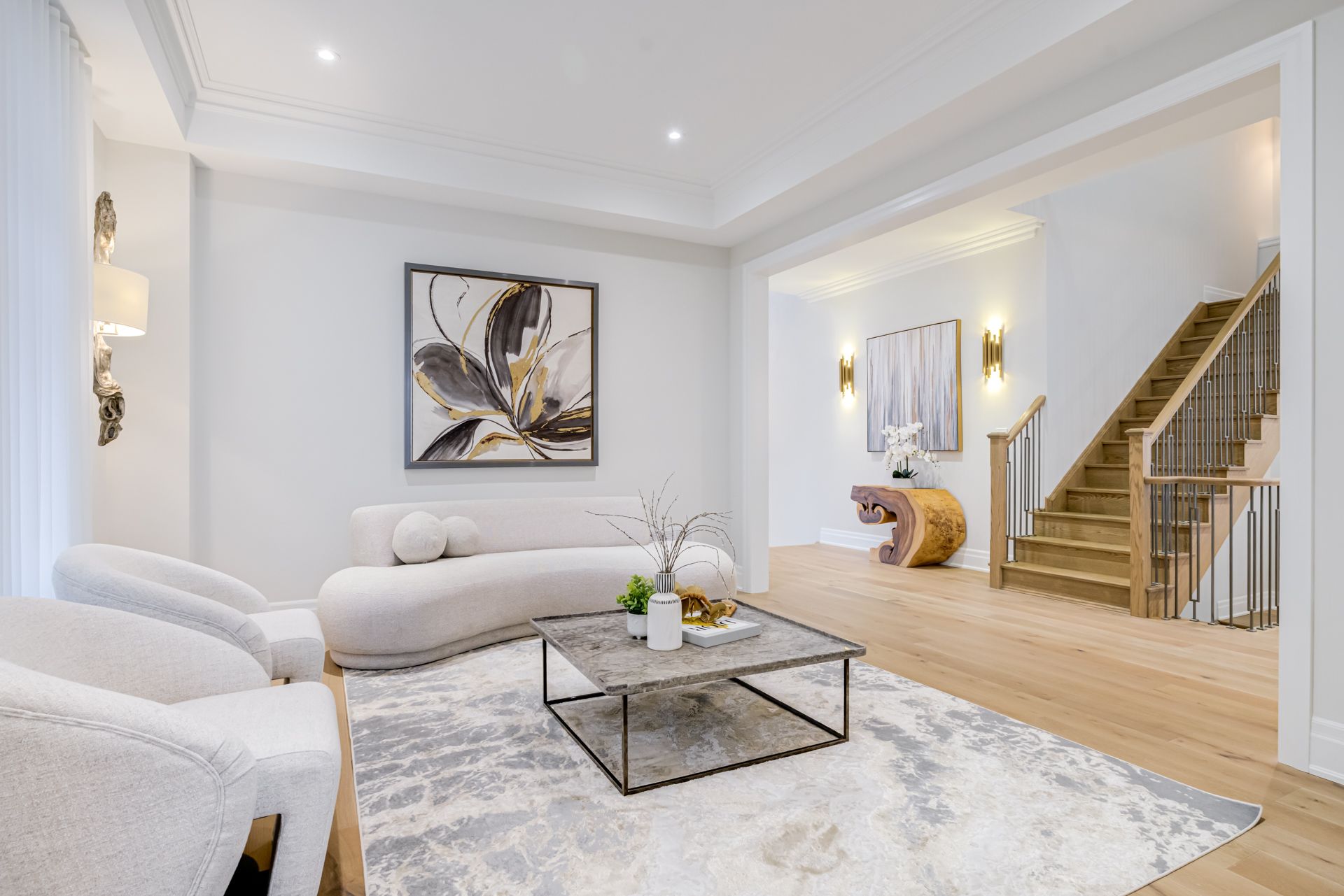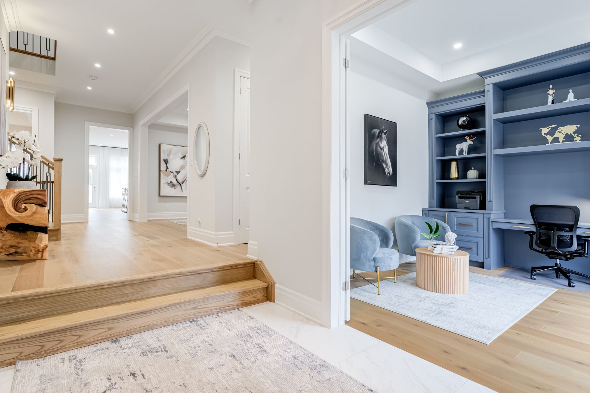 Set on a rare 50 ft lot on a quiet, family-friendly court in vaughan's prestigious patterson community, 9 casavant court is one of the newest (2022 built) and most refined luxury homes in the area-zoned for top-ranked schools & surrounded by exceptional amenities. This fully customized 5-bedroom, 6-bathroom residence with 10 ft ceilings on main, 9 ft ceilings on 2nd floor & 9 ft in basement, spans 4513 sf above grade, with an additional 1753 sf finished walk-up basement offering hydronic radiant floor heating. Features extensive custom upgrades throughout: open-to-above design; oversized windows; 10 ft ceilings on main highlighted by an 11 ft ceiling in the front office with custom built-ins-ideal for luxurious home office experience; 7-inch wide-plank hardwood flooring; smooth ceilings throughout; designer lighting; custom drapery; 8 ft doors & upgraded trim; crown moldings; upper-level laundry; functional mudroom; water filtration system; full surveillance system. The chef's kitchen impresses with 9 built-in thermador appliances, a 5 ftx10 ft island featuring 1 stone as a counter, eat-in area, quartz countertops & backsplash, custom designer cabinetry with display lighting, fully integrated apli-s, flowing seamlessly into the family rm & formal dining rm creating a sophisticated space for entertaining. Family rm offers custom built-ins & double-sided gas fireplace. Formal living rm features wall scones & enlarged window. Upstairs 5 spacious bedrooms & 4 full bathrooms feature 9 ft ceilings, while the primary suite includes enlarged windows, walk-in closet with natural light & custom organizers, a 7-pc spa-inspired ensuite & private gas fireplace for a touch of luxury. The finished walk-up basement with heated floors provides versatile additional living space, while the pool-sized backyard offers a private oasis perfect for summer entertaining. Your opportunity to own a 2022 built, extensively upgraded home on a quiet court in one of vaughan's most desirable enclaves!