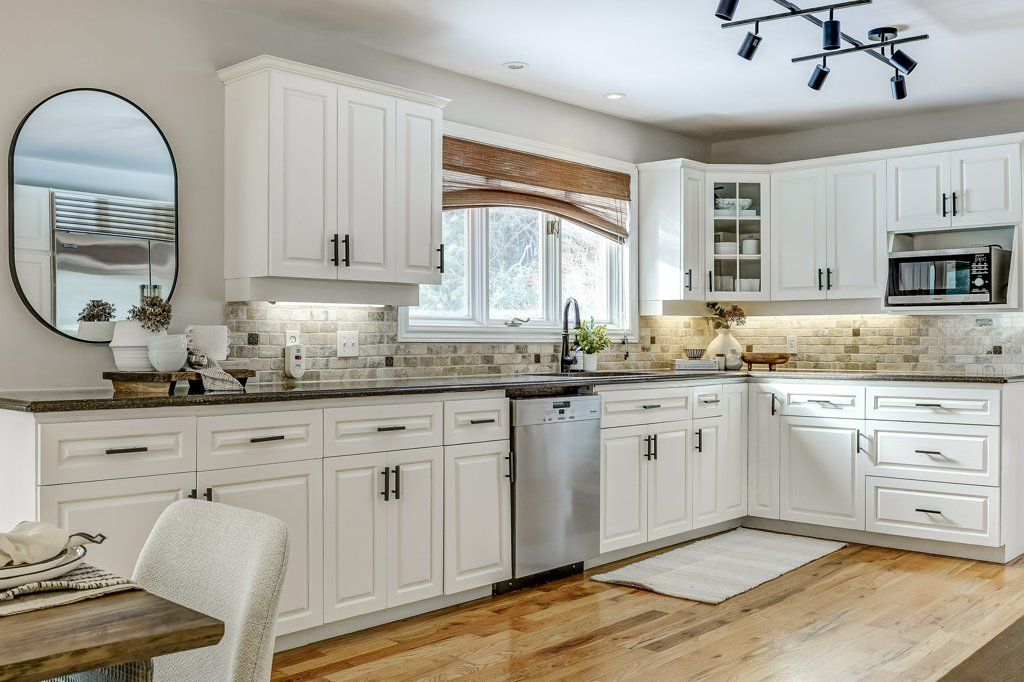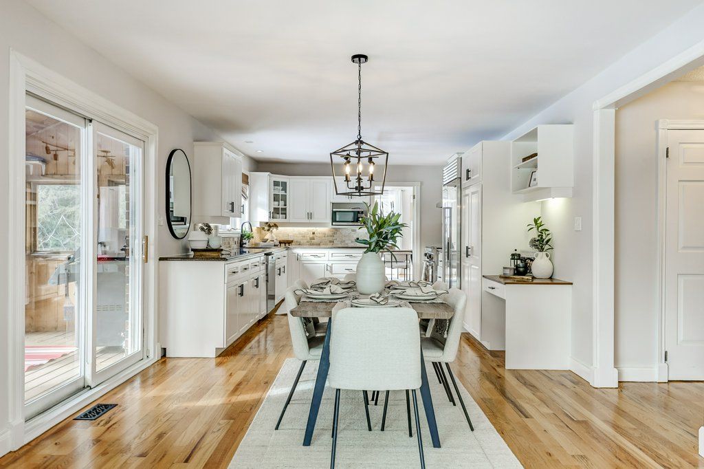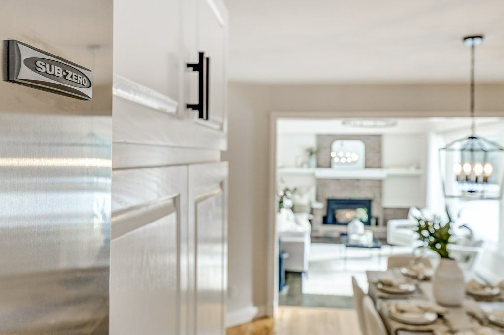 • Modern eat-in kitchen with high-end appliances for the home chef.