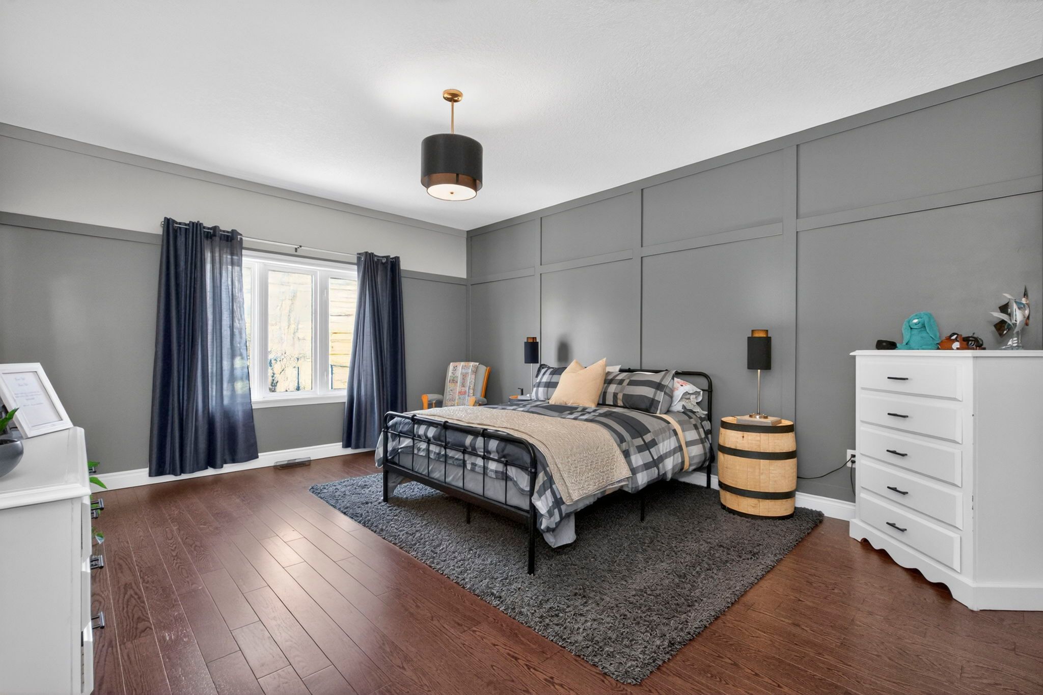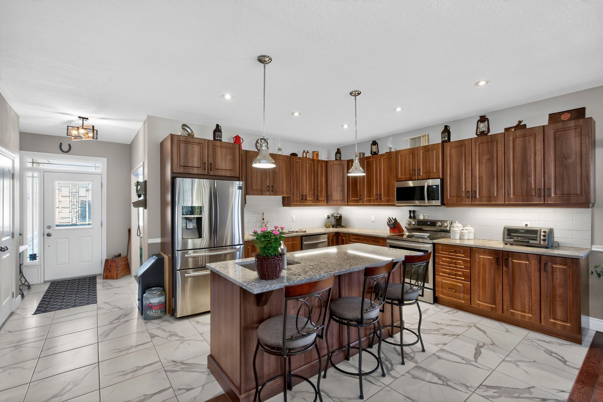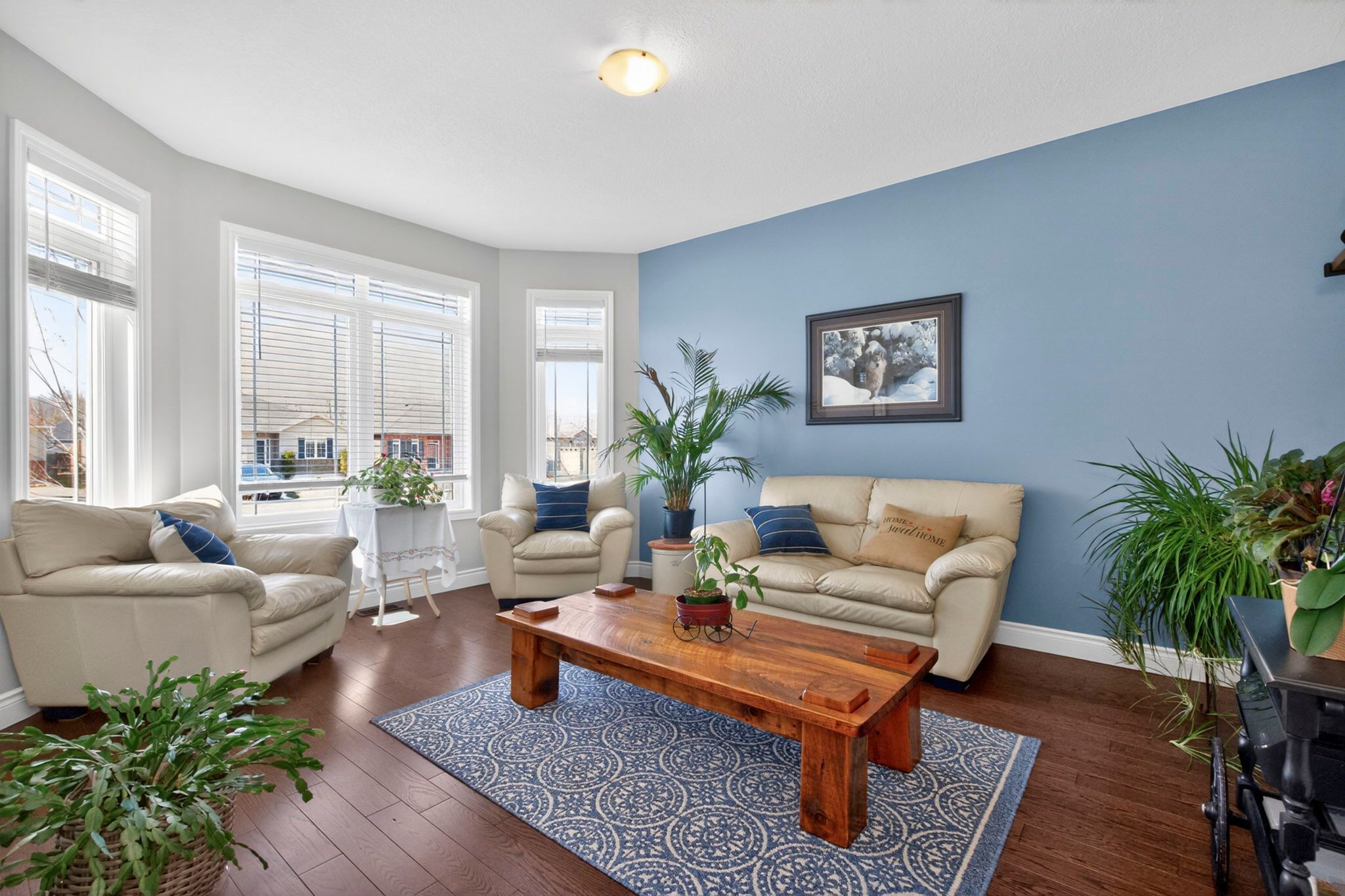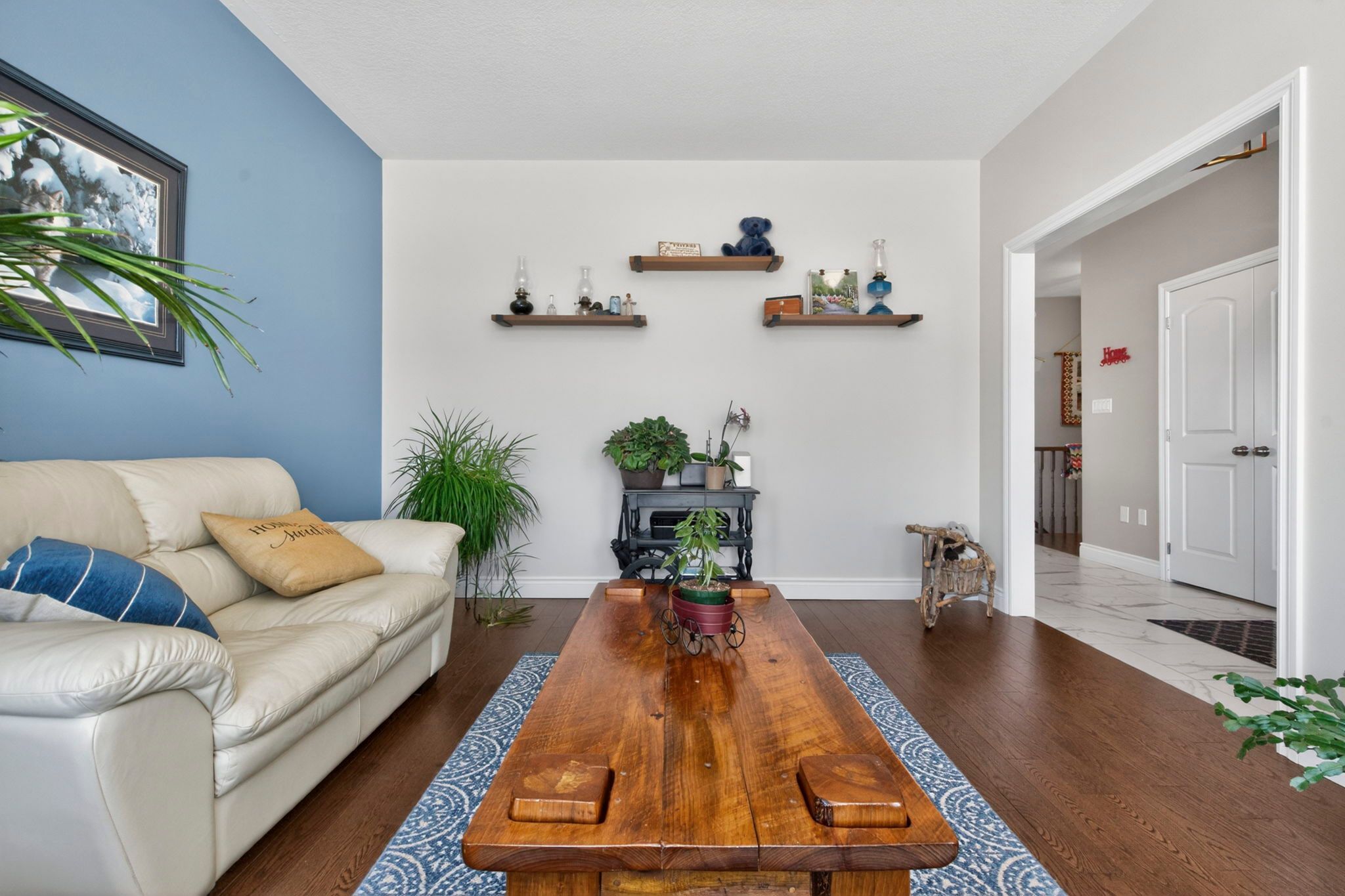 Welcome to this beautifully maintained spacious and functional bungalow with professionally landscaped front gardens. Your first step inside will "wow" you as you look forward to the 12 ft patio door providing a beautiful view of your backyard and allowing daylight to pour in! The 9ft ceiling, spacious kitchen boasting granite counters, a double sink, and a prep sink in the extended island, is combined with family room and dining room. Enjoy these features everyday as you sit comfortably around the fireplace! Front den or office space is a bonus in this 3 bedroom home. A spacious primary retreat complete with a walk-in closet and 5-piece ensuite with the window facing your lovely backyard. The convenience of main floor laundry and inside entry from the double car garage makes daily living effortless. The heart of the home extends outdoors through an oversized patio door leading to a private fenced backyard, with 4ft wide gate, and handy shed. Here you'll find a deck and hot tub perfect for relaxing or entertaining. The basement is designed for enjoyment, featuring a bar with built-in fridge, pool table with accessories, all included, making this a true turnkey entertainment space. Additional highlights include a partially wired generator system, central vac rough-in, and a recently updated dishwasher (2026) and basement tub/shower rough in. A move-in ready home offering comfort, convenience, and the perfect setup for entertaining inside and out.