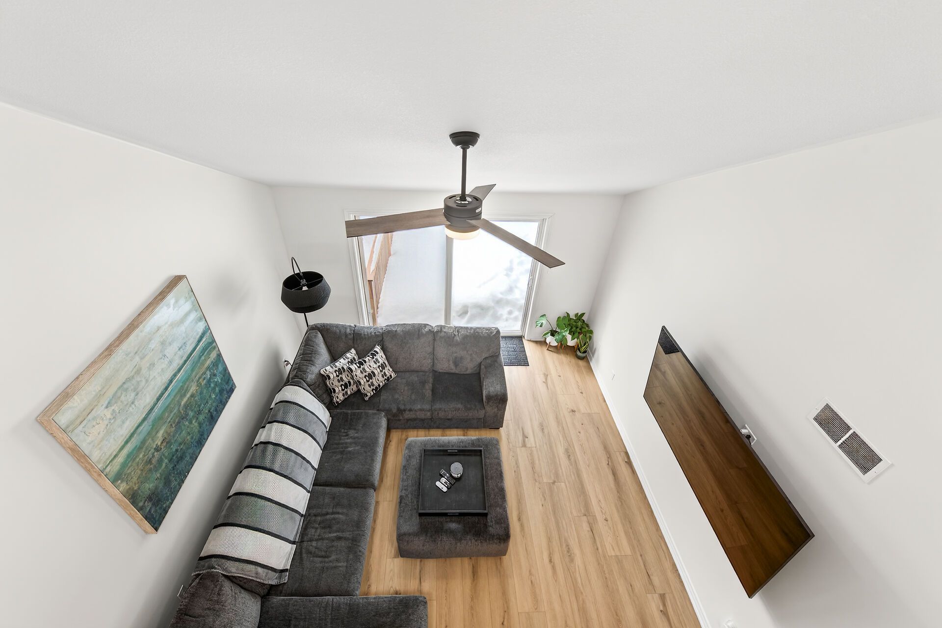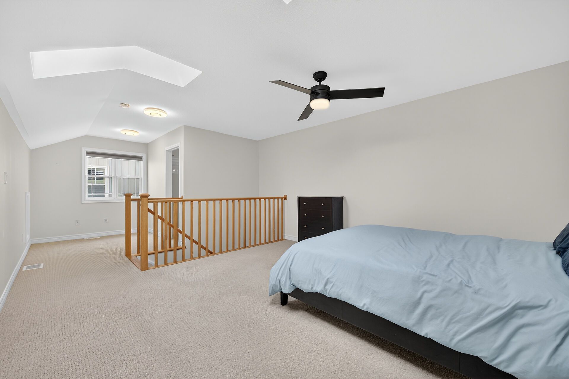 • Expansive loft level features a third bedroom and natural light from skylights.