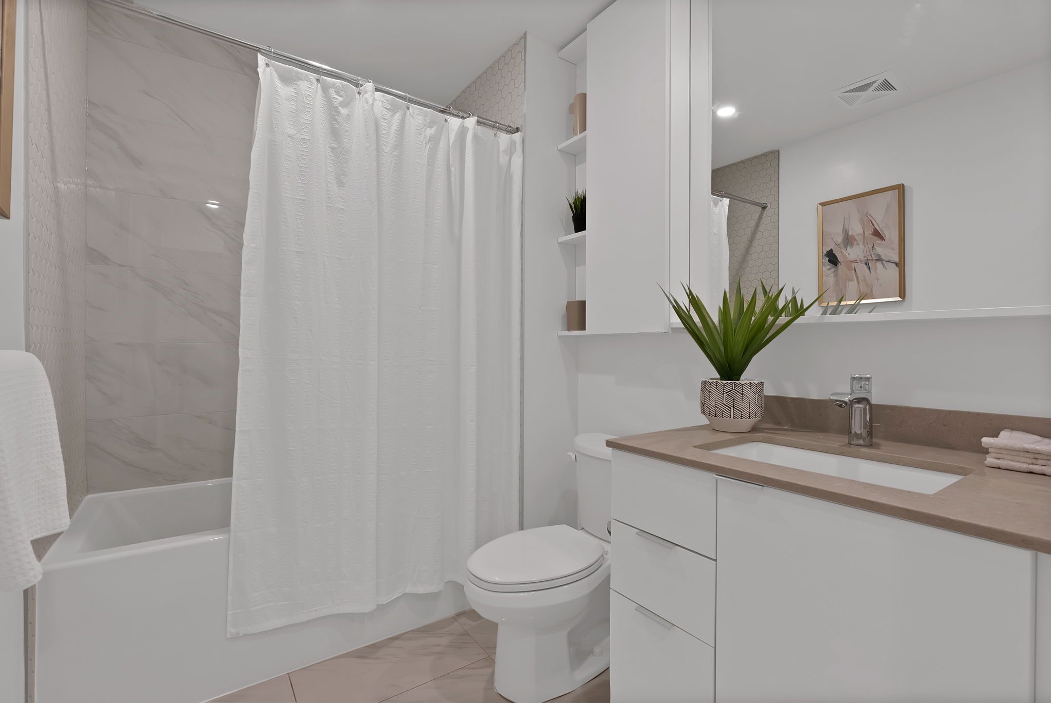 • Master bedroom includes ensuite bathroom and walk-in closet for convenience.