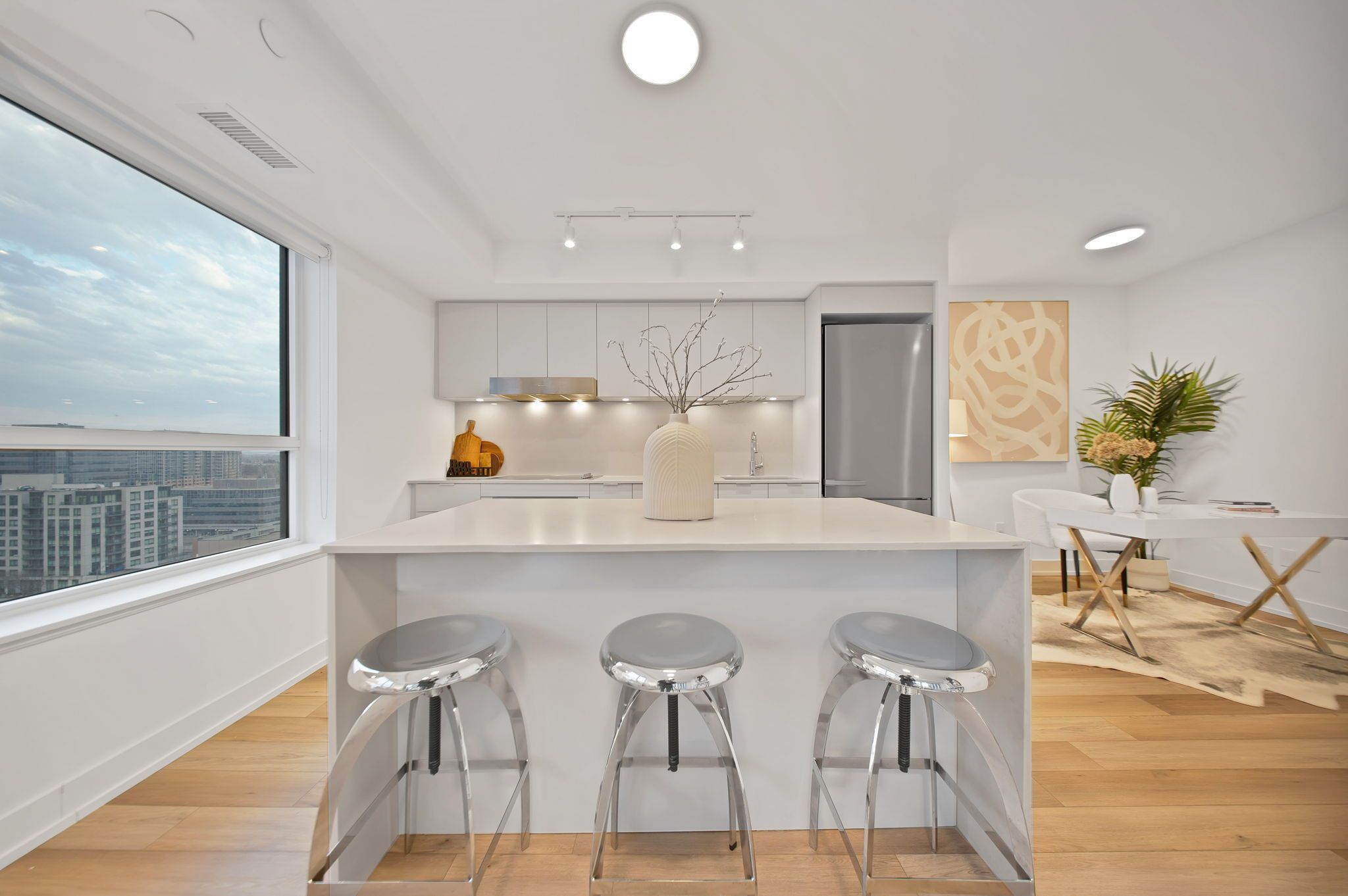 Experience contemporary living at vendome markham condos in this bright and spacious 2-bedroom plus den, 2-bathroom suite offering 1,017 sq. Ft. Of thoughtfully designed interior space, complemented by an expansive balcony ideal for relaxing or entertaining. Whether you're starting a new chapter or seeking a peaceful retreat, this unit delivers comfort and versatility throughout. The functional den provides flexible use as a dining area, home office, or cozy study space, while the open-concept layout is enhanced by a well-appointed kitchen featuring a large island-perfect for cooking, hosting, and everyday living. The primary bedroom serves as a private sanctuary with its own ensuite bathroom and walk-in closet, offering both style and practicality. Step outside to enjoy unobstructed views from the generous balcony, extending your living space into the outdoors. Built in 2024 and available for immediate occupancy, this modern residence is perfectly situated at highway 7 and warden, with quick access to highways 407 and 404 for effortless commuting. Surrounded by sought-after amenities including first markham place, markham civic centre, costco, and top-ranking unionville high school, this vibrant and growing community offers the perfect balance of convenience, connectivity, and lifestyle.
