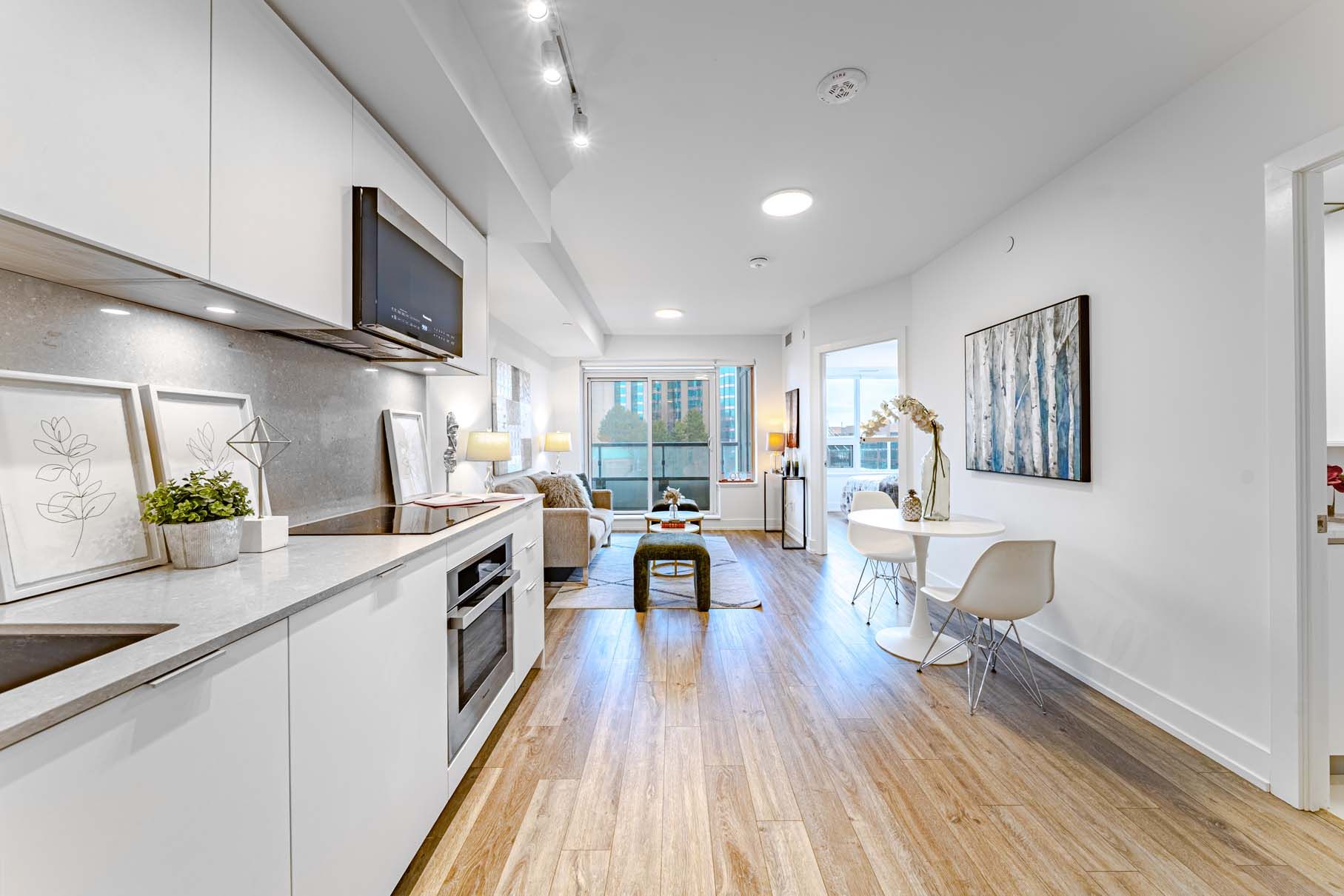 Experience upscale living in this luxurious 1+1 bedroom, 2 bathroom condo nestled in the prestigious unionville community, in the heart of markham. Just 3 years old, this modern unit features an open-concept living and dining area that seamlessly extends to a private balcony, perfect for relaxing or entertaining. The stylish kitchen boasts quartz countertop, stainless steel appliances and backsplash. Large den with sliding door, can convert to another bedroom. Enjoy unmatched convenience with walking access to top-ranking unionville high school, first markham place, markham civic centre, public transit, supermarkets, banks, and a variety of restaurants. With quick access to hwy 404/407, plus one parking space and one locker included, this home offers the perfect blend of comfort, location, and lifestyle.