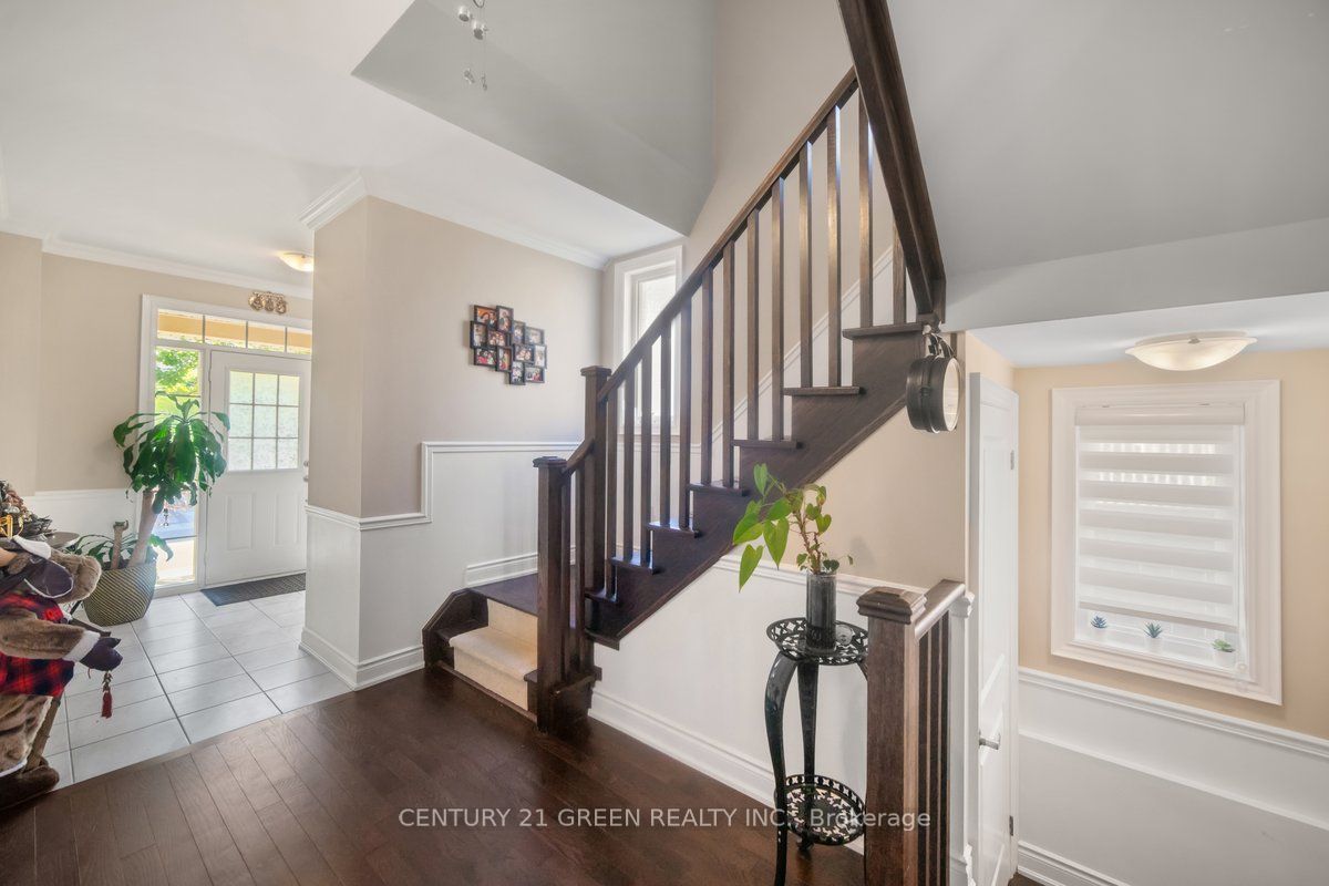 Step into sophistication with this beautifully appointed family home, where timeless design meets modern comfort. The expansive main level welcomes you with a grand foyer that flows seamlessly into a sun-drenched great room an ideal space for both relaxation and refined entertaining. The gourmet kitchen is a culinary masterpiece, featuring sleek stainless steel appliances, contemporary cabinetry, and premium finishes that elevate everyday living. Adjacent to the kitchen, the stylish dining area boasts sliding glass doors that open to a serene, landscaped garden oasis perfect for alfresco gatherings and tranquil moments. A chic powder room completes the main floor with convenience and flair. Ascend to the upper level where four generously proportioned bedrooms await, including a sumptuous primary suite with a spa-inspired 4-piece ensuite bath. The fully finished basement offers versatile additional living space, ideal for a media lounge, home office, or guest retreat. Outside, the expansive backyard provides a private haven for family celebrations, weekend barbecues, and outdoor leisure. This exceptional property blends elegance, functionality, and charm an impeccable opportunity in one of ajax's most desirable neighborhoods.