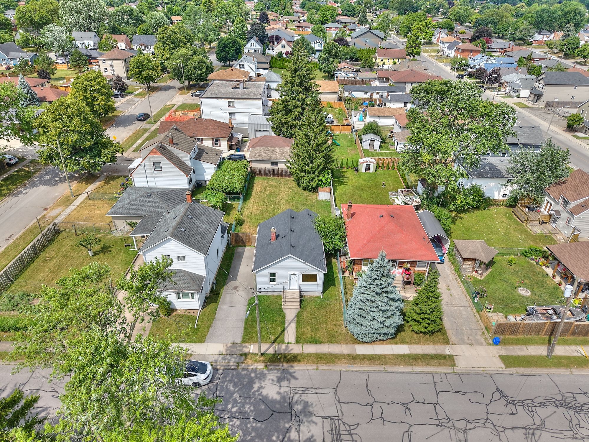 Welcome home to 9 colborne street! Situated in a prime location of thorold, this bungalow is as cute as they come and is an exceptional overall package. Equipped with two full bathrooms, a large yard and a lovely layout, this property is sure to be appealing to first-time home buyers and retirees alike. Offering the perfect blend of comfort, convenience and outdoor space, it will be easy to fall in love with this home. Step inside to find a bright and spacious layout, featuring an expansive living area and well-appointed kitchen. With a separate dining area beyond the kitchen that overlooks the backyard, you will have plenty of space to host and entertain here. The two main floor bedrooms are conveniently located at the front and the back of the home and are separated by a 4-piece bathroom, providing easy access and a functional layout. Take note of the gorgeous hardwood flooring that spans the majority of the main floor, a wonderful touch of character to this modernized home! The finished basement offers a generous recreation room and a third bedroom which is ideal for overnight guests or a private home office. A full, 3-piece bathroom adds convenience, while the dedicated laundry room provides ample space to stay organized with your domestic responsibilities. Beyond the laundry room is a storage room, perfect for keeping seasonal items and household essentials neatly tucked away. Outside, enjoy a fully fenced backyard, ideal for pets and kids to play or entertaining guests. Whether you are hosting a summer bbq or simply relaxing outdoors, this space offers privacy and endless possibilities. Conveniently located close to parks, schools and shopping, this home is positioned in a fantastic family-friendly neighbourhood with everything you need just minutes away. Major, recent updates include: shingles (2020), furnace (2021), central air (2022) and refinishing of basement (2026). Don't miss out on this fantastic opportunity, schedule your private showing today!