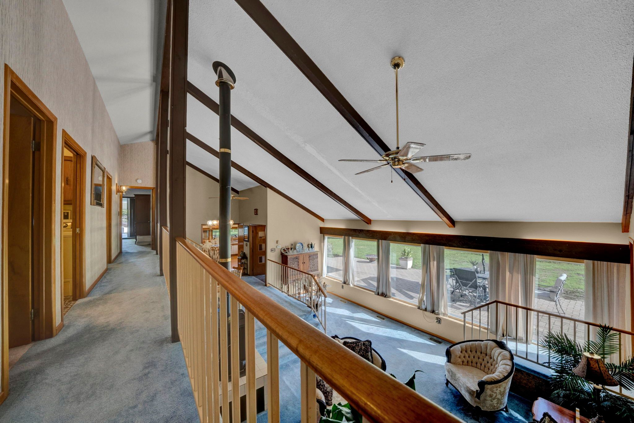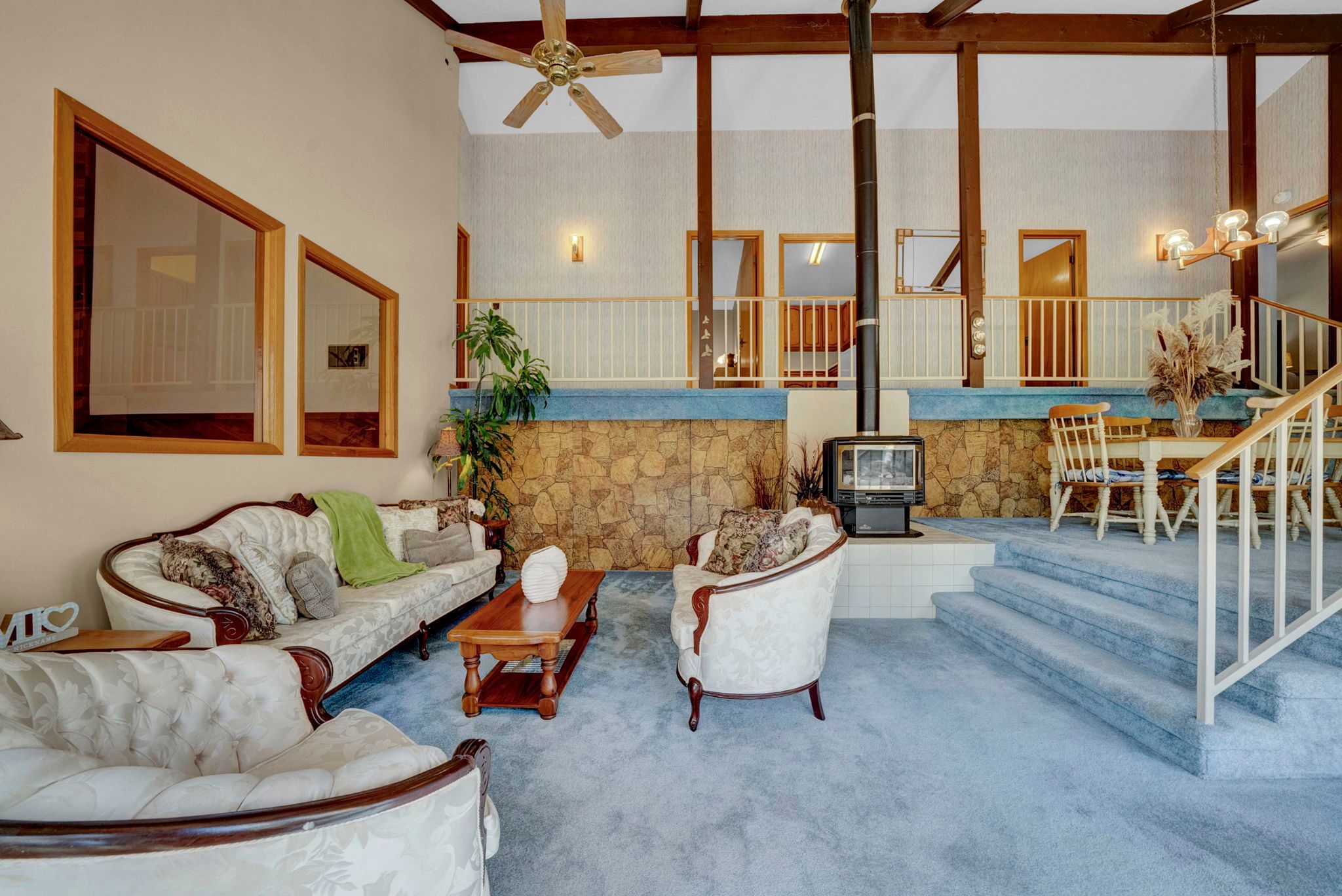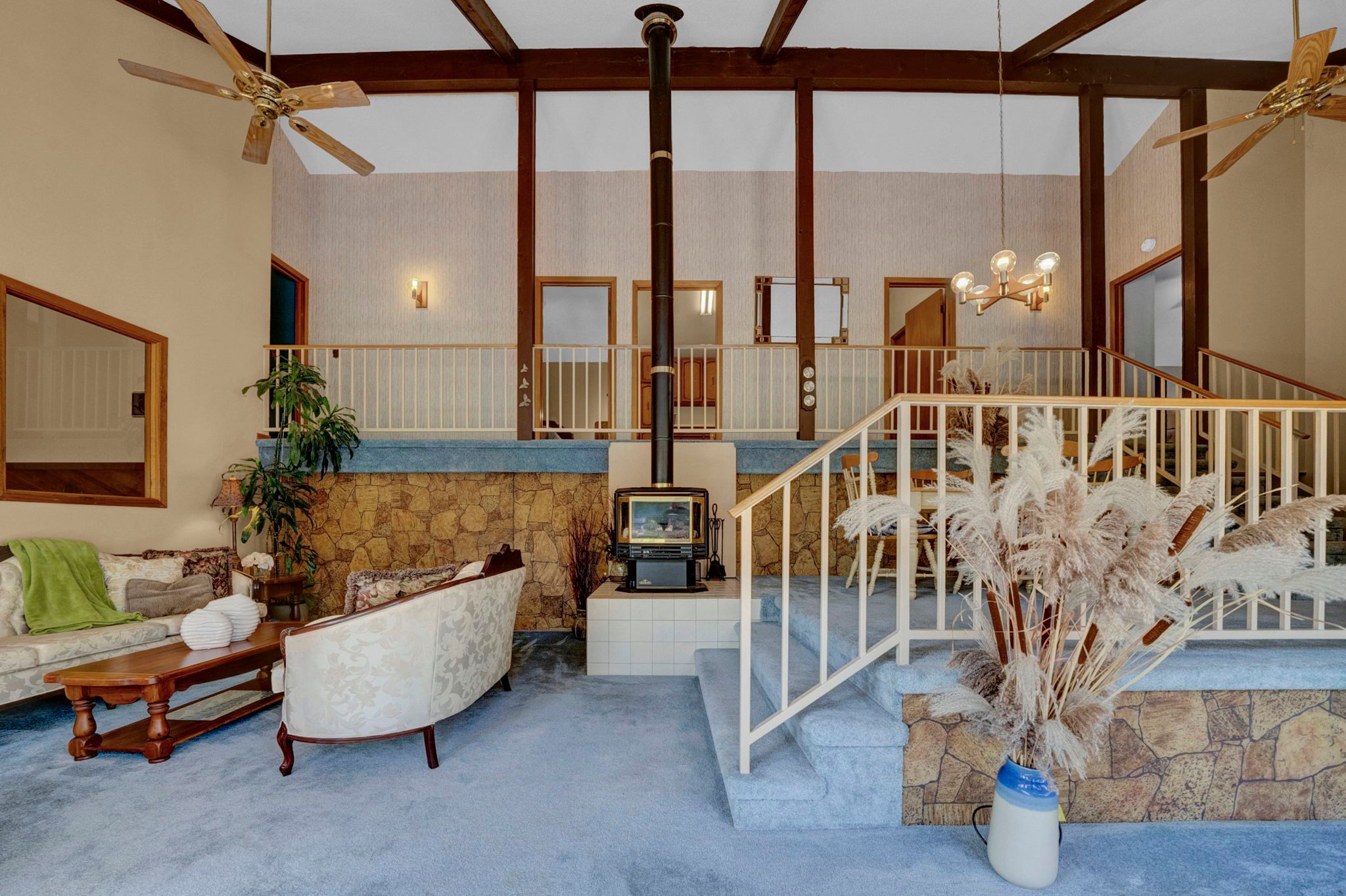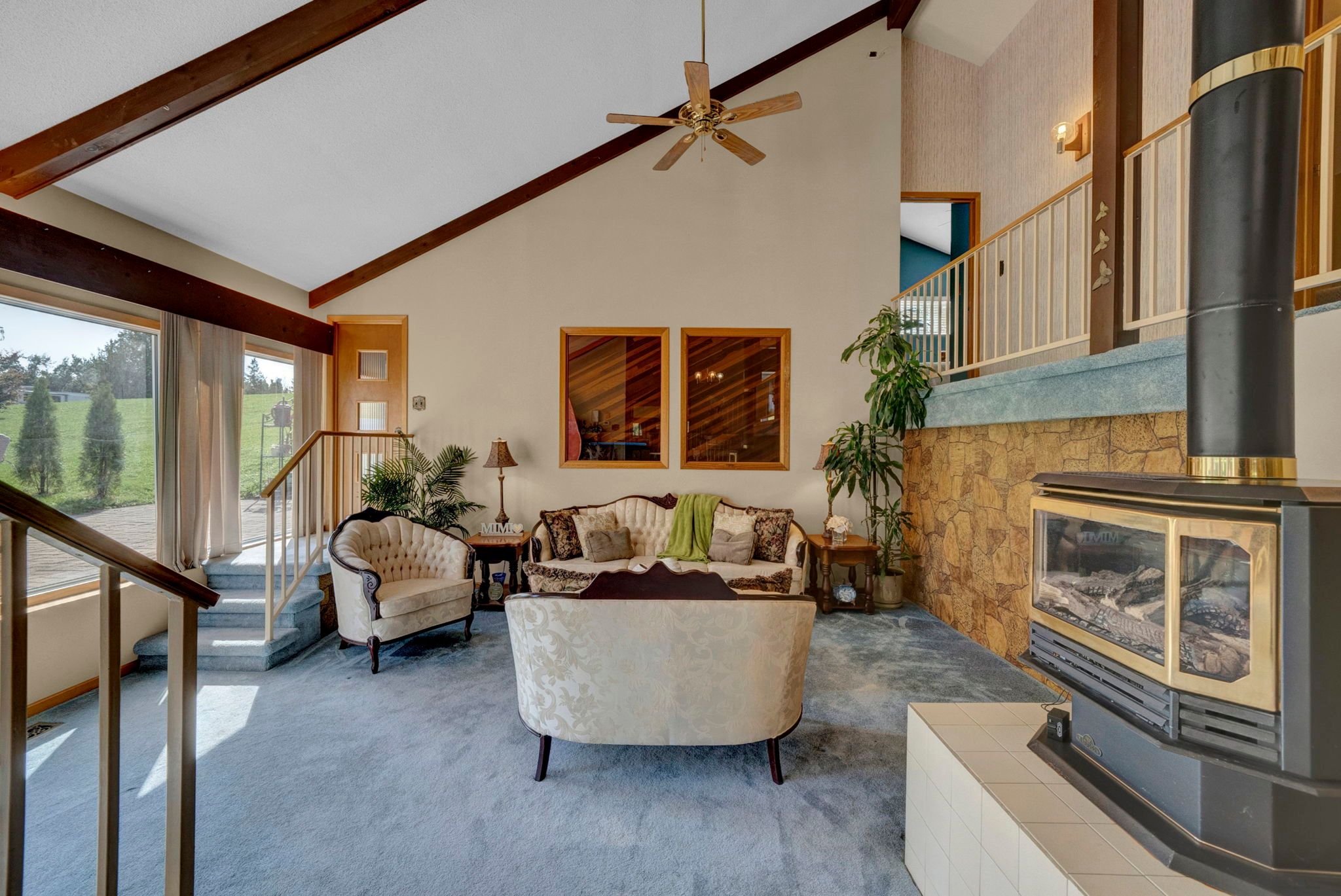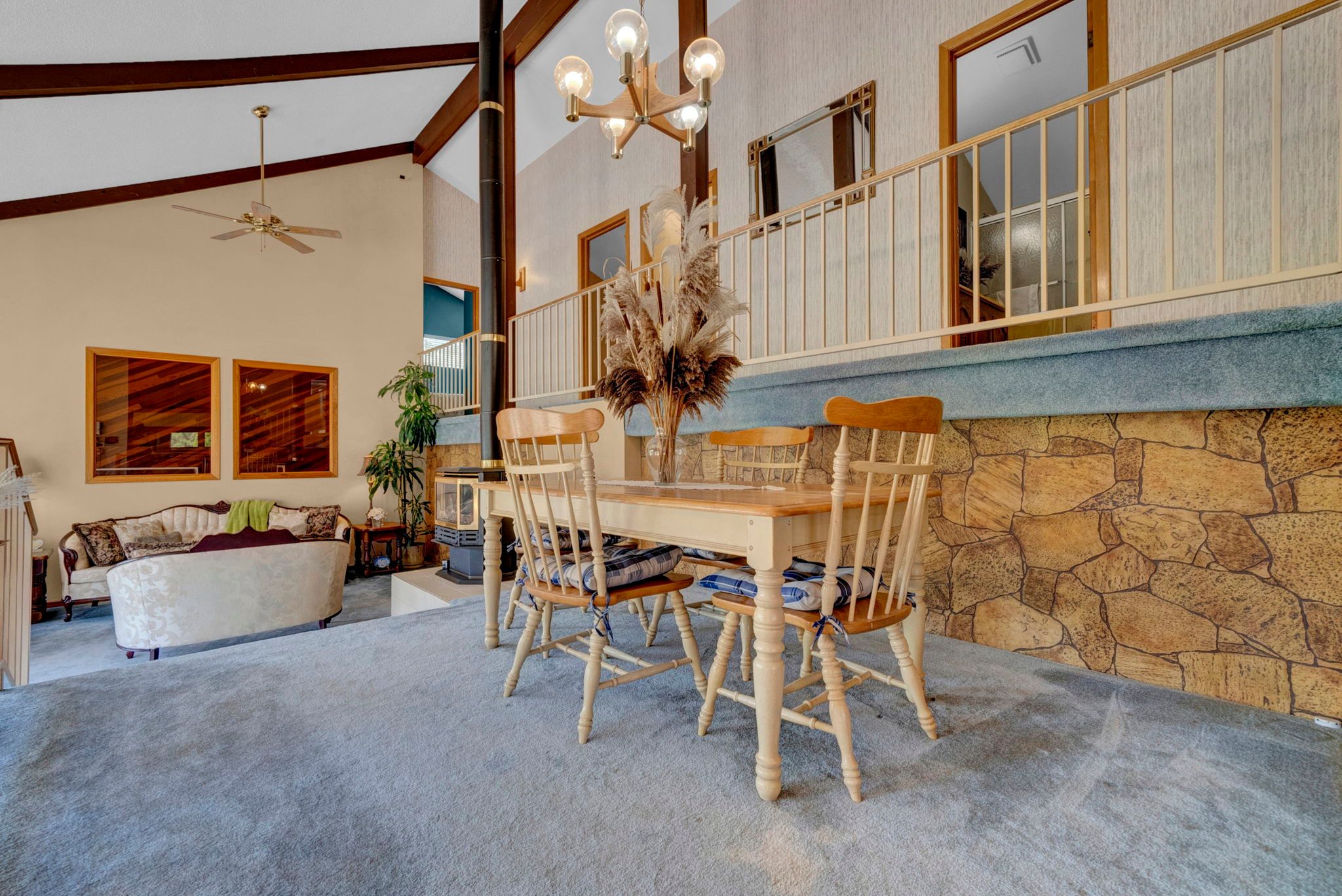 • Bright and spacious open-concept design with cathedral ceilings.