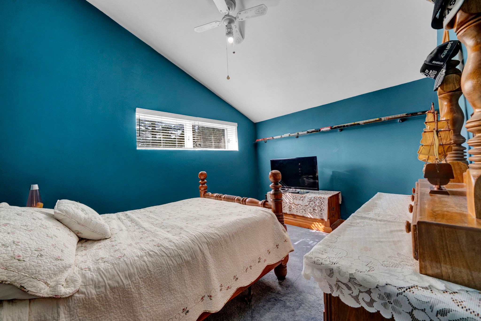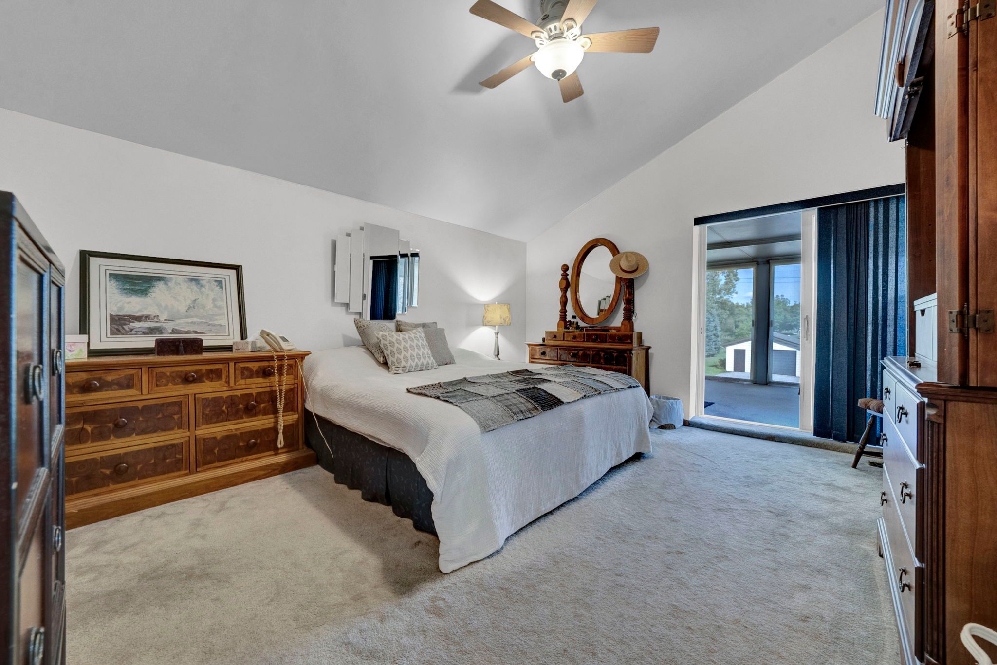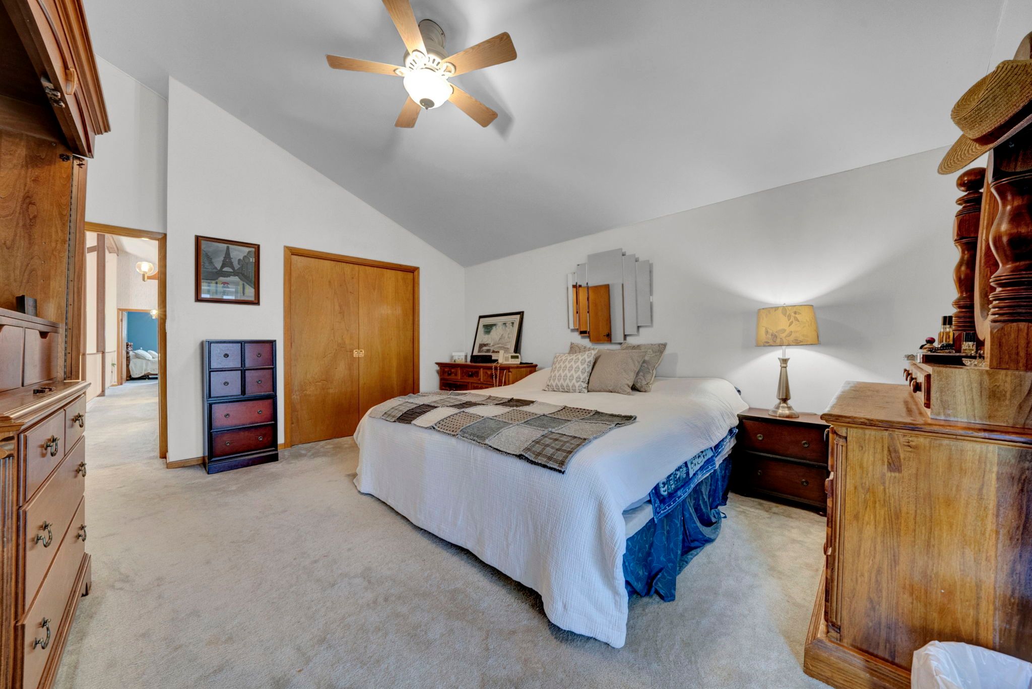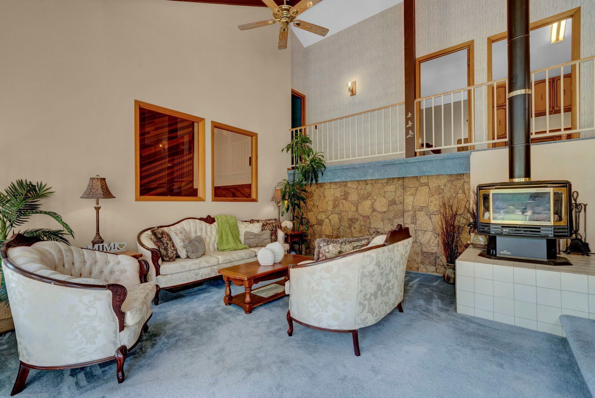 • Bright and spacious open-concept design with cathedral ceilings.