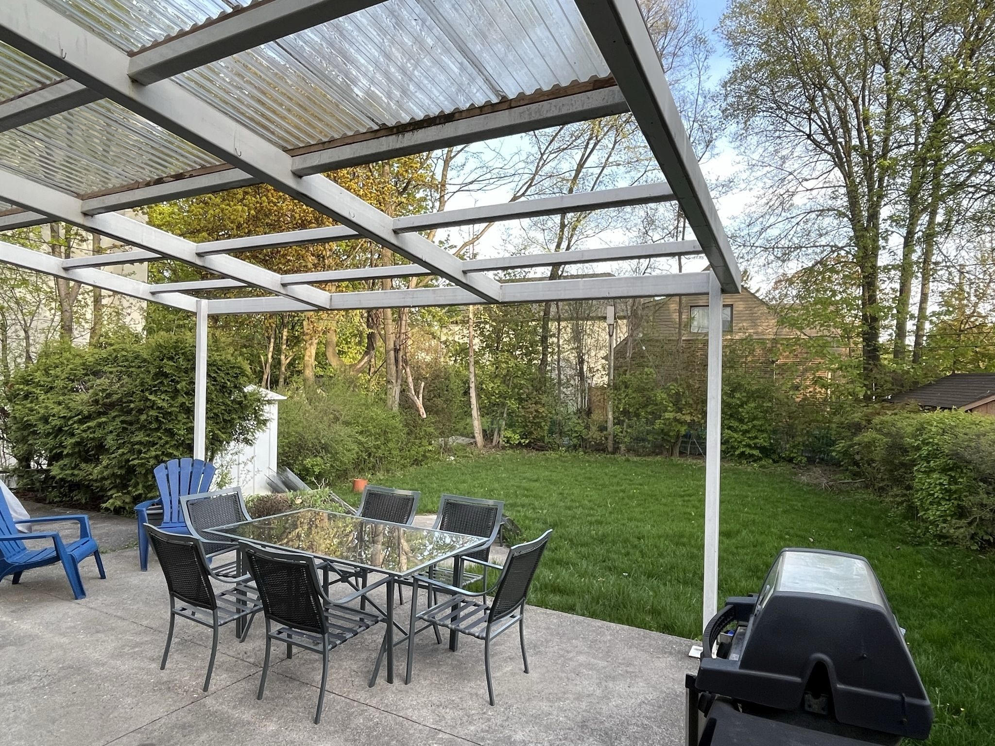 • Enjoy the outdoor garden and two-tiered patio with pergola.