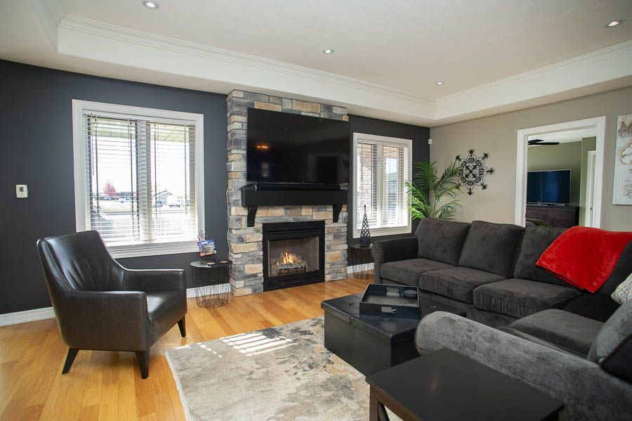 Welcome to this beautifully updated 3+1 bedroom, 3-bathroom bungalow, where timeless design meets modern luxury. Every detail of this custom built home has been carefully curated to create an inviting space that blends comfort, sophistication, and effortless living. Inside, discover heated floors in many areas, freshly painted interiors, and a spacious open-concept layout anchored by a stunning stone gas fireplace. The renovated kitchen features custom cabinetry, leathered granite countertops, and stainless-steel appliances, opening to a bright dining area with access to the composite deck and stone patio - a fully fenced and serene outdoor retreat surrounded by beautifully landscaping and easy to maintain grounds. The main level includes three bedrooms and two full baths, highlighted by a beautiful primary suite with walk-in closet and 4-piece ensuite. The finished lower level adds exceptional living space with a large recreation room, fourth bedroom, modern 4-piece bath, and heated floors throughout. Thoughtful upgrades provide peace of mind and comfort year-round - including a 12 kw natural gas generator, reverse osmosis water system, 4,000-gallon cistern, owned on-demand hot water, central vac, and an oversized double garage (22x24)with hot/cold water and sink. This is a home that truly stands apart - offering luxury, efficiency, and quality craftsmanship in a quiet, upscale court location just minutes from hagersville, simcoe, port dover, and lake erie. Executive living with small-town charm - welcome home to 9 davey court.