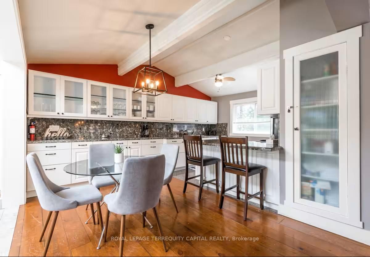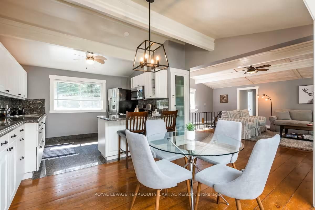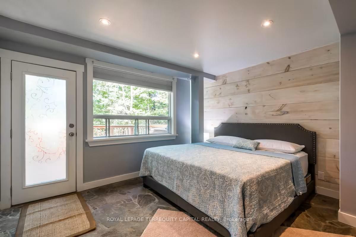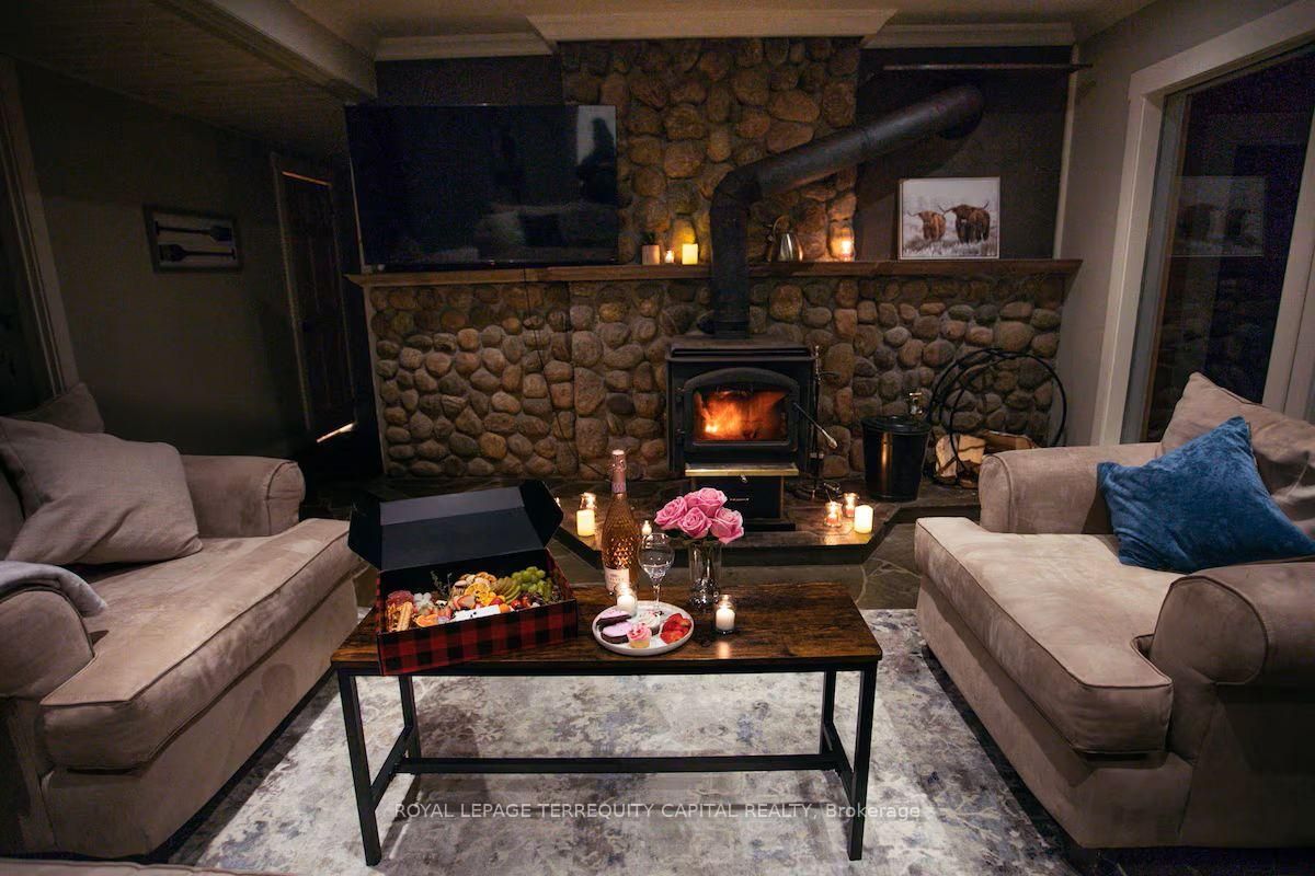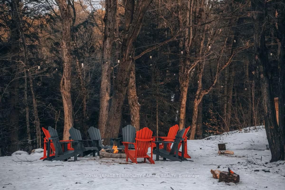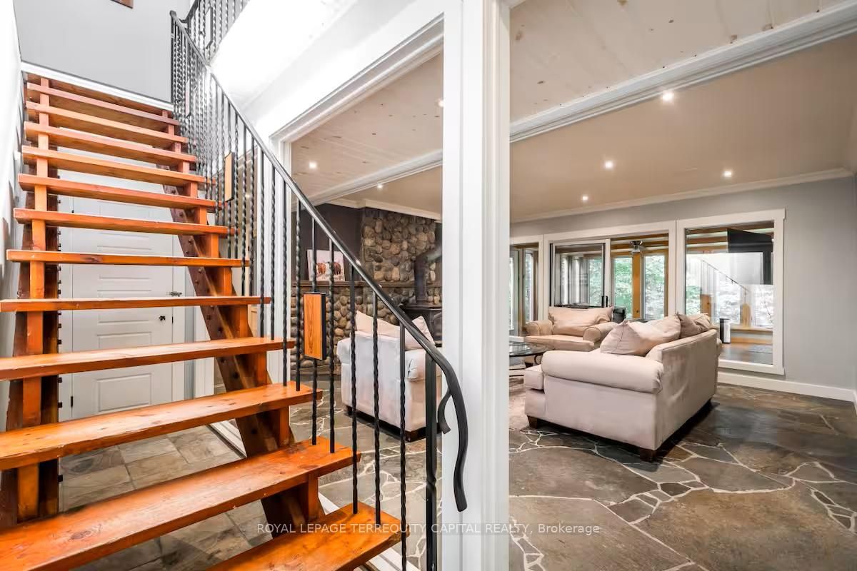 Perfect year-round family retreat in this stunning 4-bedroom, 3-bathroom home designed for comfort and relaxation. The open-concept main floor features a bright living and dining area with stunning views surrounding forest, office, spacious kitchen, and a serene primary suite with ensuite washroom. The finished lower level offers granite stone floors, a large family room, and three additional bedrooms-ideal for entertaining in any season. Enjoy the muskoka room, expansive deck, and the beauty of nature all around. With a double-car garage and bonus living space above, there's plenty of room for guests. Enjoy hot tub on lower deck, fire pit and wood burning sauna! 3 season large sunroom, bunkie over the garage! Don't miss this exceptional all-season getaway!