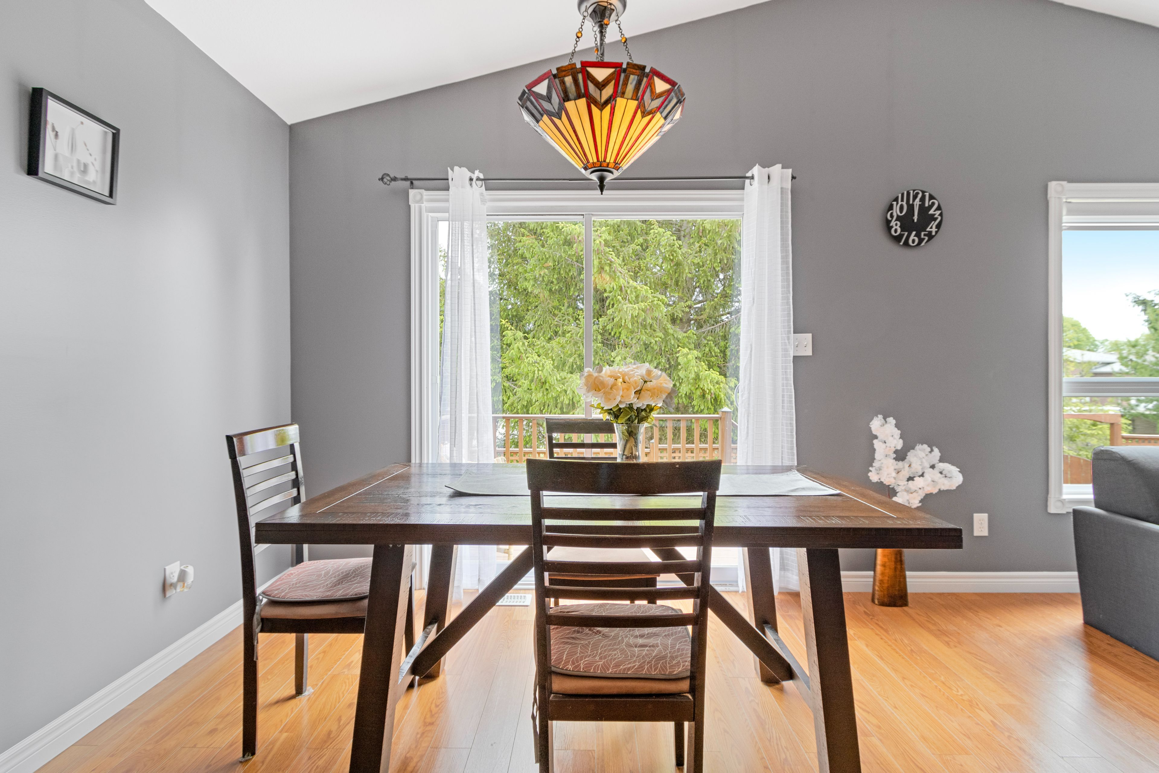 All in love with this beautiful freehold raised bungalow featuring 3 bedrooms and 2 full bathrooms. Bright and spacious over 2100sqf of fully finished living space. Located in a quiet, private, and tree-lined enclave of semi-detached homes, close to all amenities. Step into a warm, inviting foyer with tall ceilings, leading to a stunning open-concept main floor with expansive cathedral ceiling and pot lights. The large living room, kitchen perfect for preparing family meals, and dining area flow beautifully together, with a walkout to a deck, patio and landscaped backyard ideal for entertaining or relaxing. The primary bedroom offers privacy, featuring two large windows and a bright walk-in closet with a window. A second spacious bedroom adds to the comfort and convenience of the main floor. The fully finished basement provides even more living space, complete with a huge recreation room, a versatile den or office, plus one large additional bedroom, and a full bathroom perfect for growing families or multigenerational living. The garage offers front and rear access doors adding practicality and value to this already impressive home. Value, space, and convenience are found in every corner. The common association monthly fee is only $65 for roads maintenance, snow and garbage removal (not condo fees). Don't miss your chance to own this move-in ready gem in one of chatham's most desirable neighborhoods. 3 pictures are digitally staged to show the room potential. Book your showing today!
