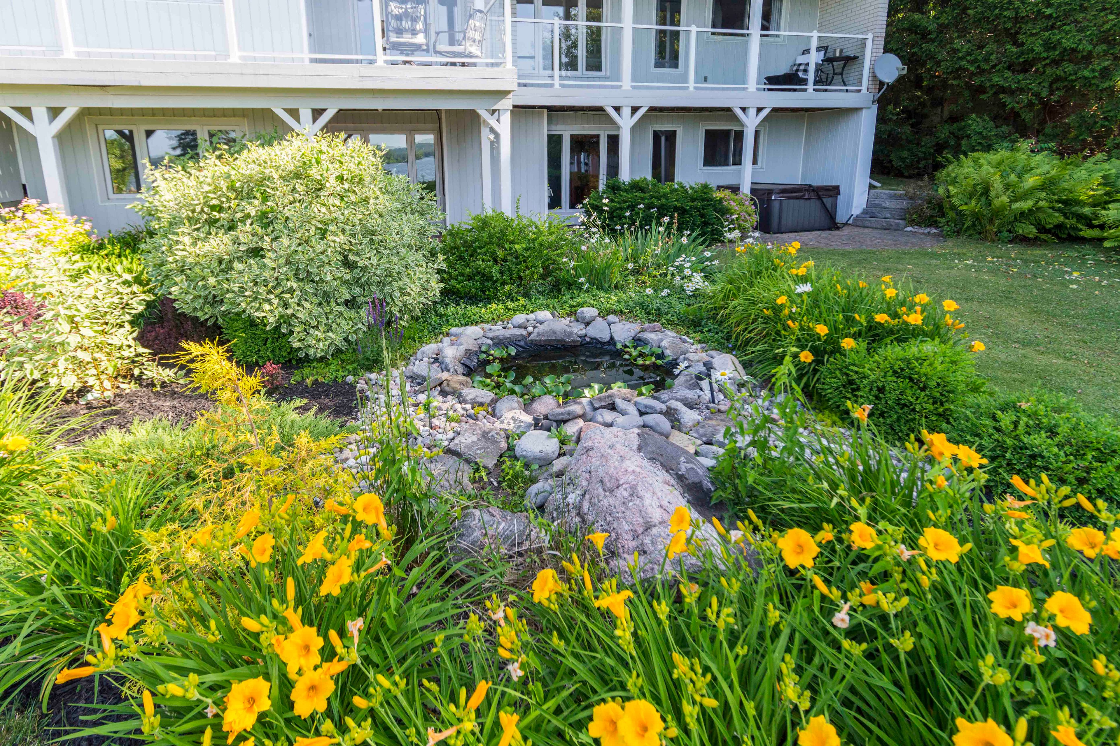 • Large lot with hot tub, garage, and quick access to a marina.