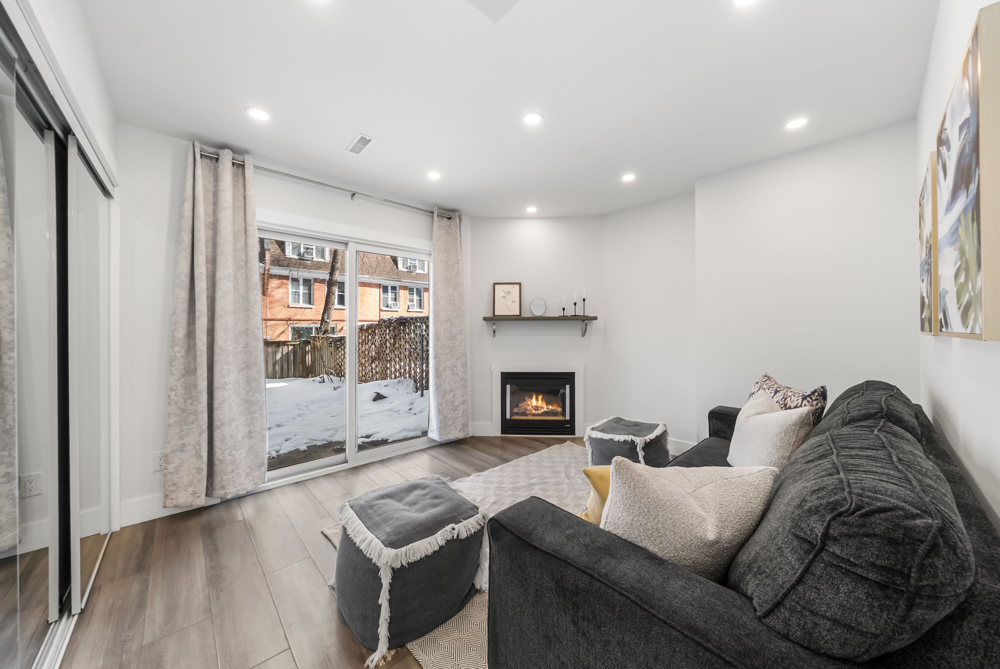 Step into opportunity at 9 douville crt! Beautifully renovated 3+1 bedroom, 2 bathroom freehold townhome with 3-storeys of above grade living space and garage parking located in trendy old toronto! From dinner parties to game nights, entertain with ease with the open concept main floor. The character filled living and dining rooms showcase gleaming hardwood floors, crown moulding, a large bay window and stone feature wall with gas fireplace. The modern gourmet kitchen inspires your inner chef with full sized stainless steel appliances, quartz counters, ample storage, coffee nook and a convenient appliance bar! Three well-appointed bedrooms including a primary bedroom with built-in closet organizers. Modern and updated 4-piece bathroom with new vanity (2026) and spa-inspired shower and soaker tub! The ground level is the perfect space for a home office, guest bedroom, playroom or family room with gas fireplace, wood floors, pot lights, and a powder room. Walk-out to the fully-fenced backyard oasis with flagstone patio and walkway, deck seating area (2025), and bright garden space. Fresh groceries from your 5 minutes walk to st lawrence market, explore neighbourhood coffee shops, embrace the historic distillery district, stroll to the lake for weeknight gelato or weekend days at sugar beach! Quick access to ttc, gardiner, dvp, and future go station stop.