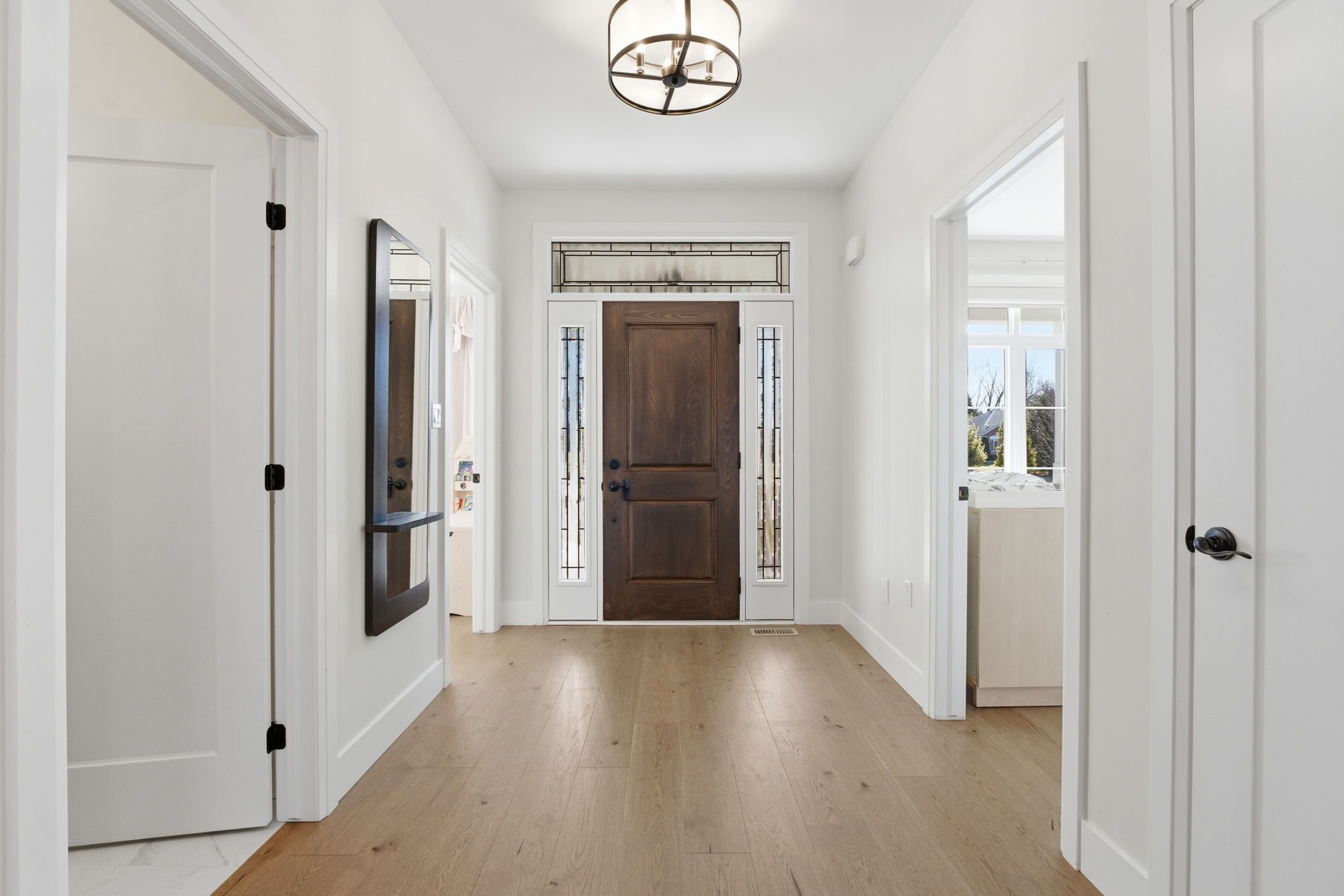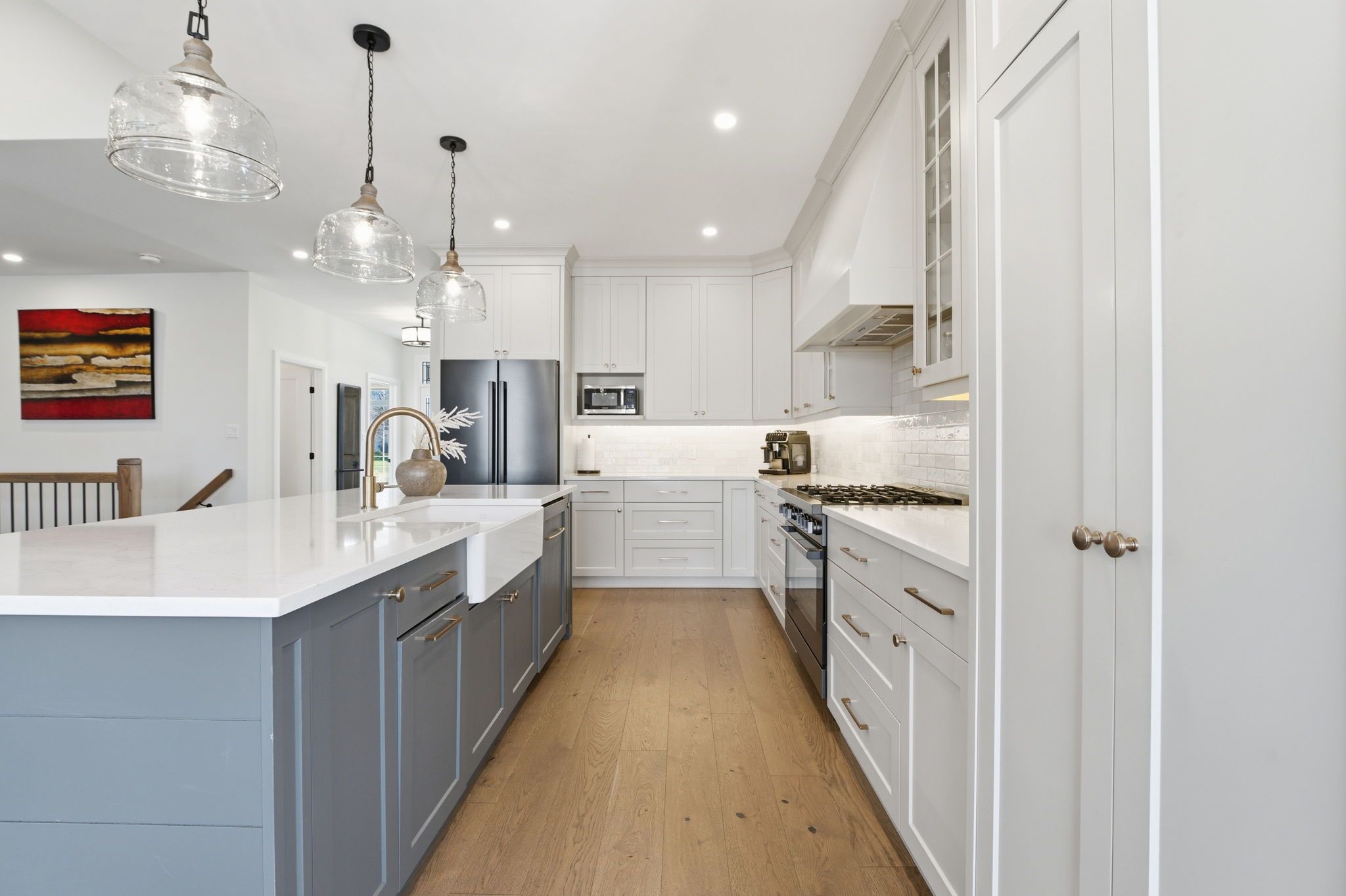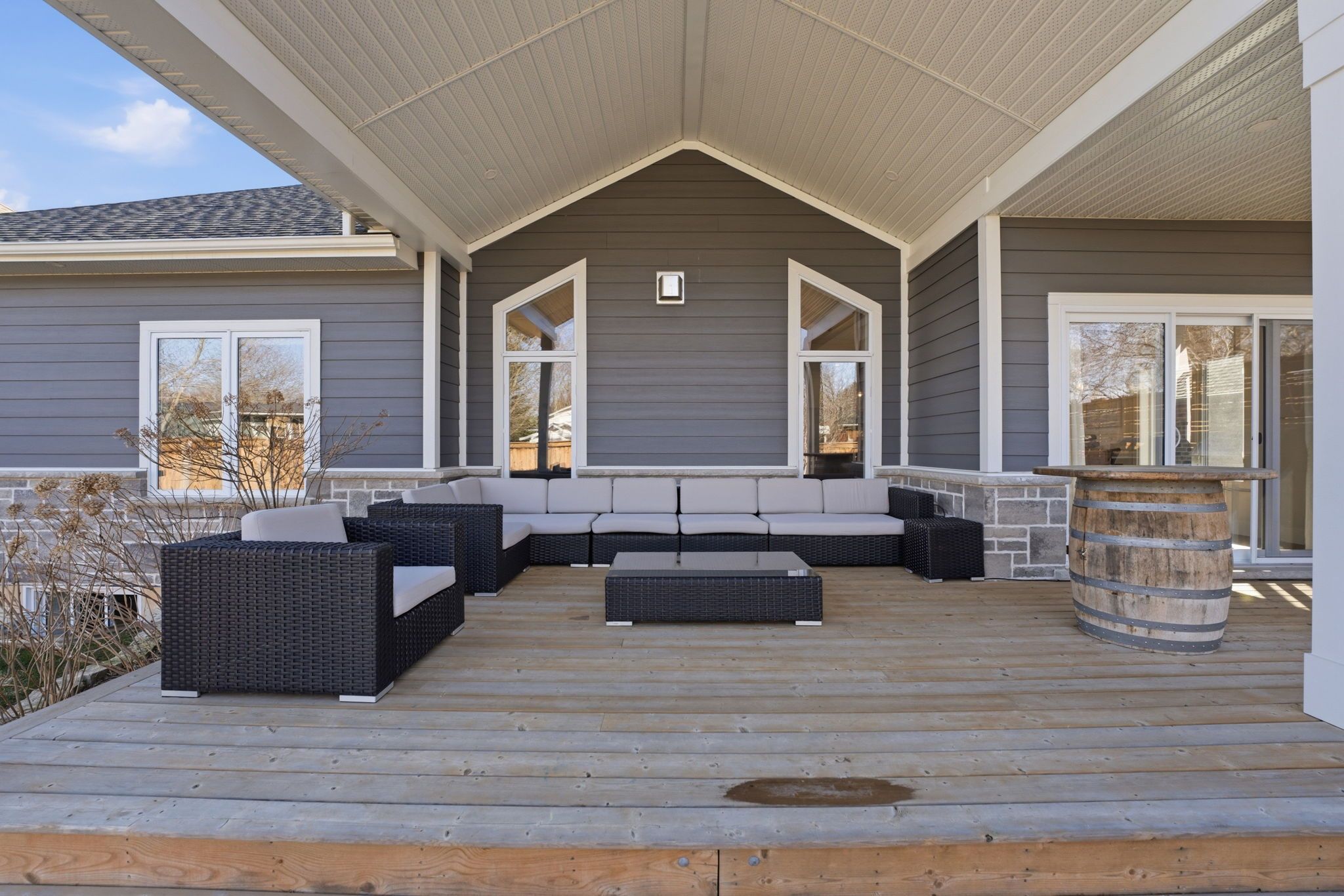 Welcome to 9 east n in charming port dover! Built in 2021, this stunning custom home offers nearly 1,900 sq ft of beautifully designed living space on the main level, plus a fully finished basement ideal for extended family or entertaining. The lower level features a second kitchen, additional bedroom, full bathroom, and spacious rec room. Inside, you'll find hardwood floors throughout and a show-stopping custom kitchen with a massive island that flows into a breathtaking great room. The space is highlighted by a cathedral ceiling, decorative wood beams, and a dramatic floor-to-ceiling fireplace. The main level offers three generous bedrooms and two full bathrooms, including a beautiful principal suite with a spa-like ensuite and a large walk-in closet with built-ins. A spacious laundry/mudroom connects to the oversized garage for everyday convenience. Step outside to enjoy a multi-tier covered deck overlooking the backyard-perfect for relaxing or entertaining. Situated on a quiet street within walking distance to a catholic elementary school and grocery shopping, this home combines comfort, style, and location. Finished with timeless stone and james hardie siding, it's truly beautiful inside and out.