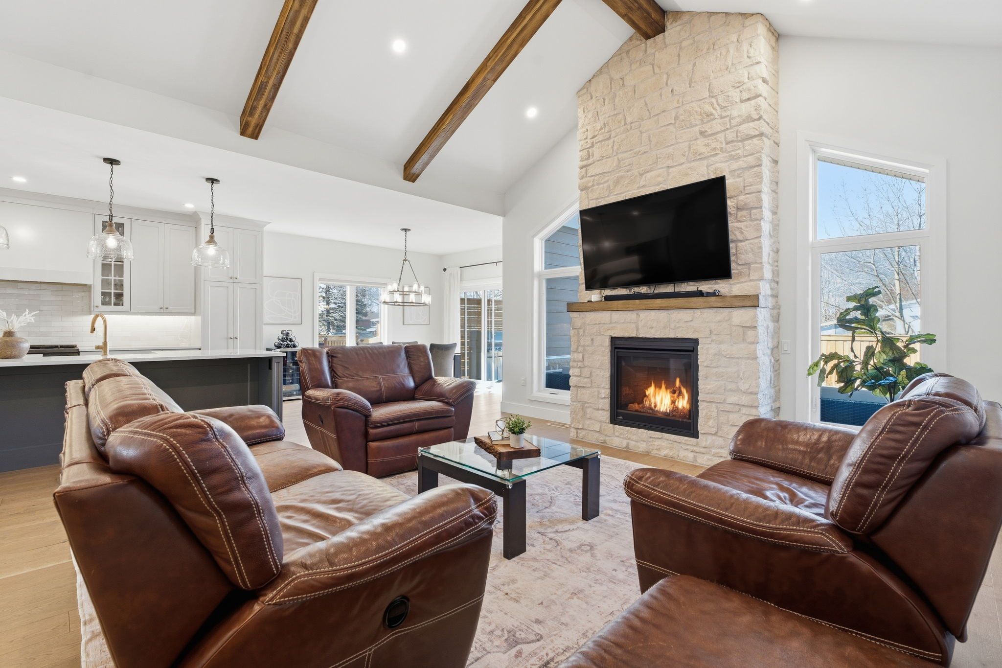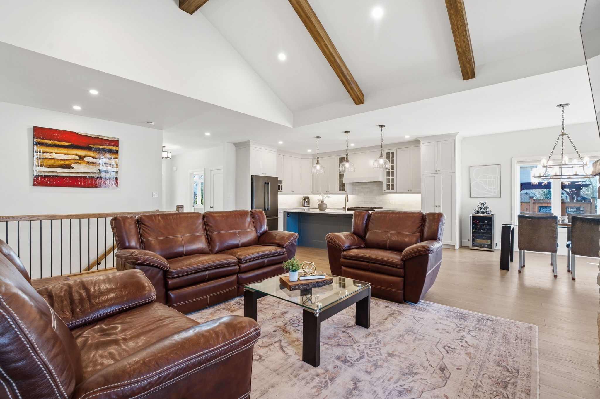 • Main level boasts a custom kitchen and great room with cathedral ceiling.