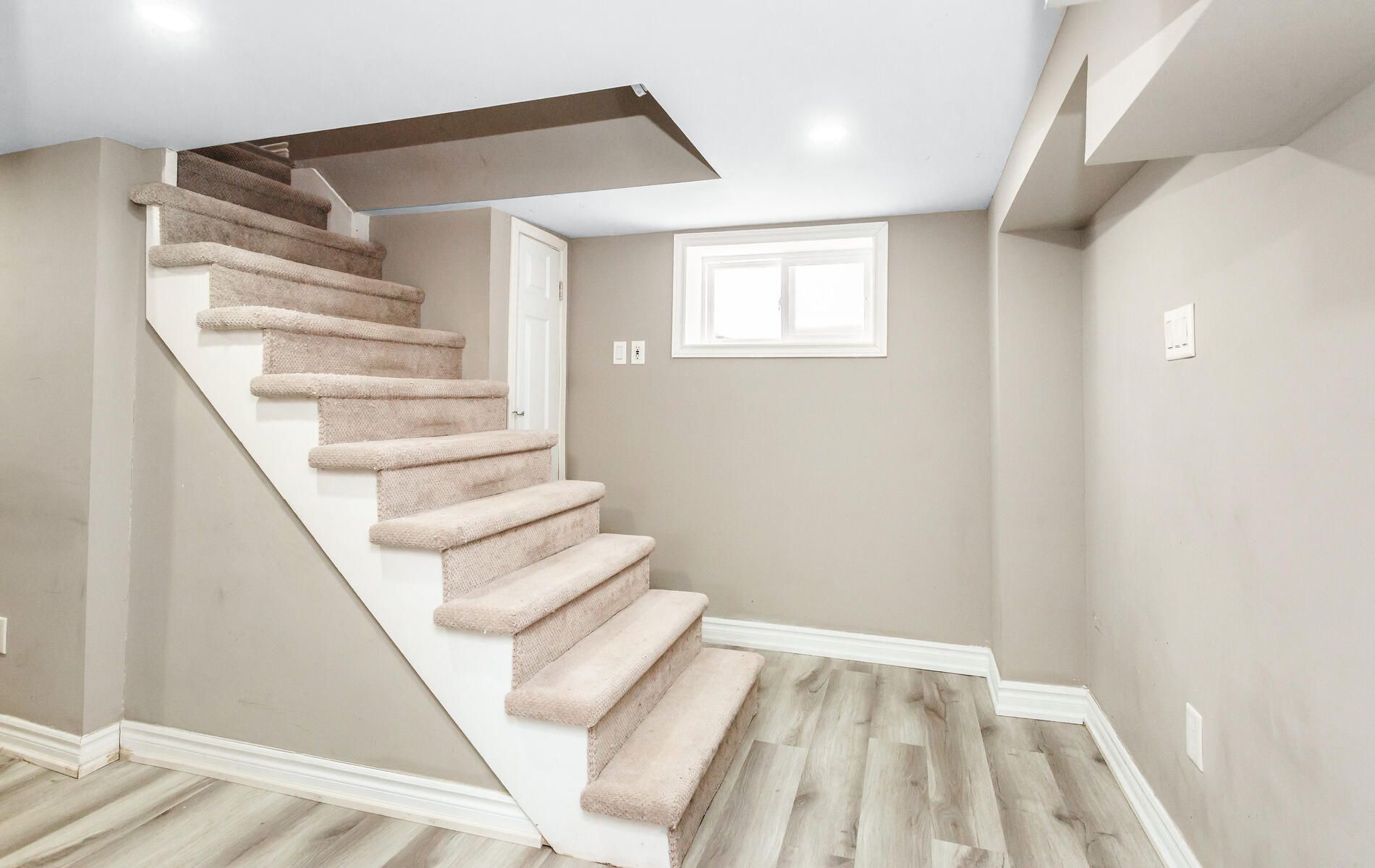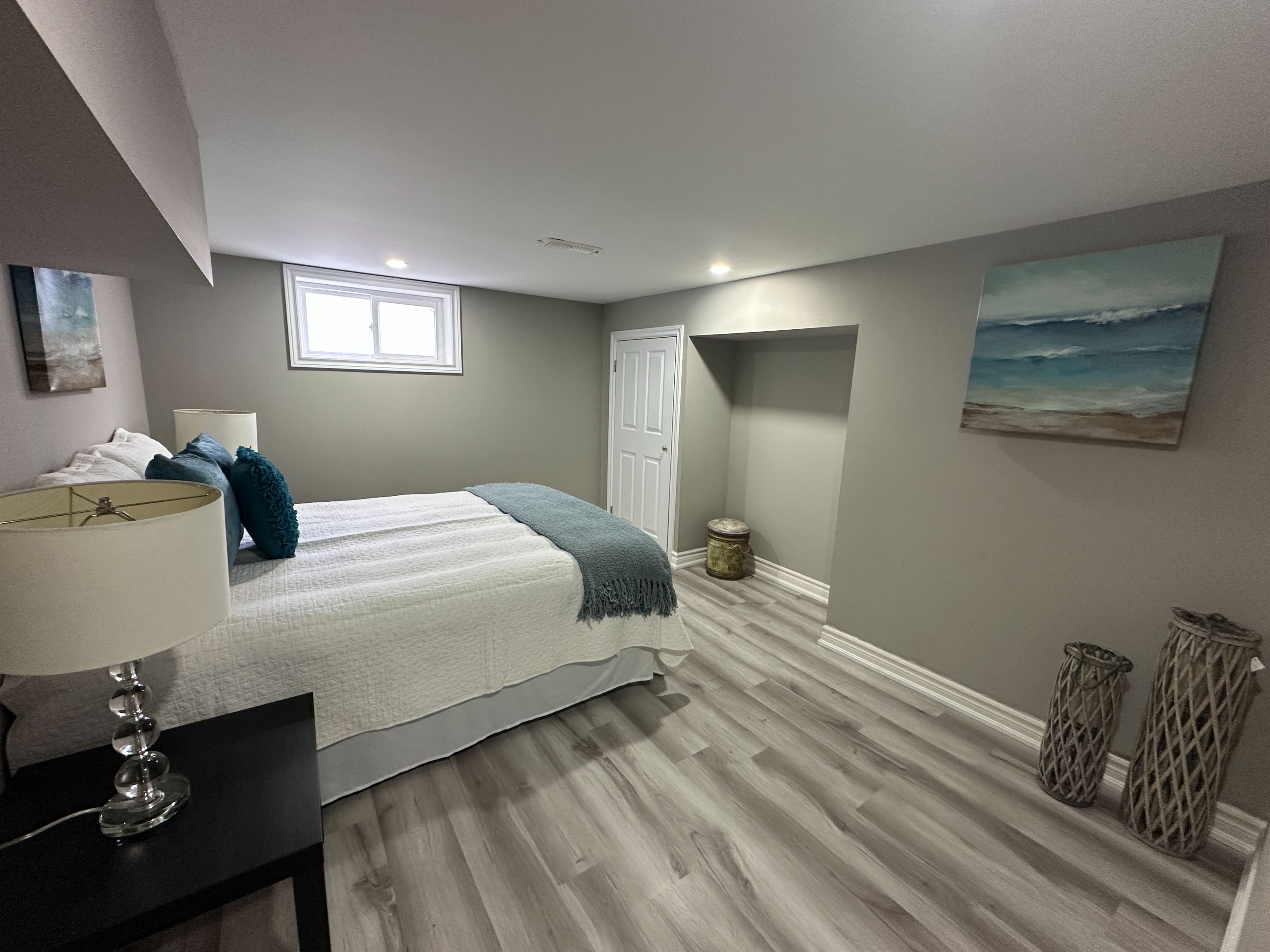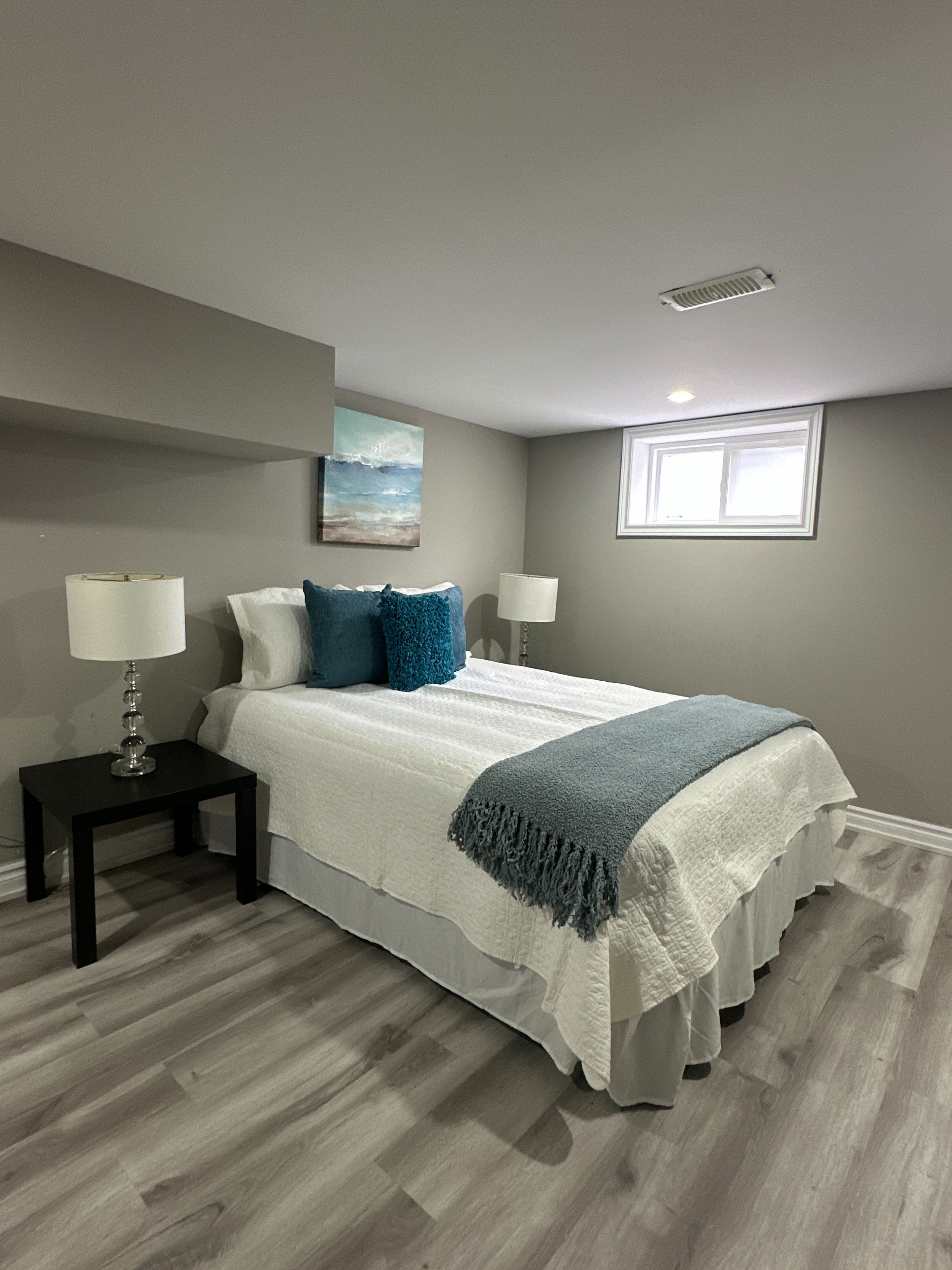 • Finished basement includes a rec room, extra bedroom, and storage.