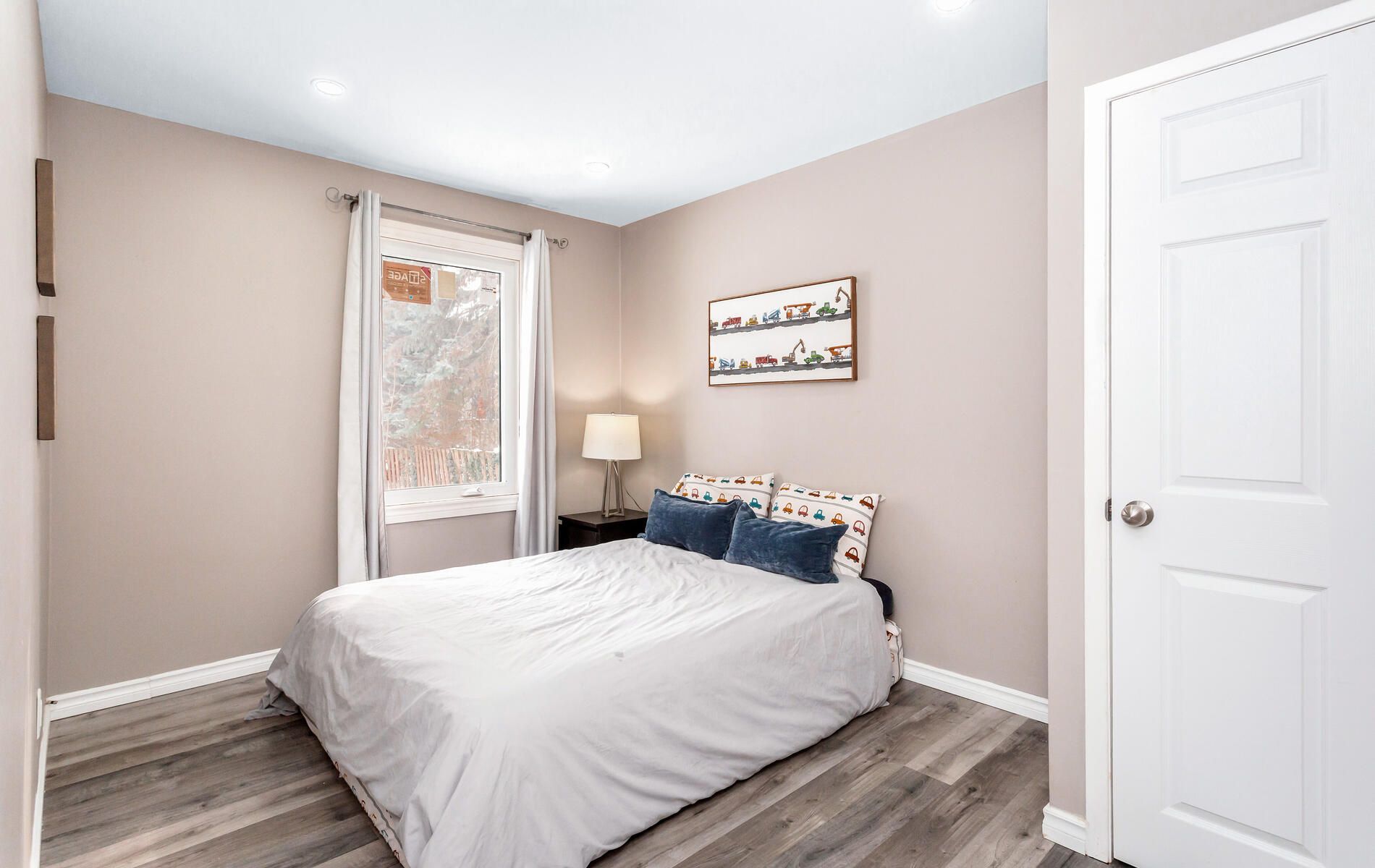 Small-town charm with big-city convenience-all right at your doorstep. This perfectly located 3-bedroom bungalow offers style, comfort, and unbeatable walkability. Larger than it appears, the home features modern finishes throughout, incl grey laminate flooring, pot lights, and a bright, updated kitchen w/ neutral white cabinetry, quartz countertops, s/s appliances, a sleek backsplash, and convenient walk-out access to the side yard. The sun-filled living room is warm and cozy with access to an inviting front porch. Three well-sized bedrooms complete the main floor, including a primary bedroom with two sliding doors that open to the rear deck. An updated 3-pc bathroom finishes the level. The finished bsmt adds valuable additional living space with a bedroom (currently used as an office), a rec room, a 4-pc bathroom, laundry, and plenty of storage-perfect for families, guests, or working from home. Outside, enjoy a large private backyard-ideal for summer bbqs, gardening, and entertaining. Short walk to downtown georgetown, known for its welcoming shops, cafés, and summer farmers' markets. Just mins to georgetown go - ideal for commuters. Close to schools, parks, library, hospital, recreation centres, and places of worship.