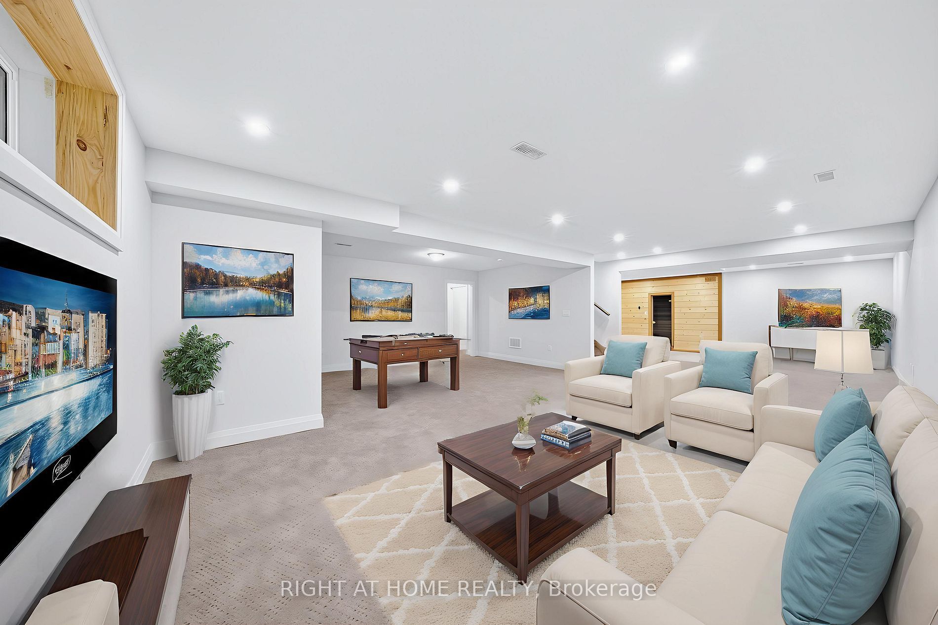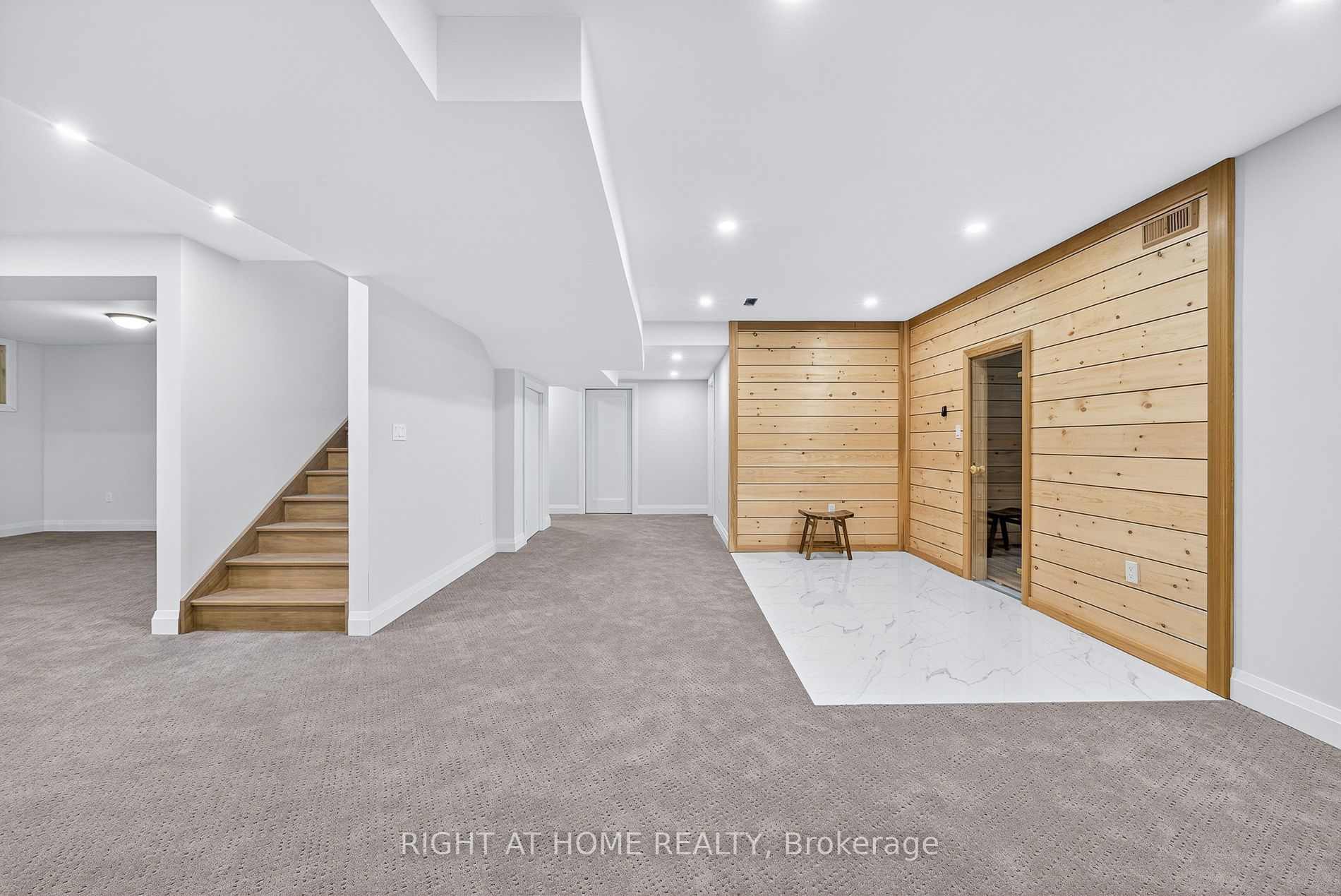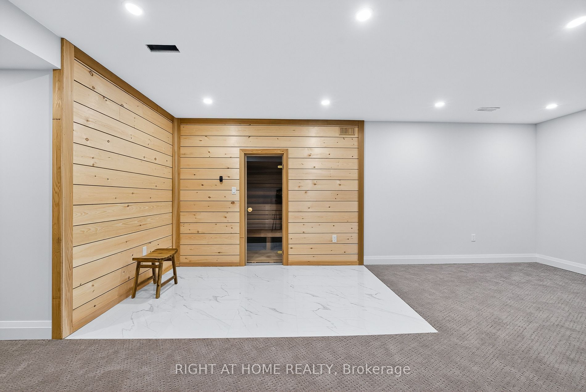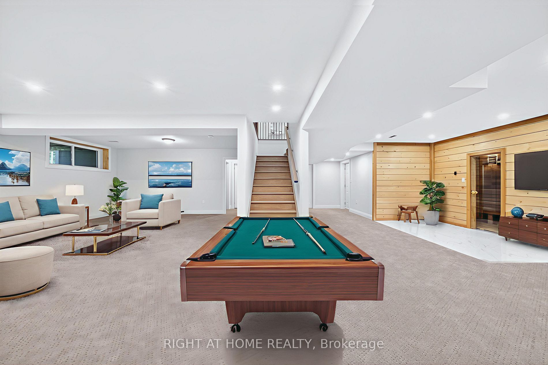 • Fully finished basement includes sauna, recreation area, and additional bedroom.