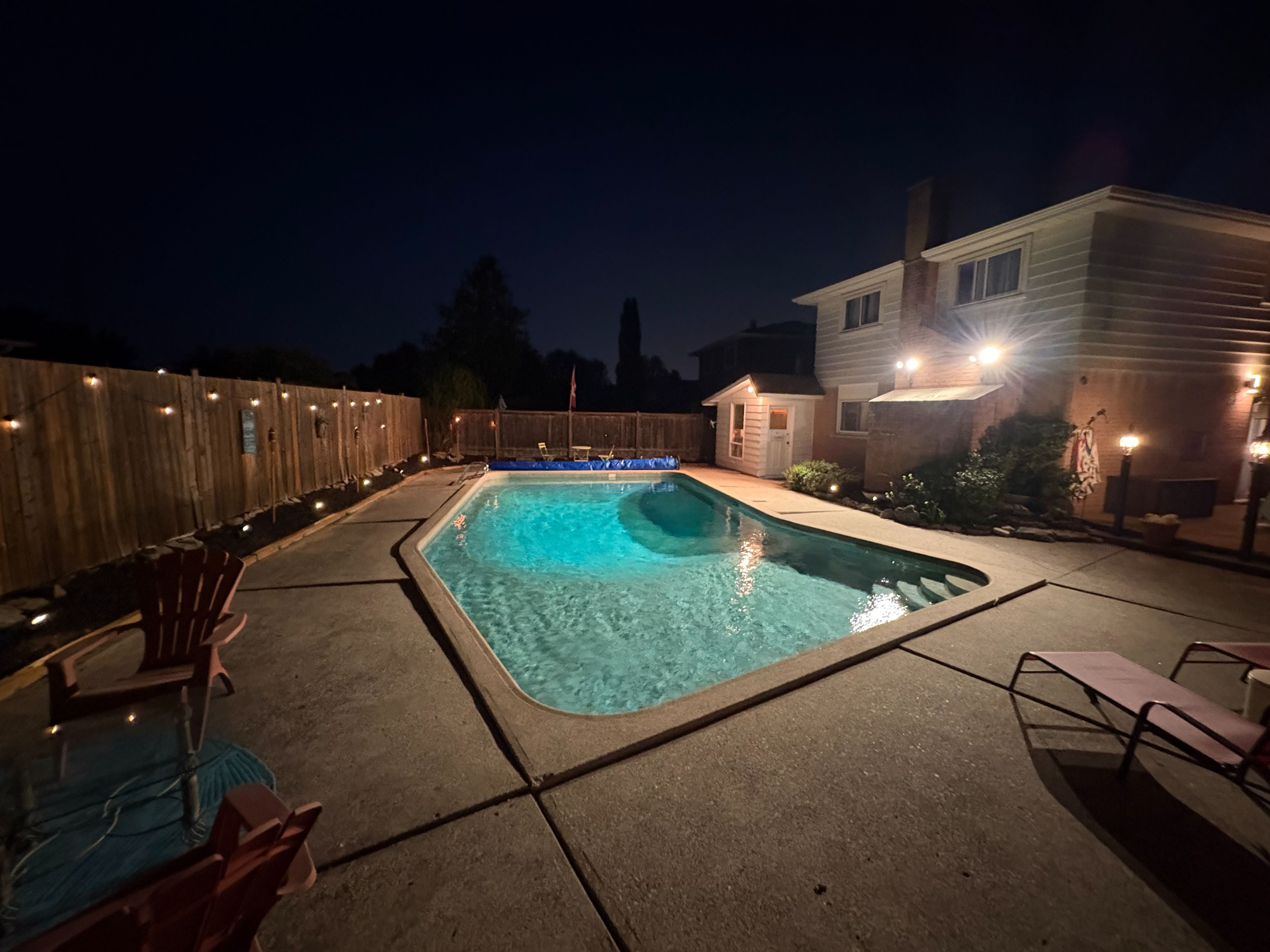 • Private backyard oasis with inground gas heated pool and large cabana.