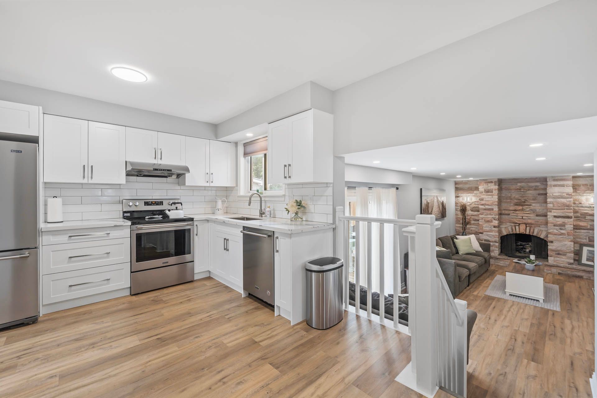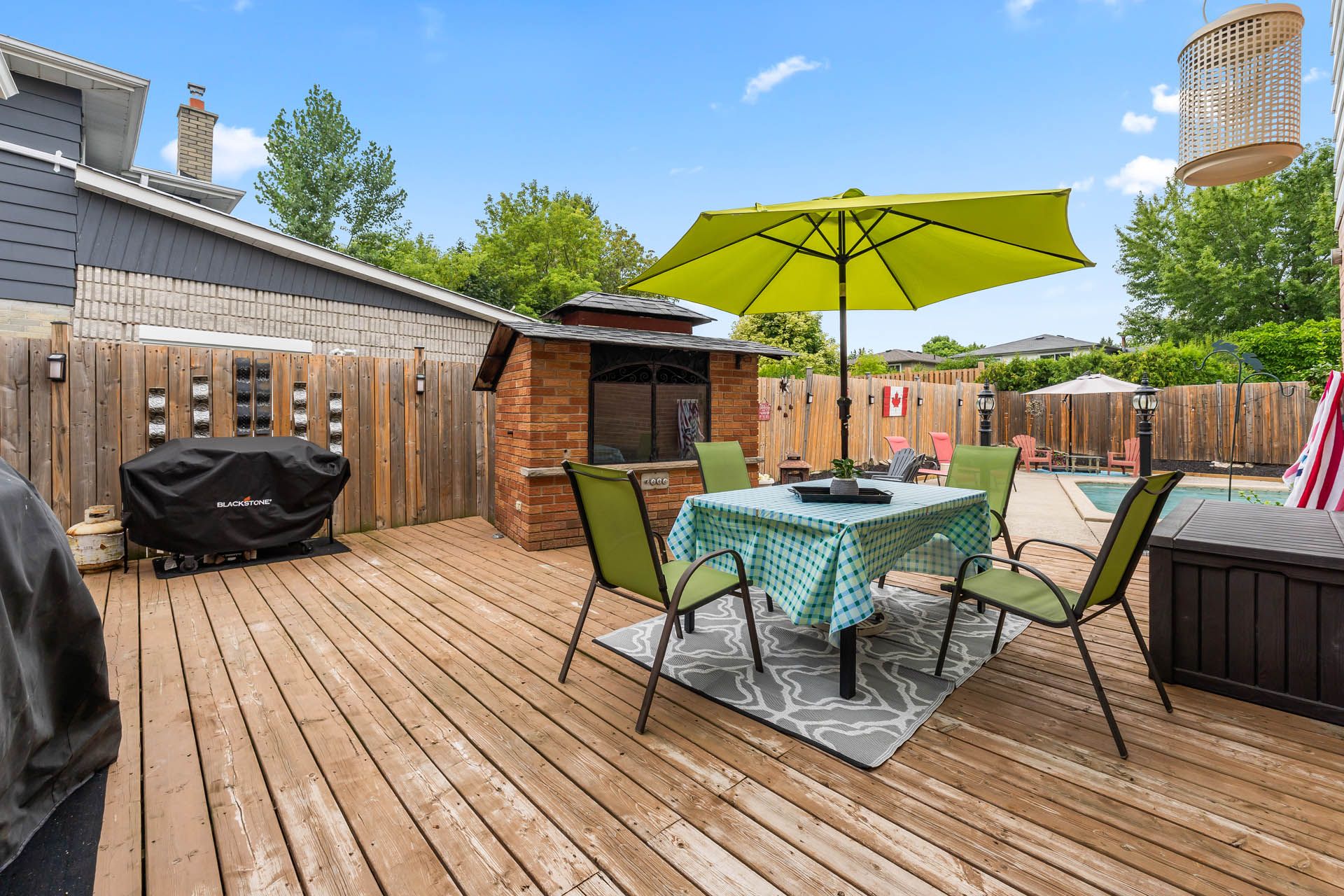 Welcome to 9 faludon drive, a stunning 'country squire' 5 level backsplit, in the family-friendly delrex neighbourhood conveniently located right in the heart of georgetown. This beautifully maintained and extensively renovated 4 bedroom, 2 full bath home is completely move-in-ready, featuring a stunning new custom kitchen, and large living dining space, perfect for entertaining. The upper level offers 3 generously sized bedrooms, and a newly renovated 5 piece bathroom. Downstairs, the lower level features a spacious family room with with a stunning stone fireplace with gas log set, a brand new 3 piece bathroom with shower, and an additional bedroom. Step outside to the amazing & private back yard oasis with inground gas heated pool, large deck, 20x40 foot cabana with washroom facilities, and custom brick bbq (gas). This home is located close to schools, hungry hollow trails and paths, georgetown shopping mall, downtown georgetown farmer's market, grocery stores, hospital, rec. Centres and more. New furnace & a/c, gutters 2025, lower-level bathroom 2025, new garage door, garage door opener 2024.
