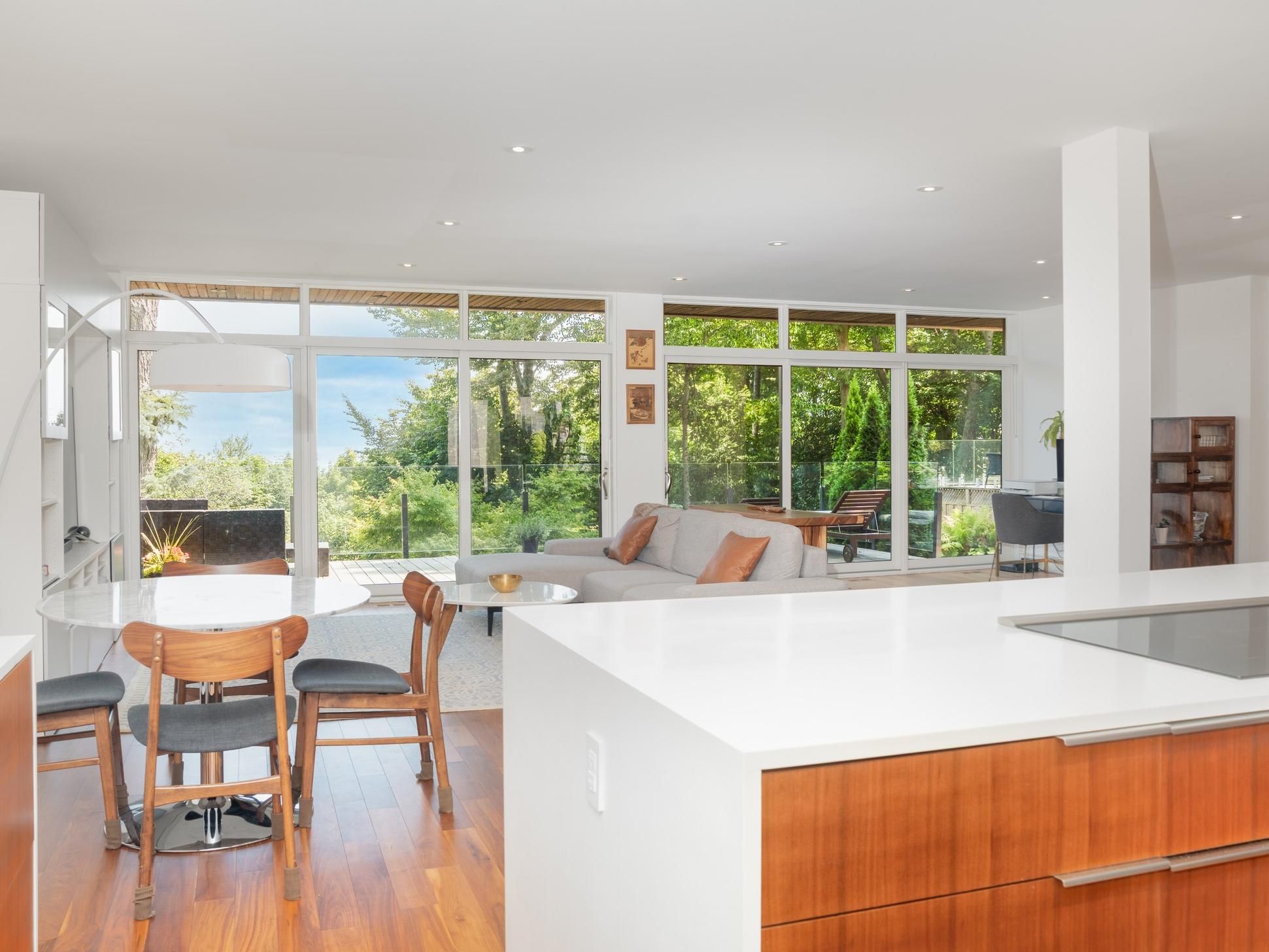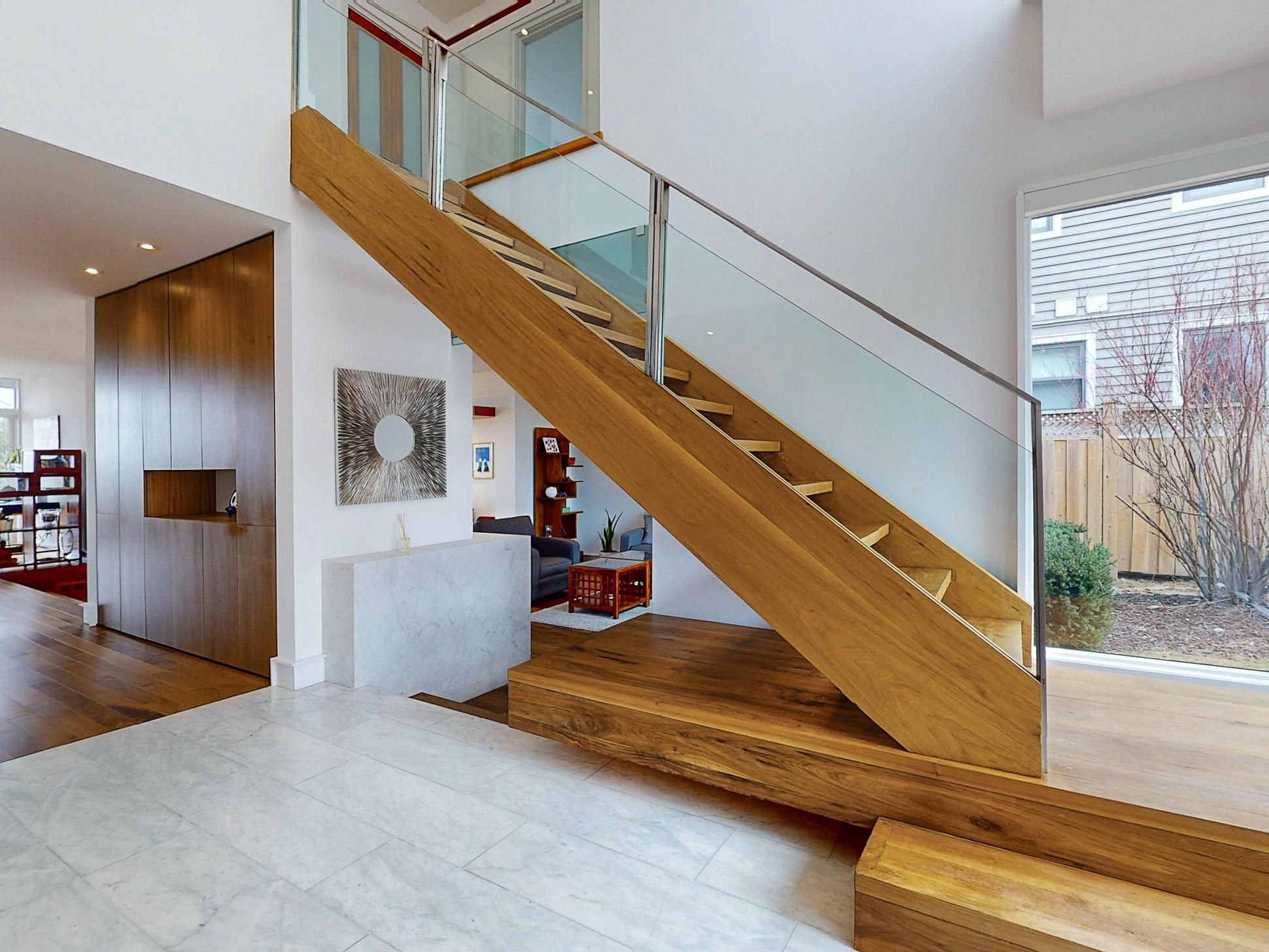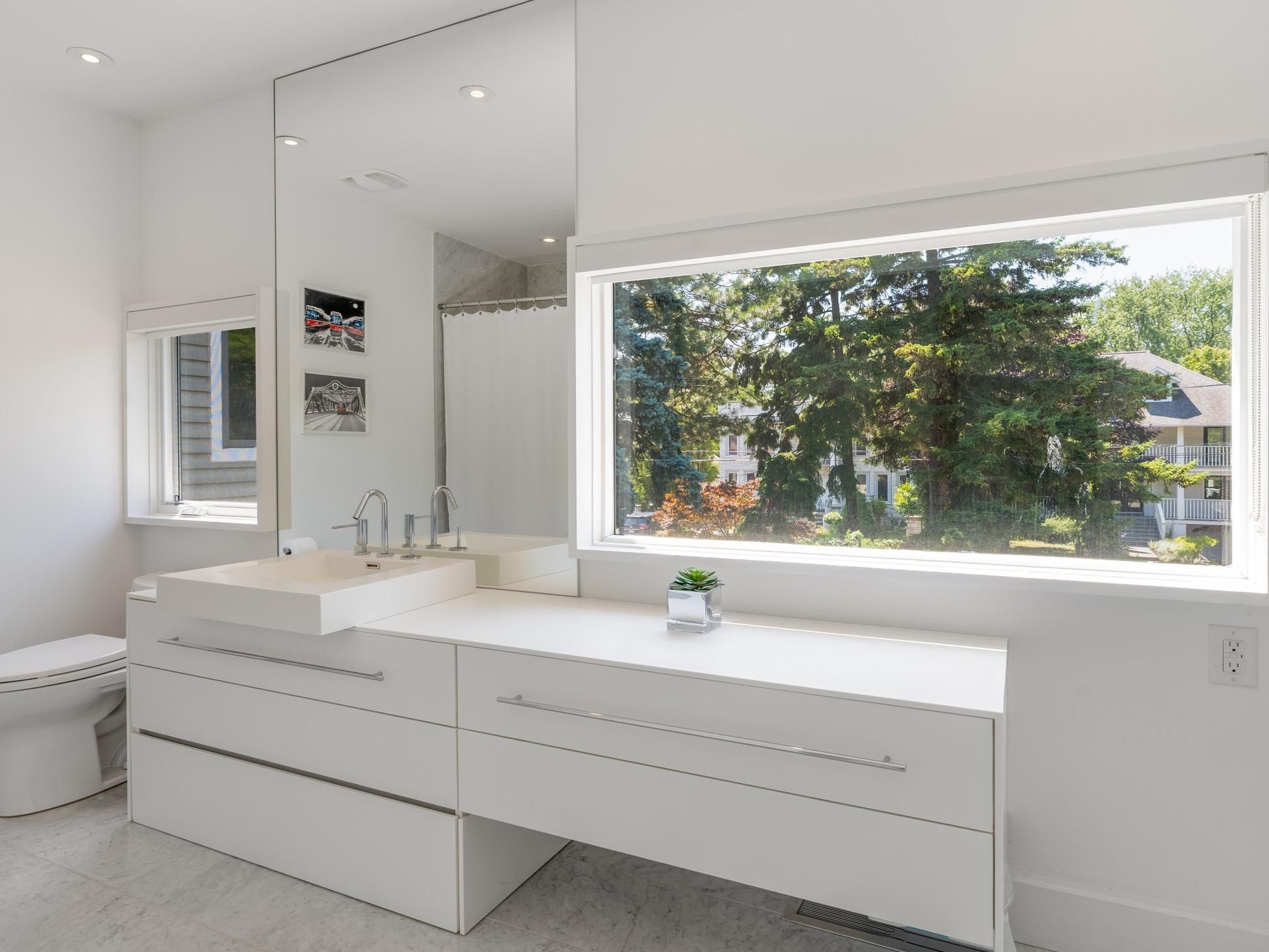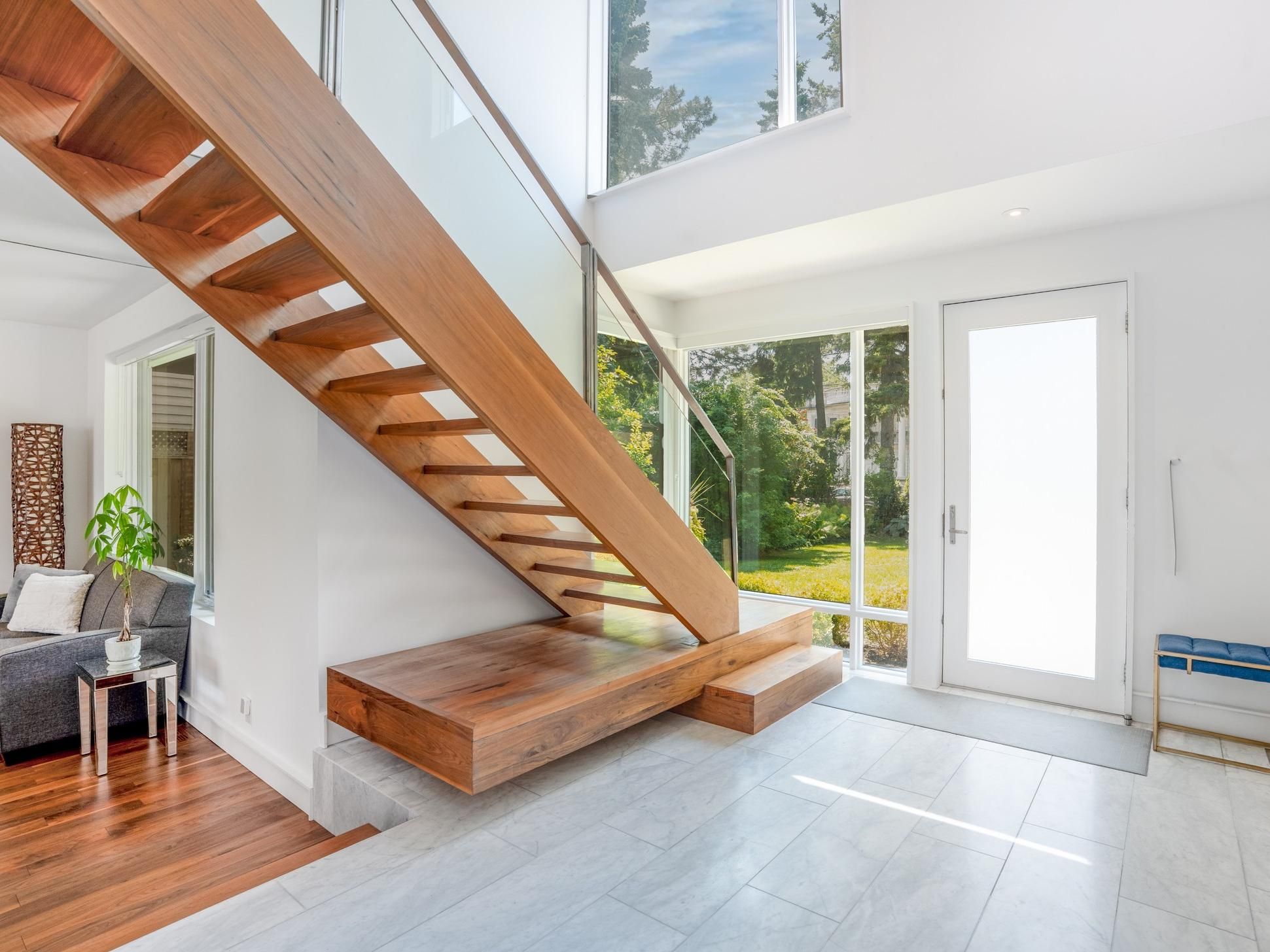 Discover this exceptional lake-view residence, where contemporary design meets serene natural beauty. This stunning home features a sleek open-concept layout, accented by expansive windows and multiple walkouts, showcasing unobstructed views of lake ontario and lush conservation land. From the moment you step into the grand foyer with soaring 18. 5-foot ceilings, a statement chandelier, oversized marble slab flooring, a two-storey window, and a custom walnut guest closet you'll be captivated by the sophisticated details throughout. The main level is an entertainers dream, offering a seamless flow between the spacious living, dining, and family rooms, all adorned with pot lights and rich walnut flooring. The chef-inspired kitchen is the heart of the home, boasting a dramatic waterfall island with stone countertops, seating for four, and custom pull-out organizers. This space opens directly to multiple outdoor entertaining decks, perfect for hosting or relaxing while enjoying panoramic views. Ascend the striking open-riser walnut staircase, framed with glass railings and stainless steel handrails, to find a luxurious primary retreat. The serene primary suite offers a private sanctuary, complete with its own balcony, window wall with lake views, a custom dressing room with skylight and extensive cabinetry, and a spa-like ensuite featuring heated floors and serene conservation views. The fully finished walk-out lower level adds even more space to unwind, with a large recreation room featuring heated floors and direct access to the beautifully landscaped rear grounds. Enjoy quiet evenings around the firepit or take advantage of the convenient access to the upper decks, seamlessly connecting indoor and outdoor living. This exceptional property offers the rare combination of modern luxury, privacy, and spectacular natural surroundings perfect for those who love to entertain or simply soak in the beauty of the outdoors. Video and audio may be on during viewings.