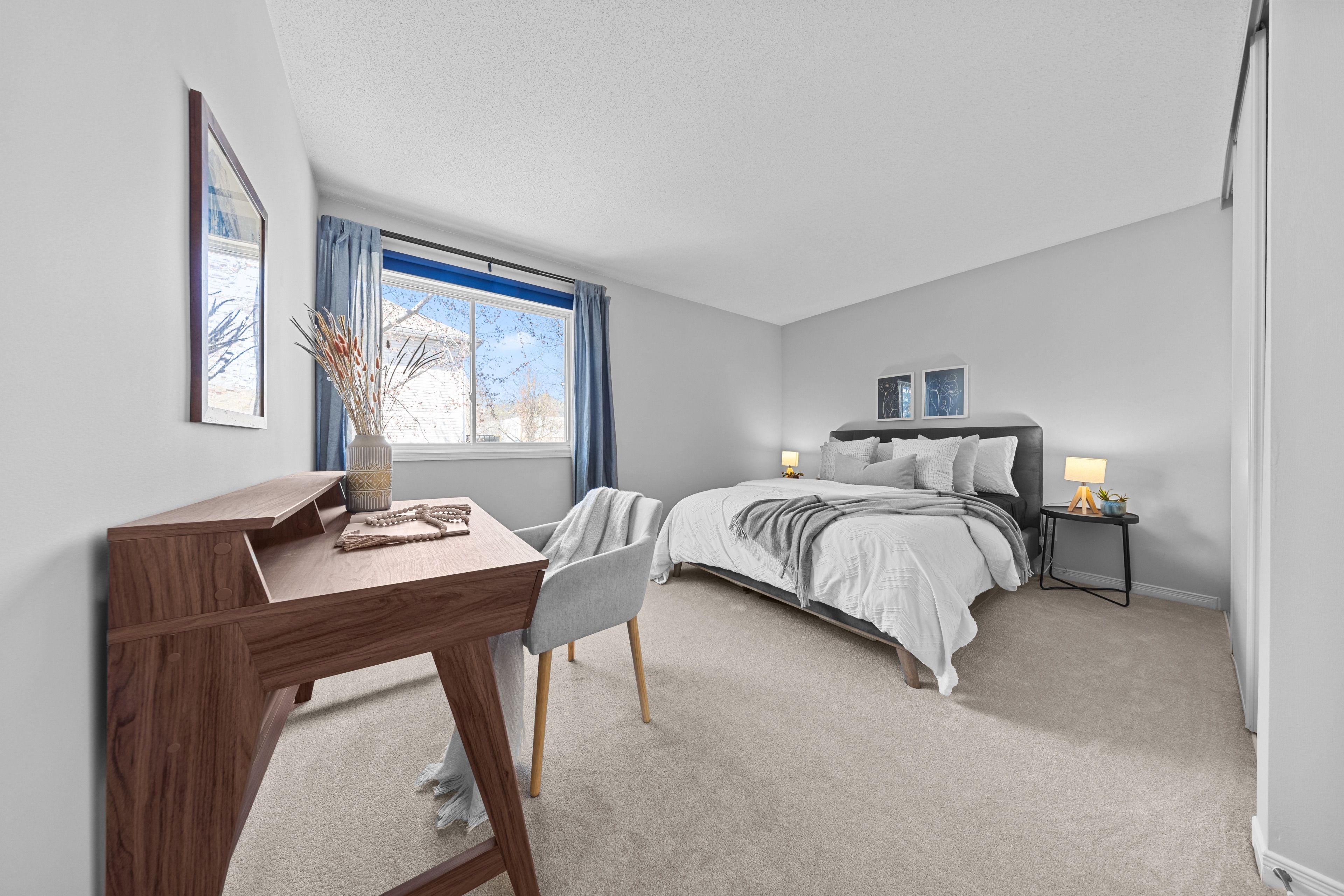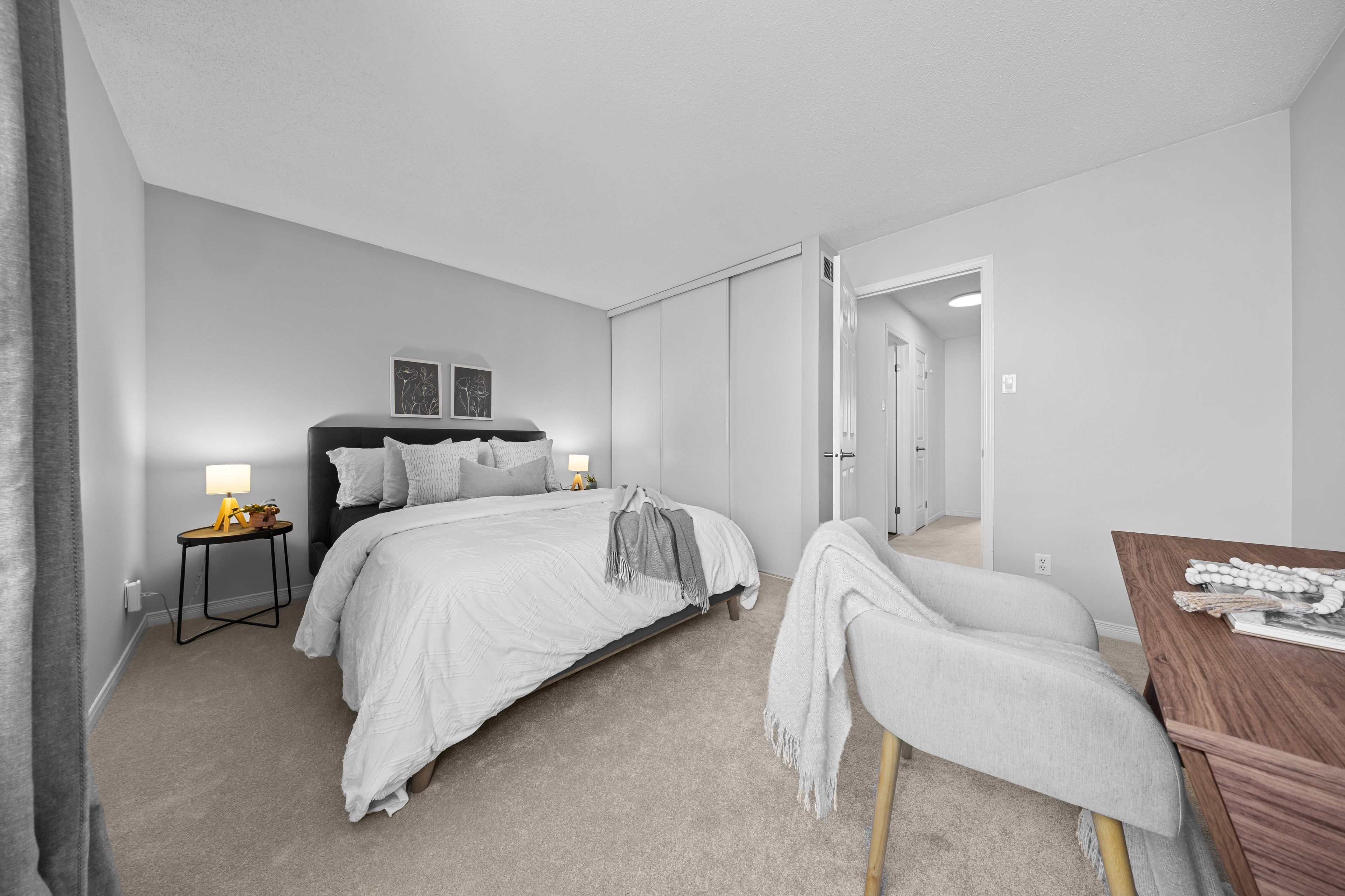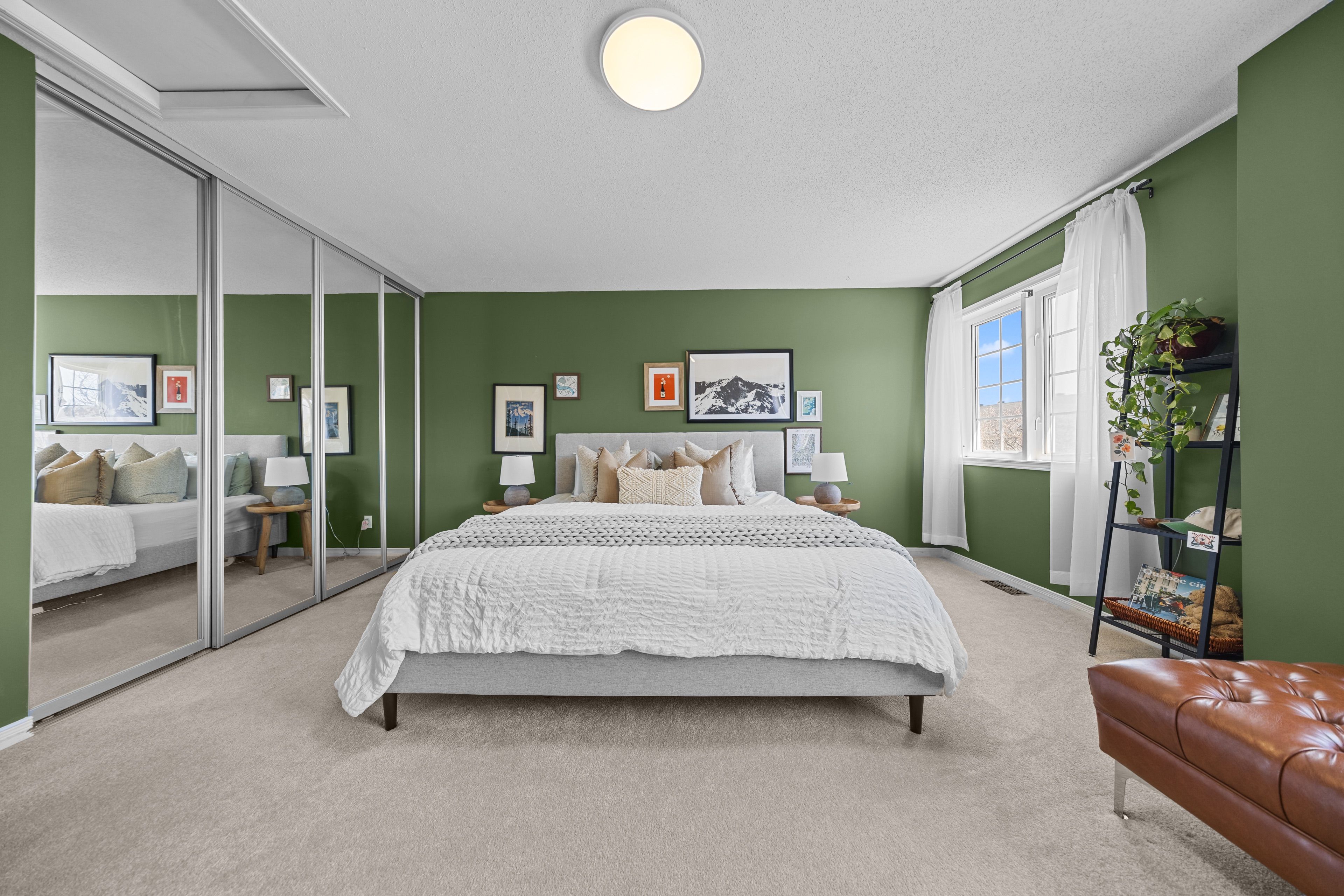 • Spacious primary bedroom with a massive walk-in closet and king-sized bed fit.
