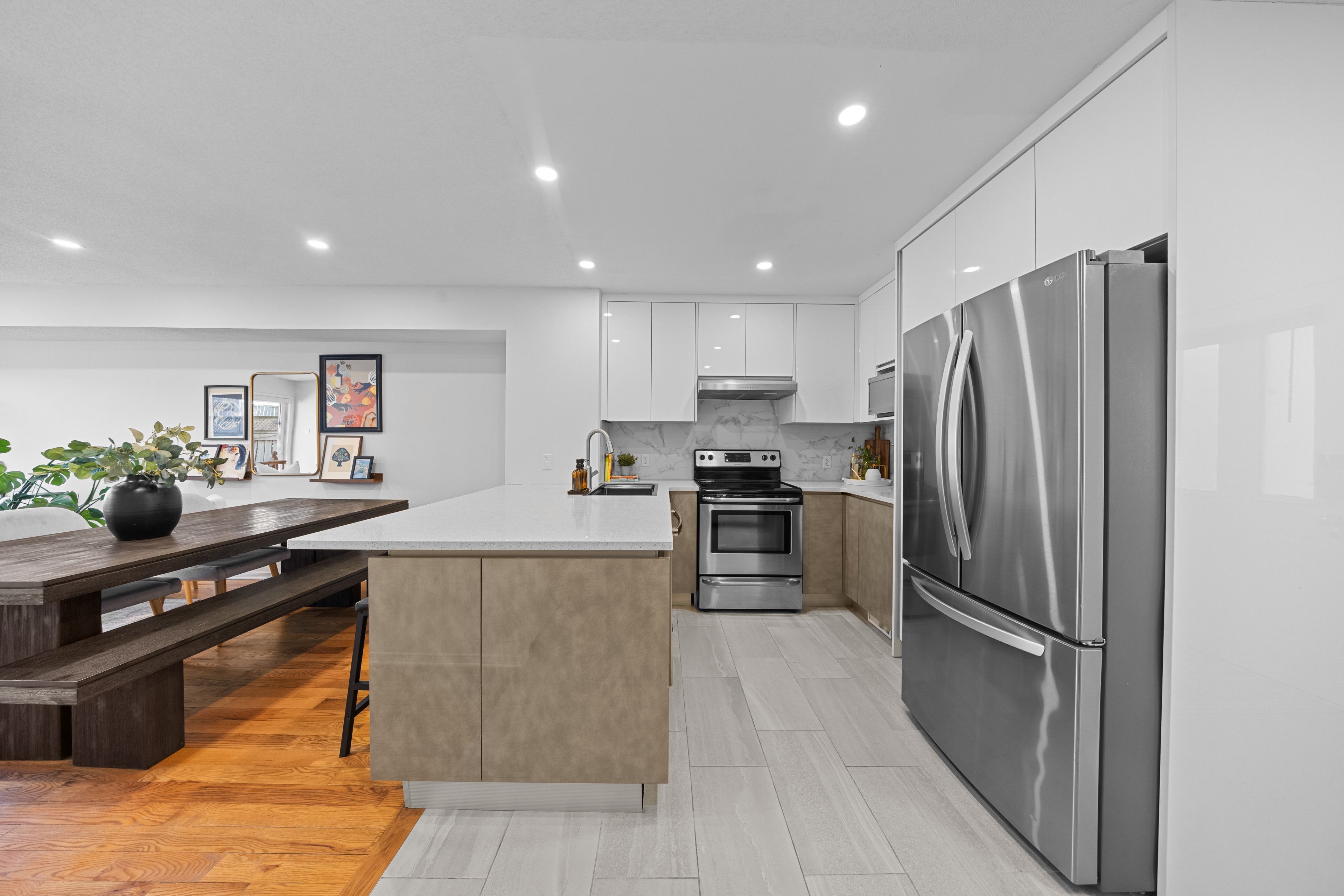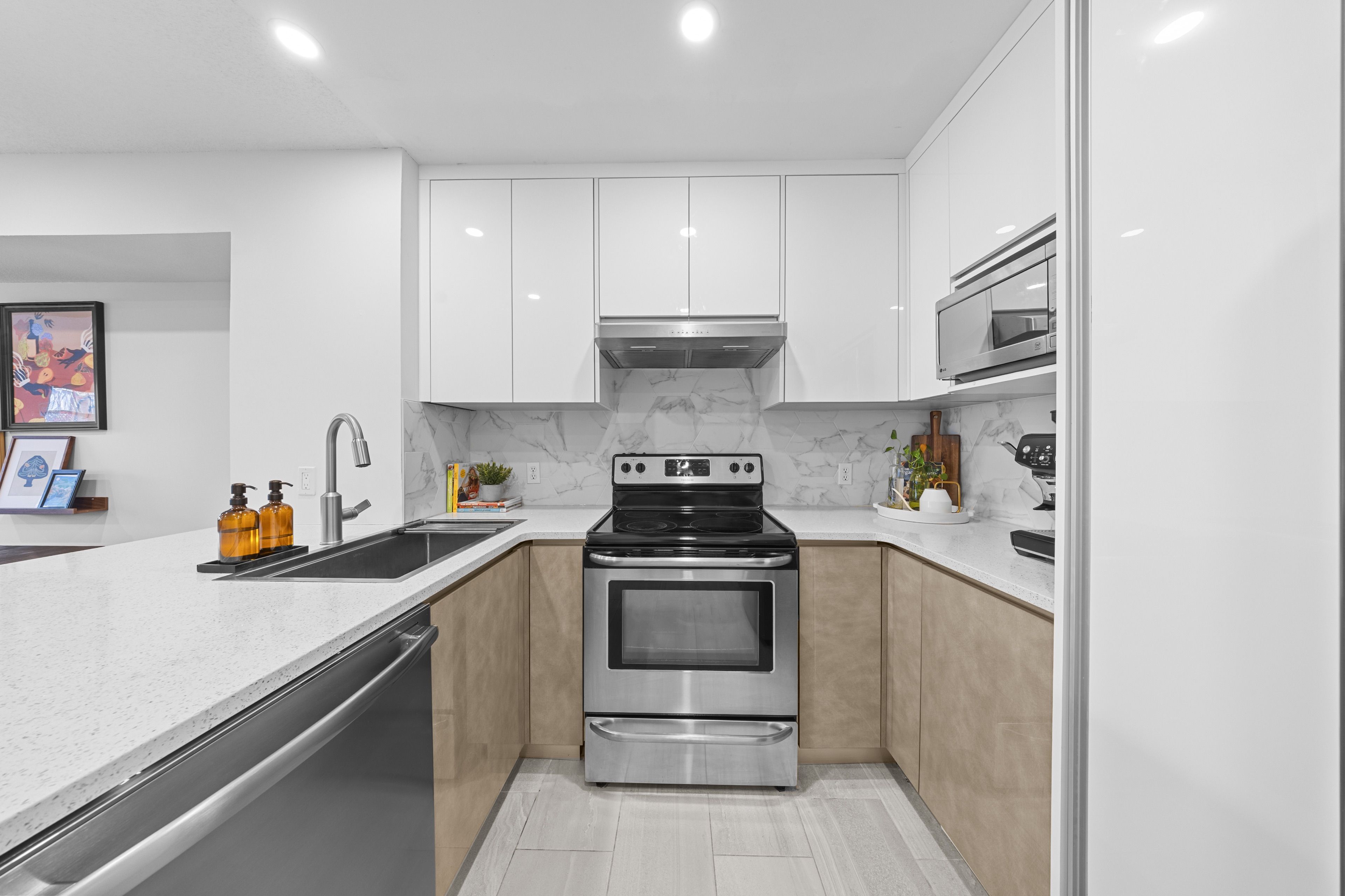 • Updated kitchen with smart built-ins and a 3-seat eat-up bar.