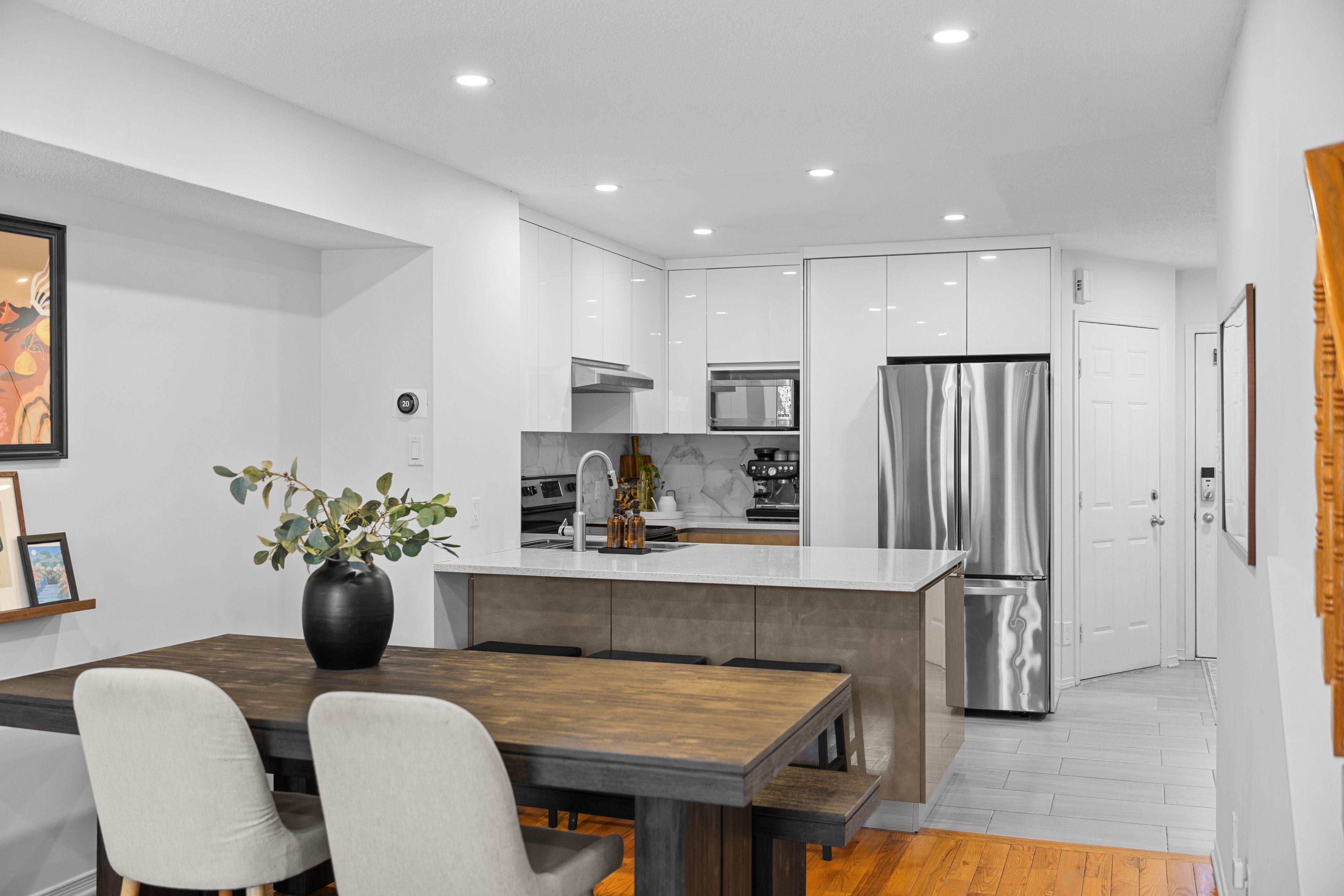 Open house sunday may 3rd, 2-4pm! Stylish and modern living on a peaceful street in sought-after central park! This move-in ready 2-bedroom, 2 full bathroom townhome has been curated for an effortless lifestyle. The spacious entryway welcomes you into a bright, inviting layout. At the heart of the home is the kitchen designed and updated with functionality in mind, featuring smart built-ins and an abundance of storage. The 3-seat eat-up bar makes it a natural gathering spot for morning coffee or hosting. Upstairs, you'll find two generous bedrooms on opposite sides, including an exceptionally spacious primary bedroom that easily fits a king-sized bed and features a massive walk-in closet. The second bedroom overlooks the private backyard with a beautiful blossoming tree. Both full bathrooms have been thoughtfully refreshed with upgraded vanities, sinks, mirrors, and lighting, while professional painting completed in 2025 gives the entire home a fresh, move-in ready feel. The fully finished lower level with an expansive window offers incredible flexibility for a work-from-home setup, movie night, or guest space, along with a full bathroom, laundry area, and extra storage. Enjoy your own paradise of a backyard with low-maintenance landscaping, privacy with raised fencing, and a dream summer vibe perfect for lounging, gardening, bbqs, and entertaining, an outdoor space you will not only use, but truly enjoy. Parking for two, including an attached garage with interior access, bike storage and shelving, plus additional visitor parking at the end of the street. Ideally located minutes from the city's trendiest neighbourhoods, with bike paths, walking trails, and the experimental farm at your doorstep, this location offers easy access to everything you need to live, work, and play! $35/month private road fee covers snow removal and road maintenance. Some photos are virtually enhanced.