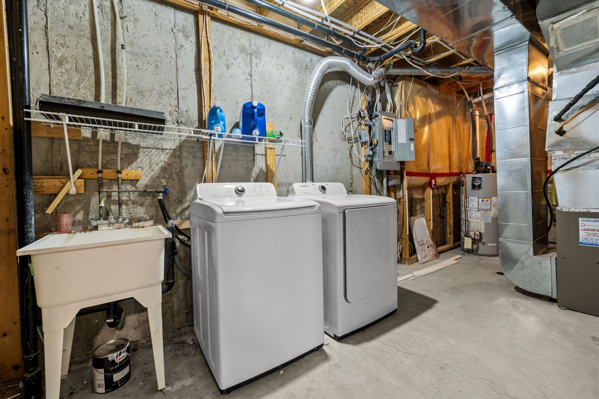 • Finished basement includes a cozy recreation room with a gas fireplace.