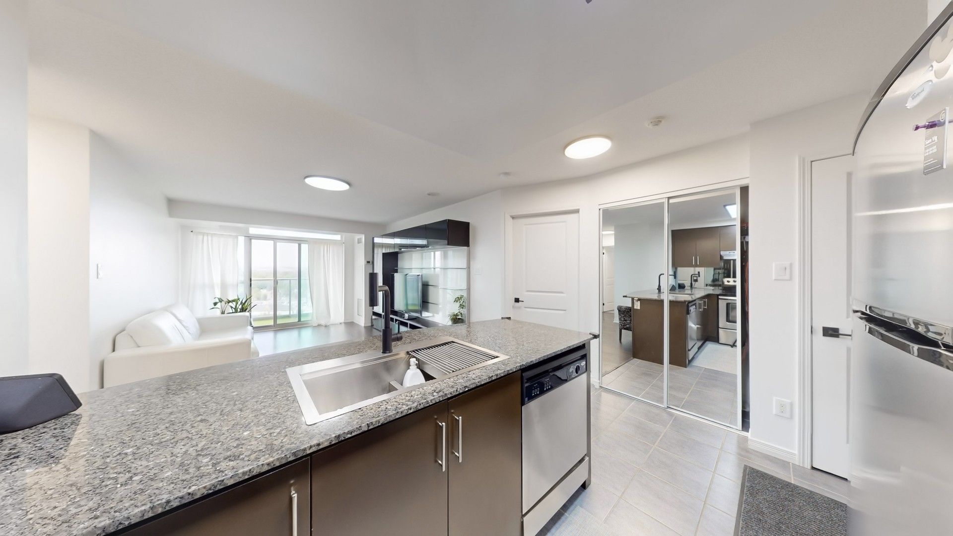 Welcome to the renaissance in the heart of downtown brampton! This warm and inviting northwest-facing 2+1 bedroom, 2-bath condo offers floor-to-ceiling windows that fill the home with natural light and showcase stunning sunset views from your private balcony. The open living and dining areas are perfect for family time, while the renovated flooring and upgraded lighting create a bright, modern feel. The stylish kitchen features marble counters, stainless steel appliances, plenty of cabinetry, and a breakfast bar that makes meals and entertaining easy. Both washrooms have been beautifully updated with fresh finishes, giving the whole home a polished look. Added conveniences include ensuite laundry, underground parking, and a storage locker. Families will love being steps from schools, parks, the rose theatre, and garden square events, plus nearby shops, markets, and transit options. With 24/7 concierge and security, this condo is the perfect place to enjoy comfort, community, and family living.
