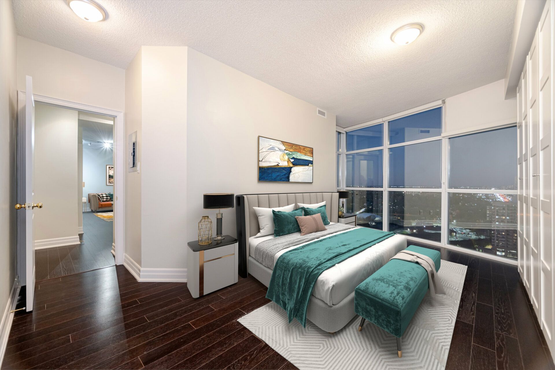 • Enjoy panoramic city views from the private balcony and floor-to-ceiling windows.