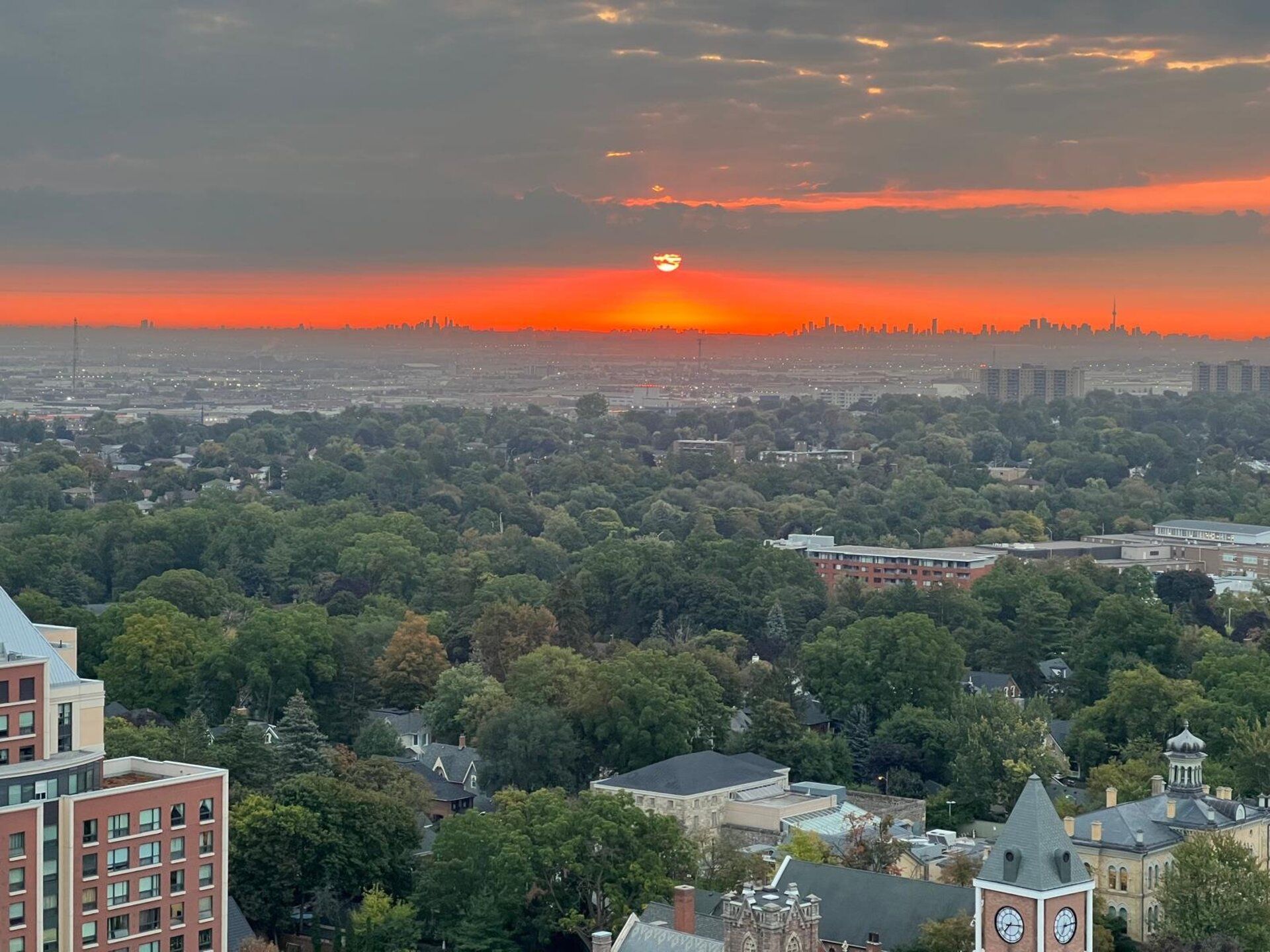 Welcome to renaissance penthouse! Luxurious elegant and exquisite. Beautifully designed building with a glass façade and a lot of enticing amenities. Spacious 2-bedroom, 2 full bathroom condo. Wake up to a hair-raising sun soaked eastern exposure, with a panoramic view of the city and skyline and cn tower. Enter into a unit with bright and abundant natural light streaming through floor to ceiling windows. Everything upgraded. Spacious open-concept living area. Upgraded front foyer with mirror doors. Modern kitchen granite stone counter tops, metallic backsplash upgraded stainless steel appliances, and extra size cabinet space, eat in at kitchen counter. The spacious primary bedroom with wall-to-wall custom wardrobe with lots of organized storage, ensuite bathroom with soaker tub and big built in vanity with large countertop. The second bedroom is generously sized, ideal for guests, a home office or additional living space equipped with a murphy bed/office table. Step out onto the private balcony from the living room and primary bedroom and breathtaking views of the cityscape while enjoying your morning coffee or relax after a long day. Upgraded balcony with marble look porcelain tiles. Prime location- fantastic area with close proximity to almost all amenities available within minutes. Two-minute walk to brampton go station, rose theatre, brampton city hall and gage park. Downtown brampton is undergoing a transformation. As the historic urban city centre, downtown brampton showcases a unique natural, cultural, and built heritage. Close proximity to a future medical college.