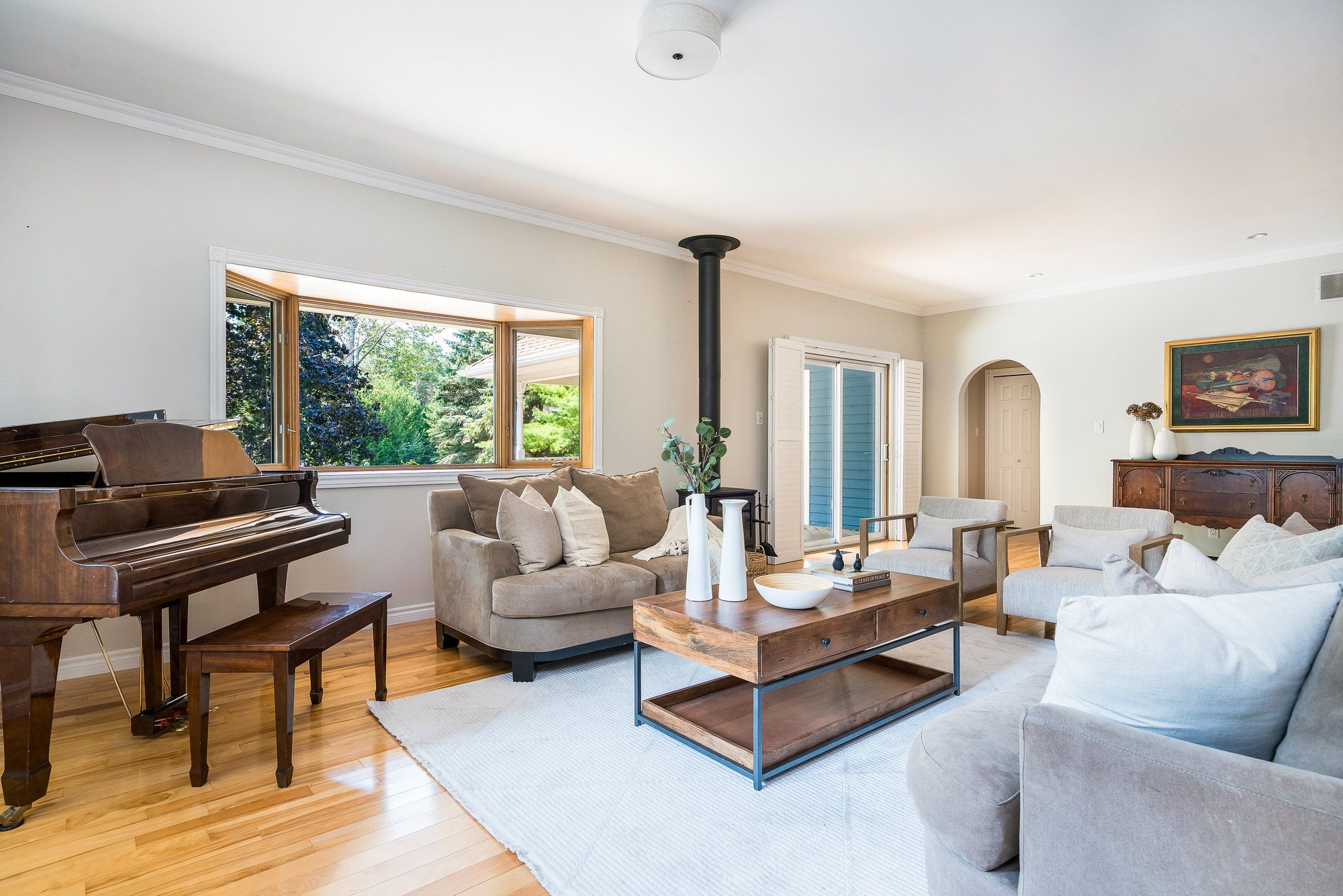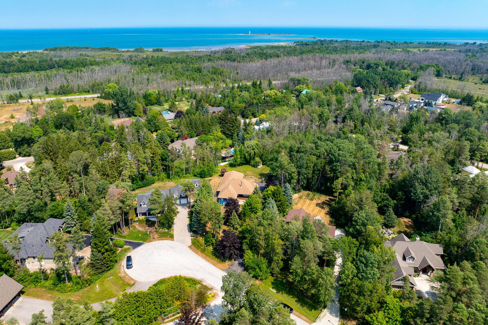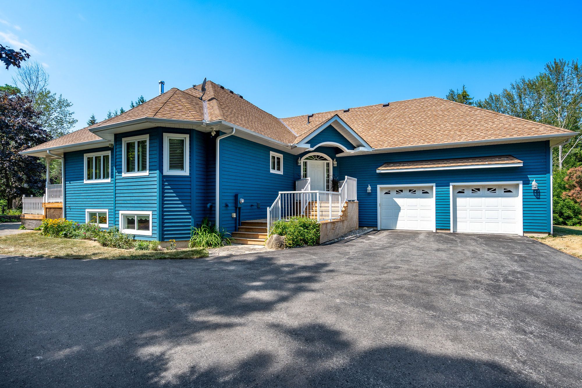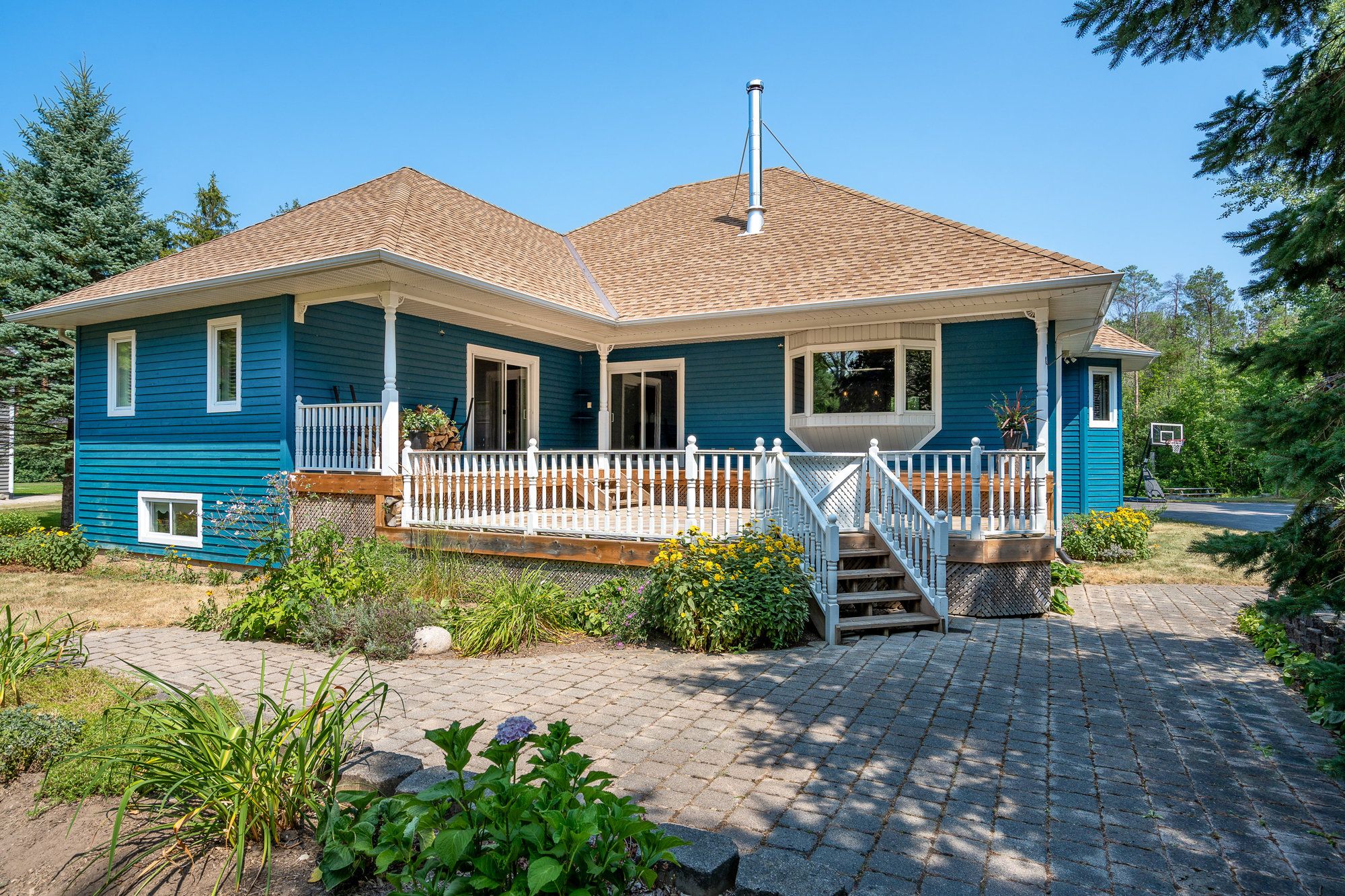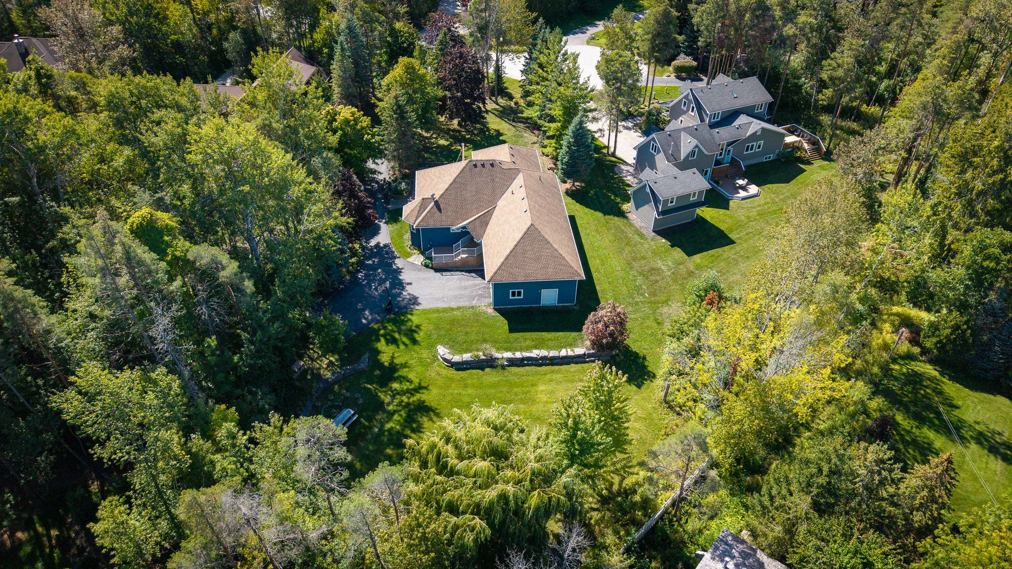 Exceptional offering in "the forest", one of collingwood's most sought-after neighbourhoods, known for its estate-sized lots, mature trees and access to the georgian trail. Set on a beautifully treed 3/4 acre lot at the end of a quiet cul-de-sac, this raised bungalow offers the perfect blend of recreational lifestyle and refined living. Much bigger than meets the eye with 5 bedrooms and 4 bathrooms and approx. 3923 square feet of finished living space, this spacious home is ideal for families, weekenders, or those looking to downsize without compromise. The open-concept main floor features a bright kitchen, living, and dining area anchored by a cozy wood stove perfect for apres-ski gatherings or quiet evenings. Two main-floor bedrooms each have their own ensuite, offering the option of dual primary suites. Main-floor laundry adds everyday convenience. The fully finished lower level includes 3 additional bedrooms, 4th bathroom, and a large rec room offering loads of space for family and guests. Step outside to a generous deck overlooking your private woodland setting ideal for entertaining or unwinding. Enjoy year-round adventure with easy access to the georgian trail for walking and cycling, minutes to blue mountain and the areas private ski clubs, georgian bay waterfront, and several top-tier golf courses. Some furnishings and decor have been removed from the property since these photos were taken.
