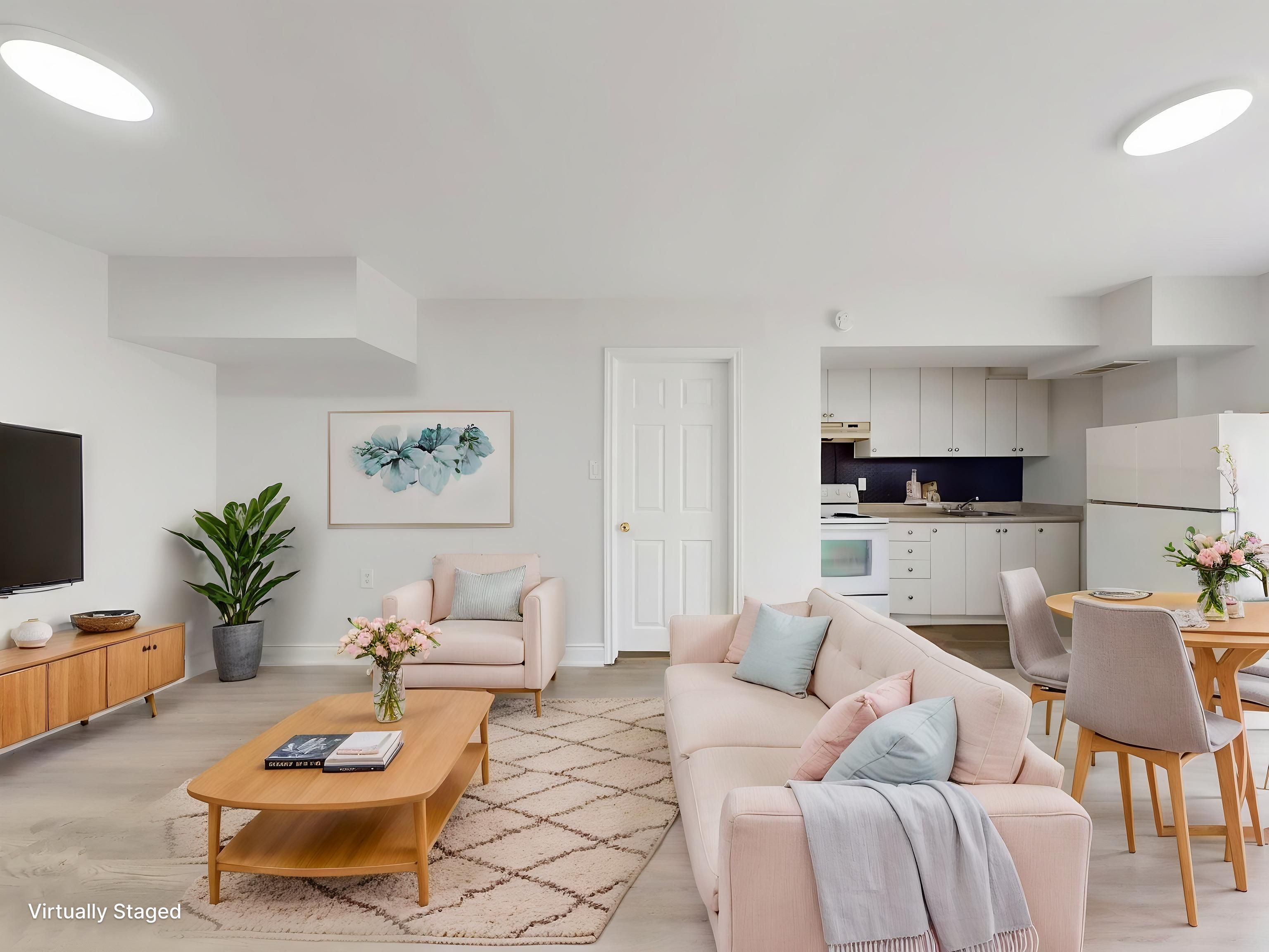 • Bright in-law style setup with new waterproof vinyl flooring.
