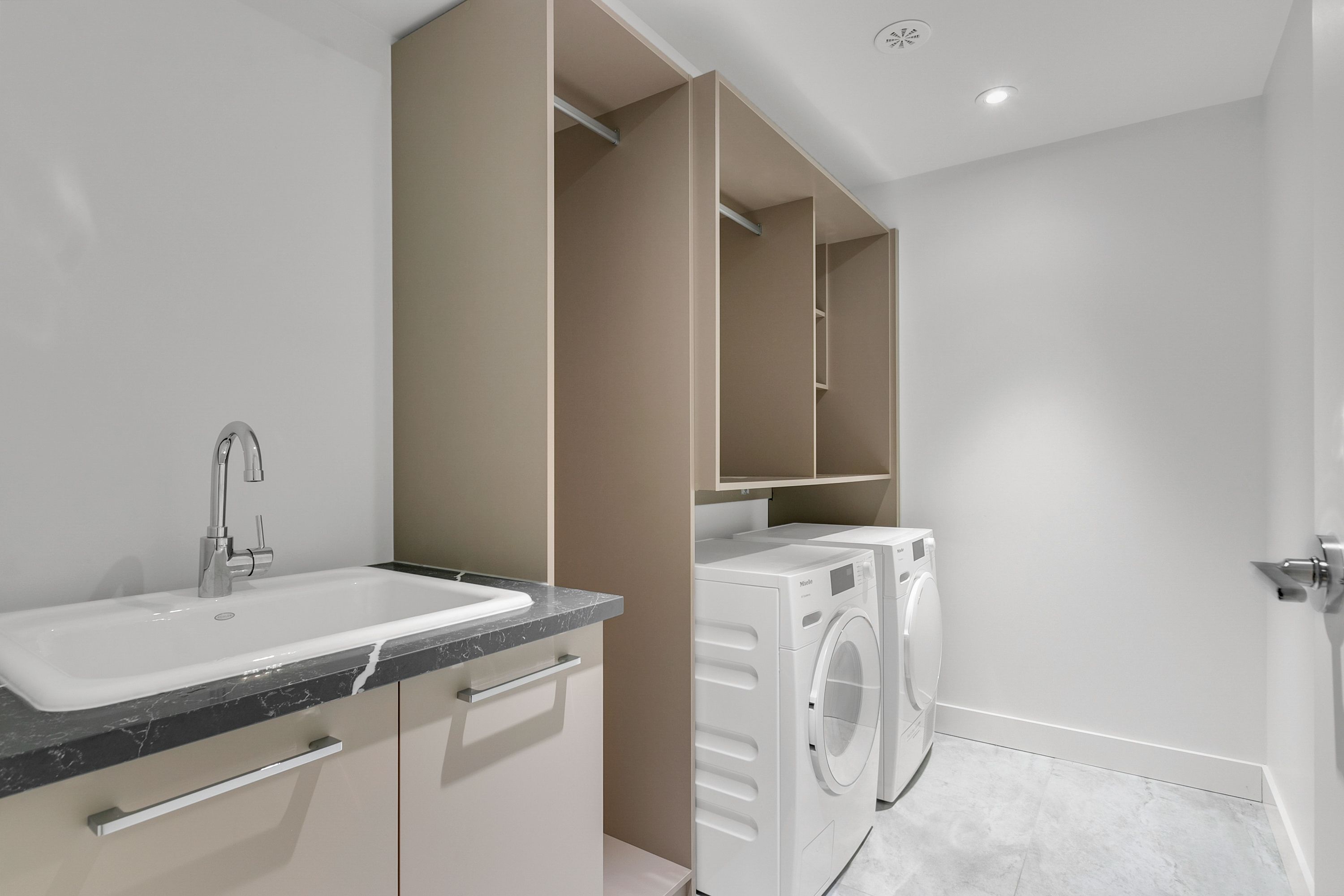 • Premium Miele appliances and custom cabinetry elevate the kitchen.